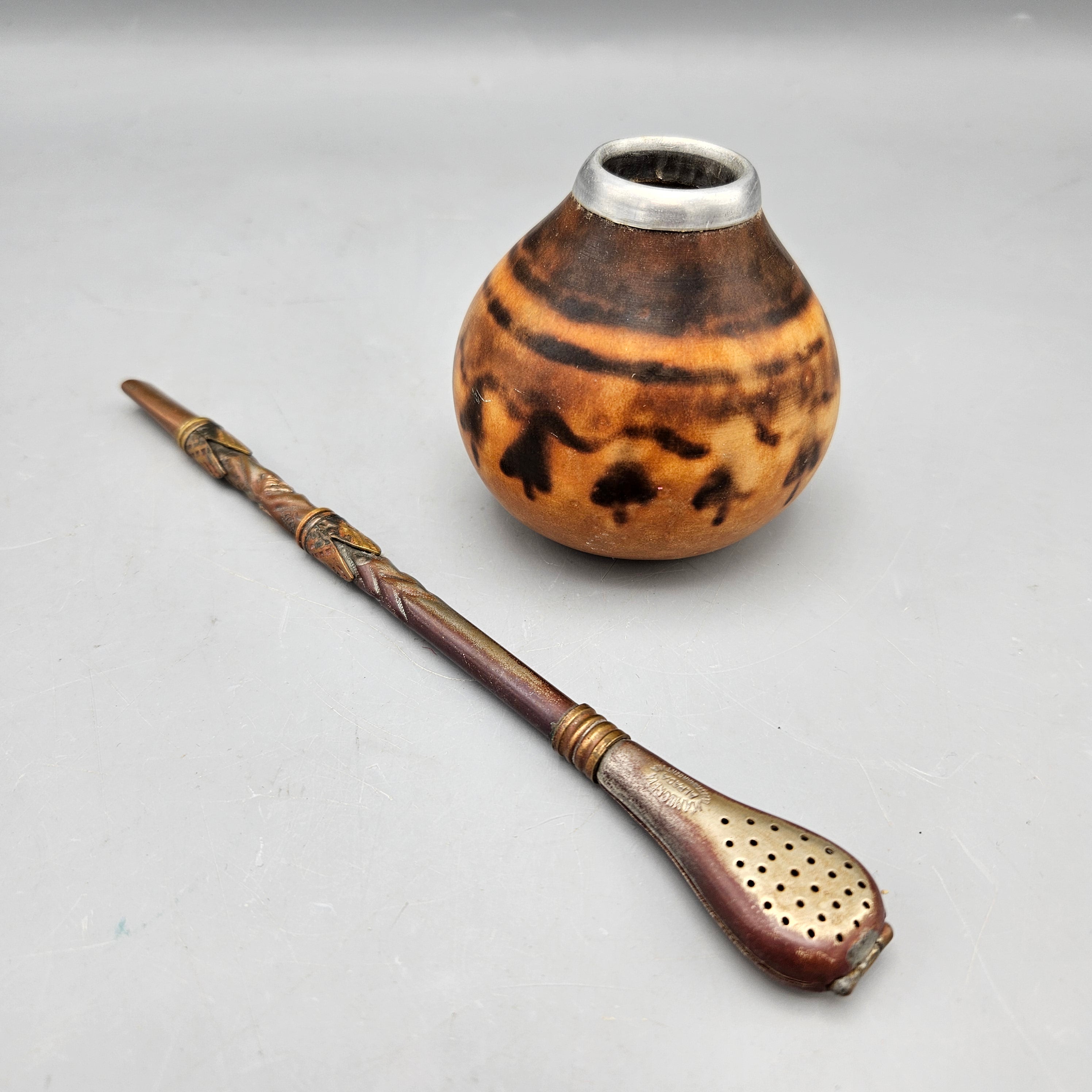 Vintage Peruvian Alpaca Yerba Matte Bombillas Straw with Gourd Vase