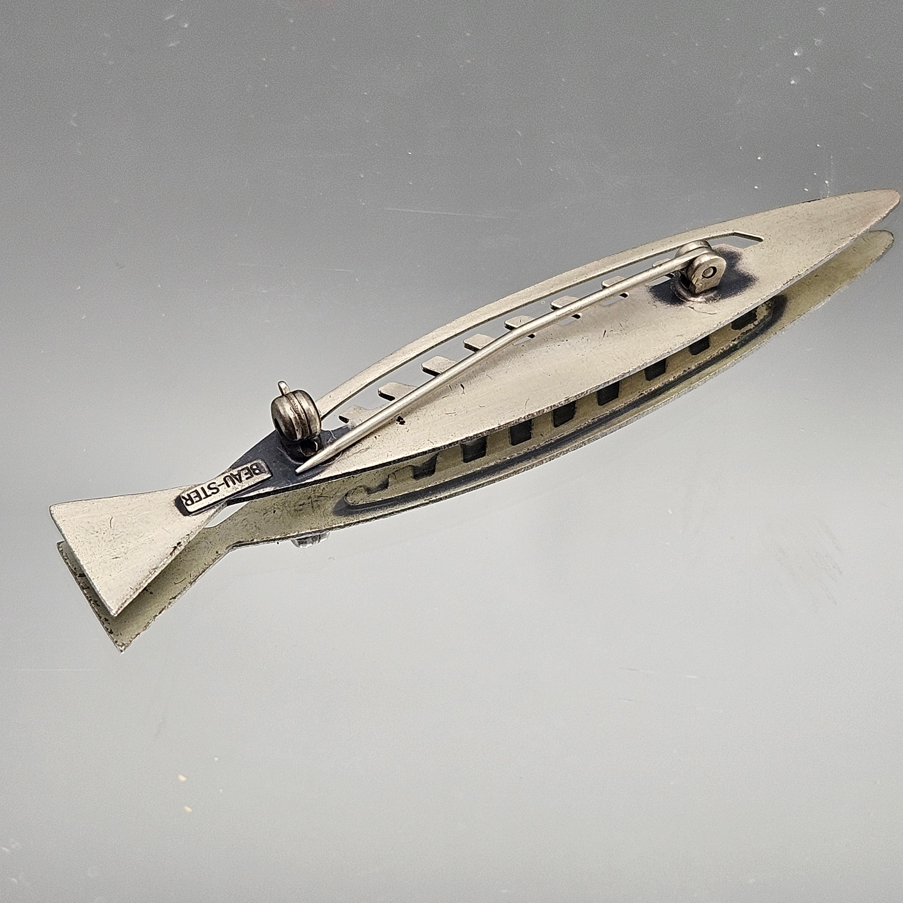 Beau Sterling Silver Modernist Fish Pin