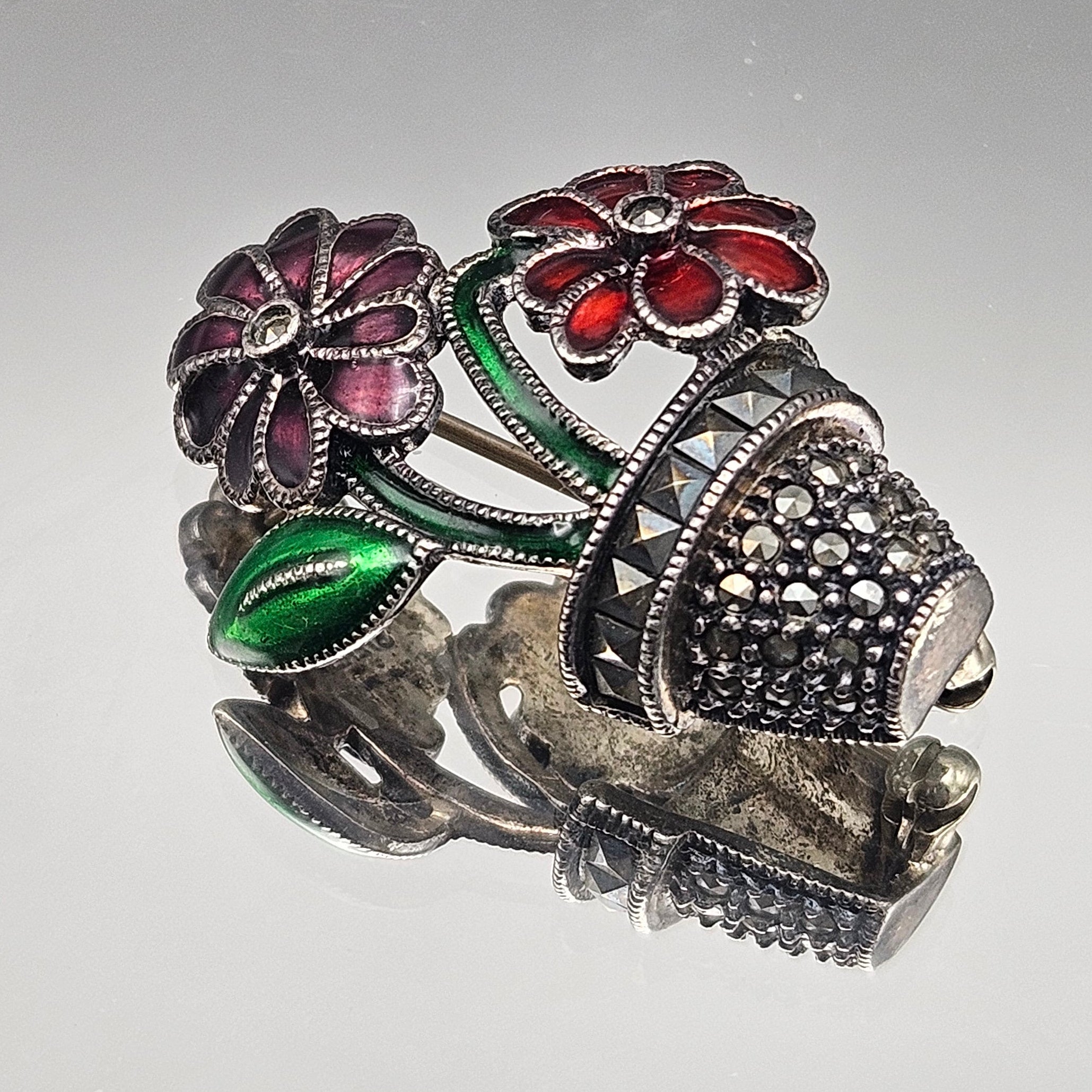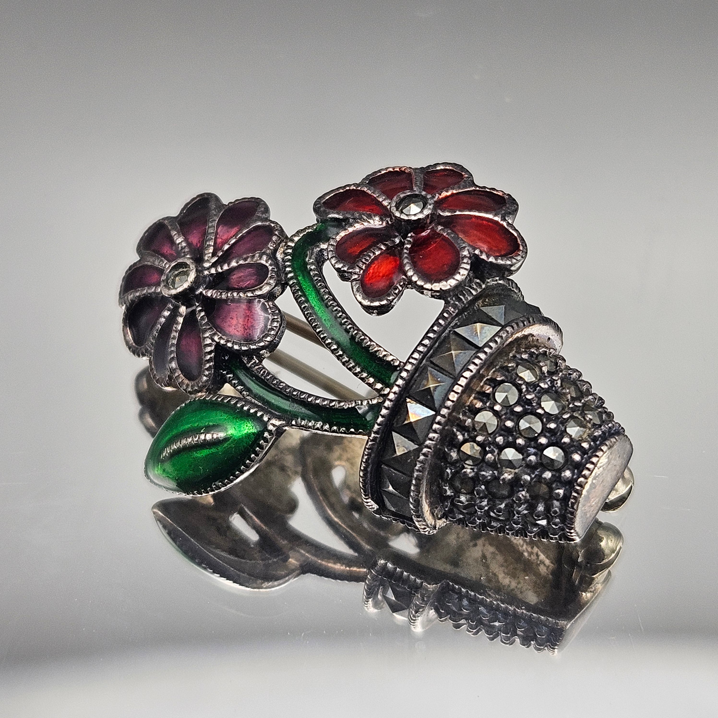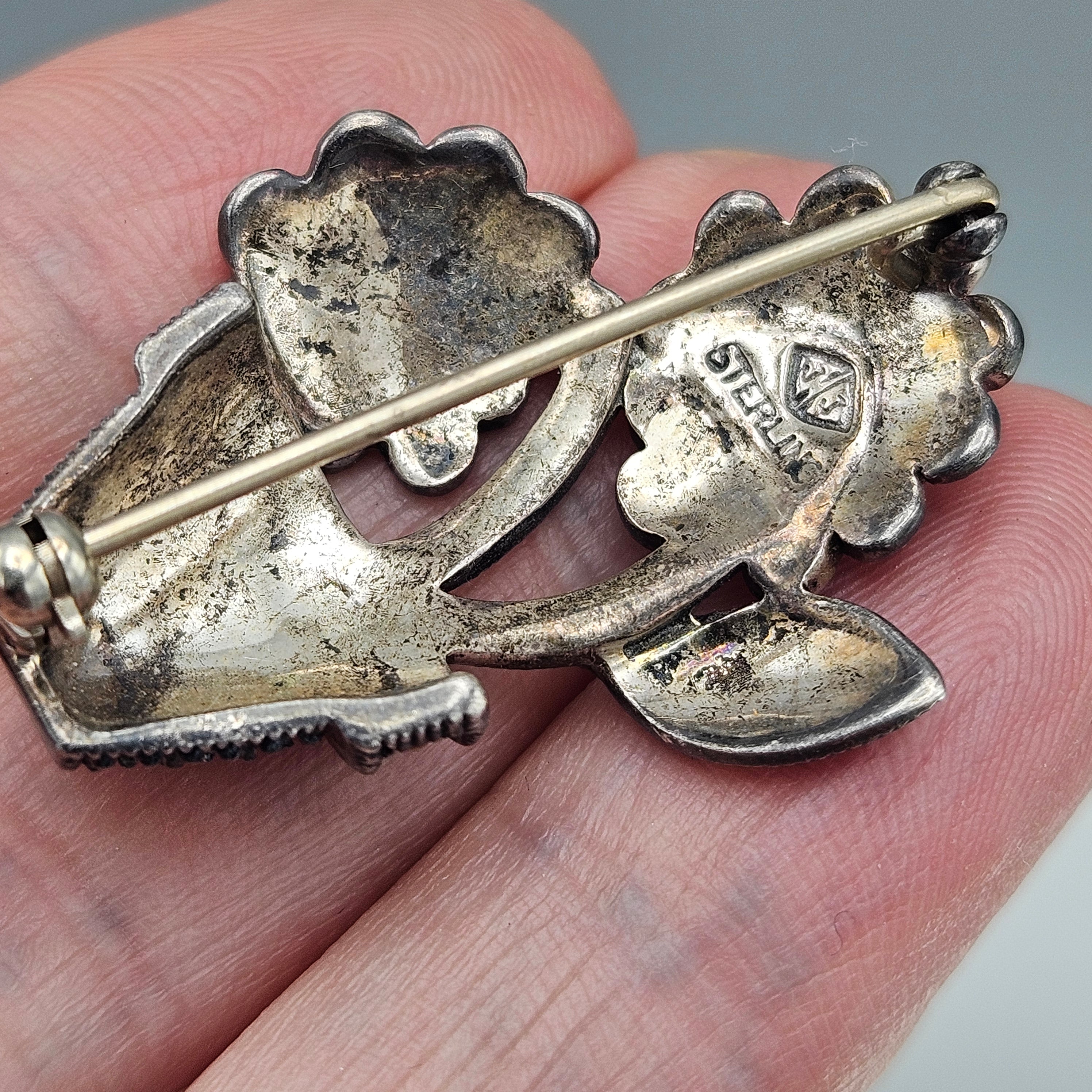 Rare Judith Jack Sterling Silver Pink & Red Flower Marcasite Pin