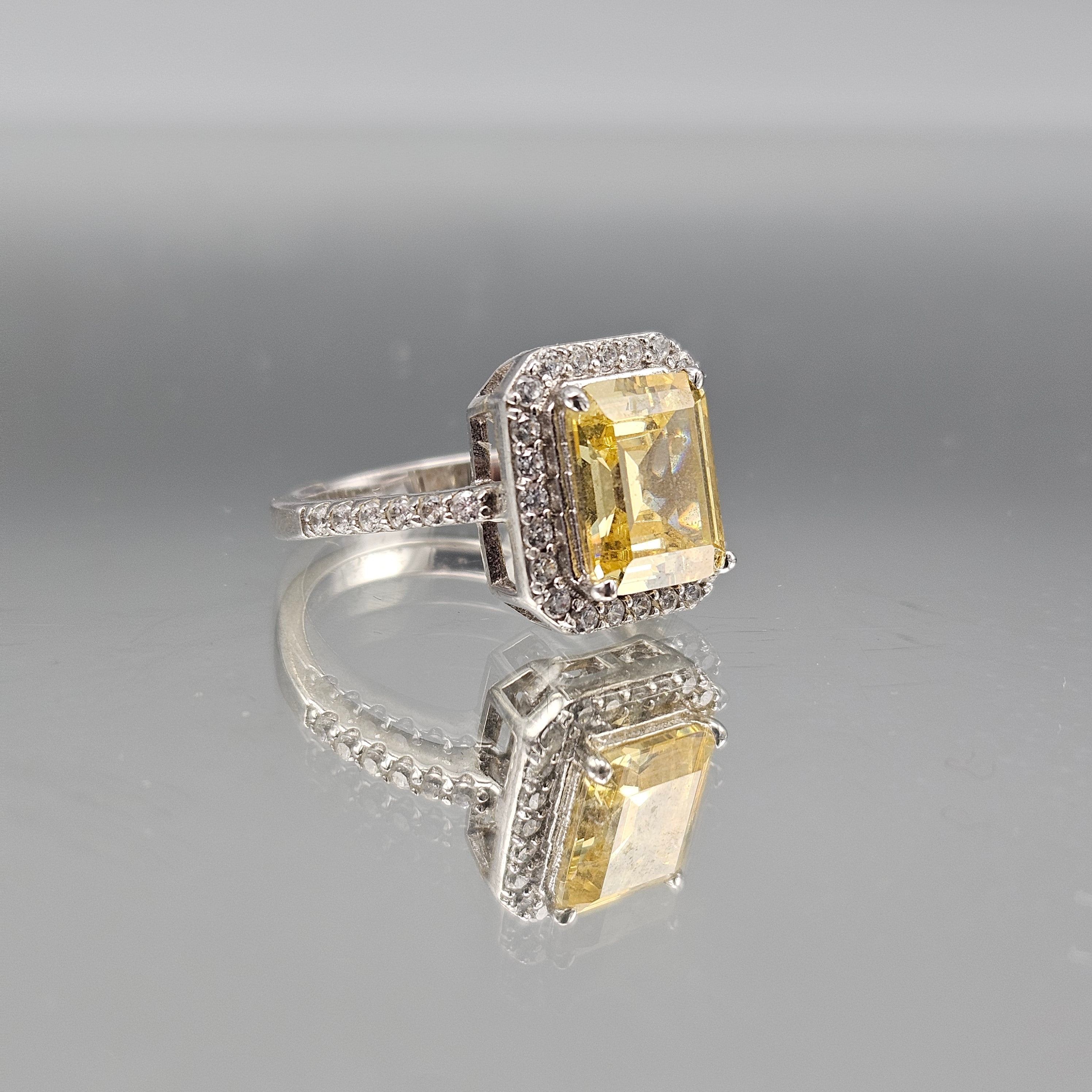 Sterling Silver Citrine Cocktail Ring - Size 8.25