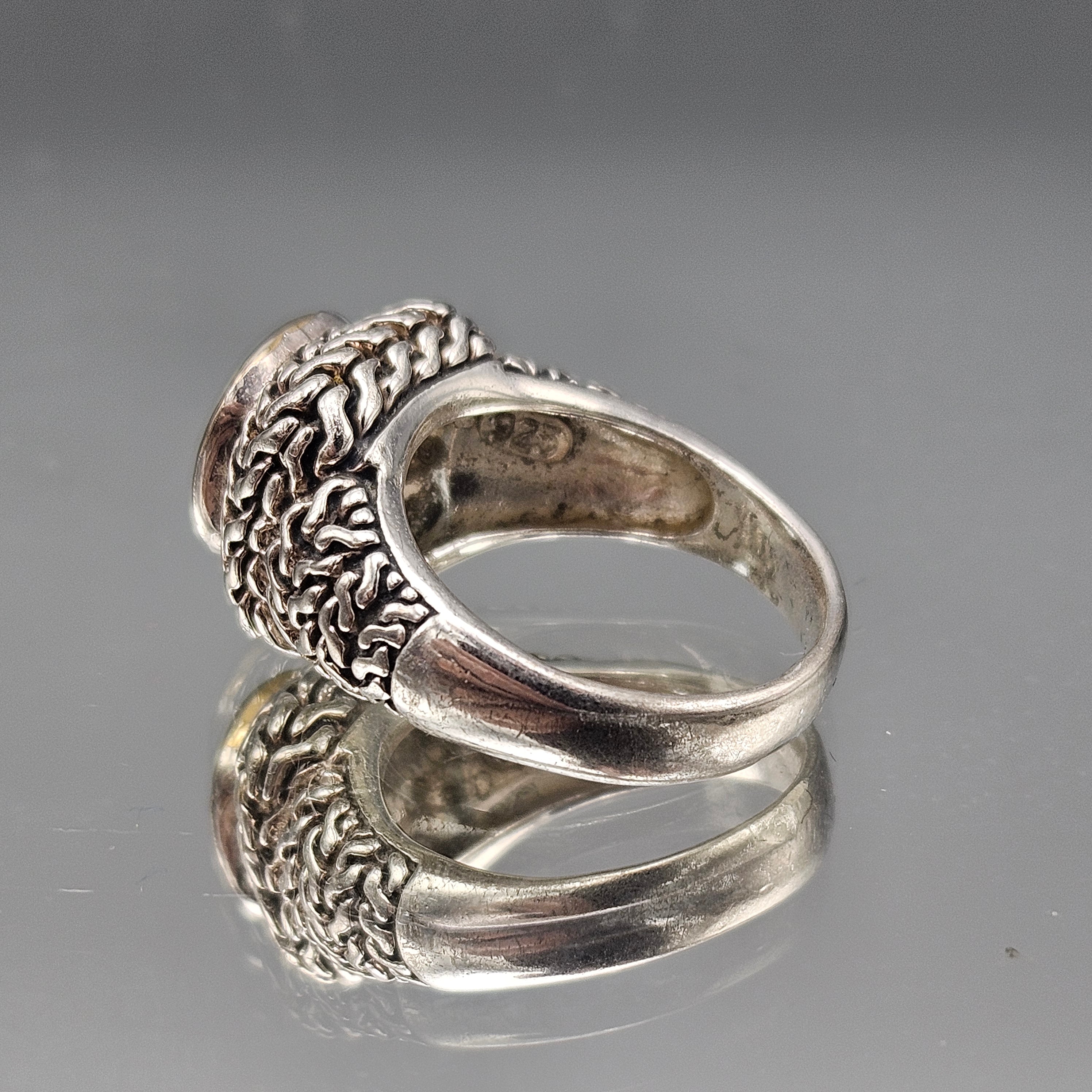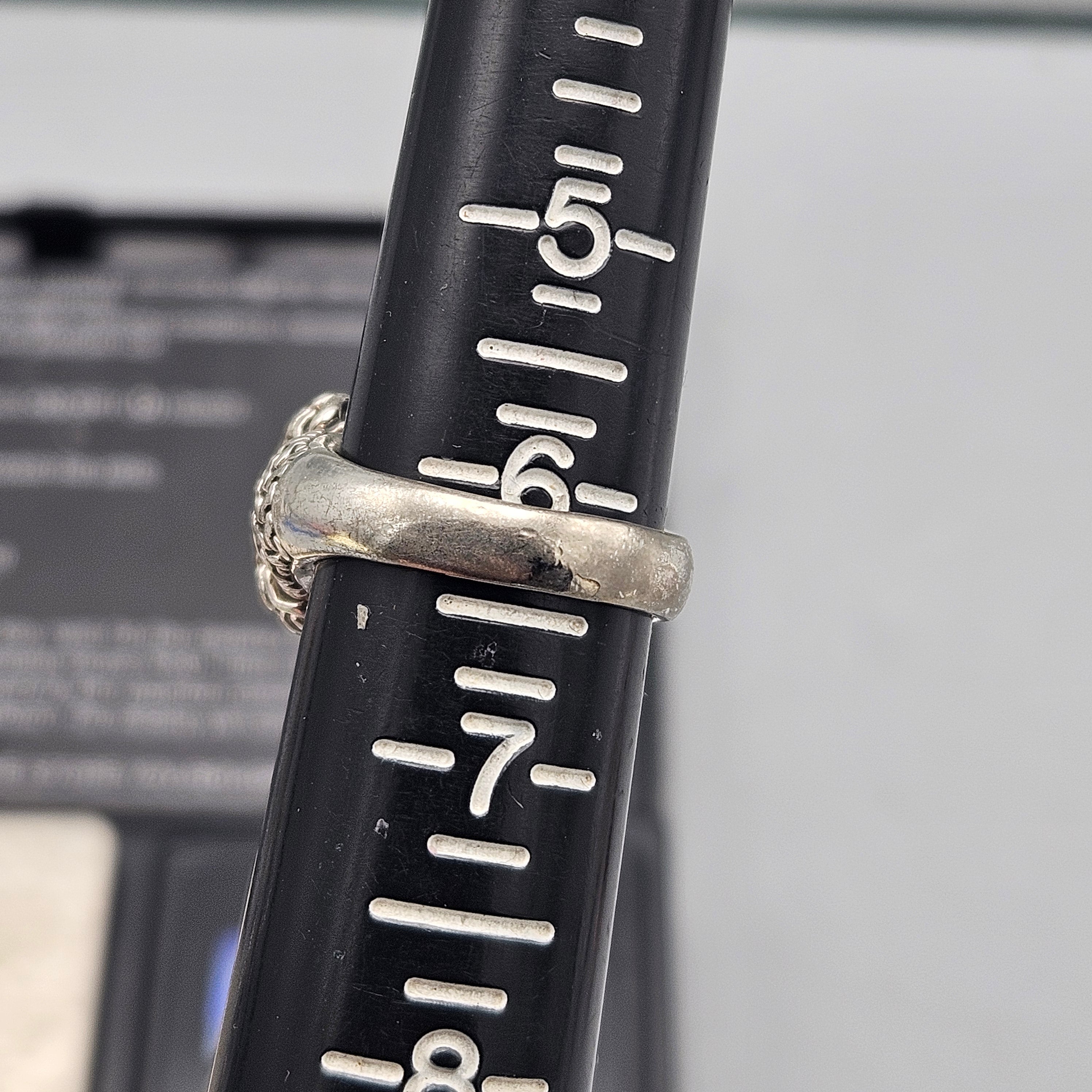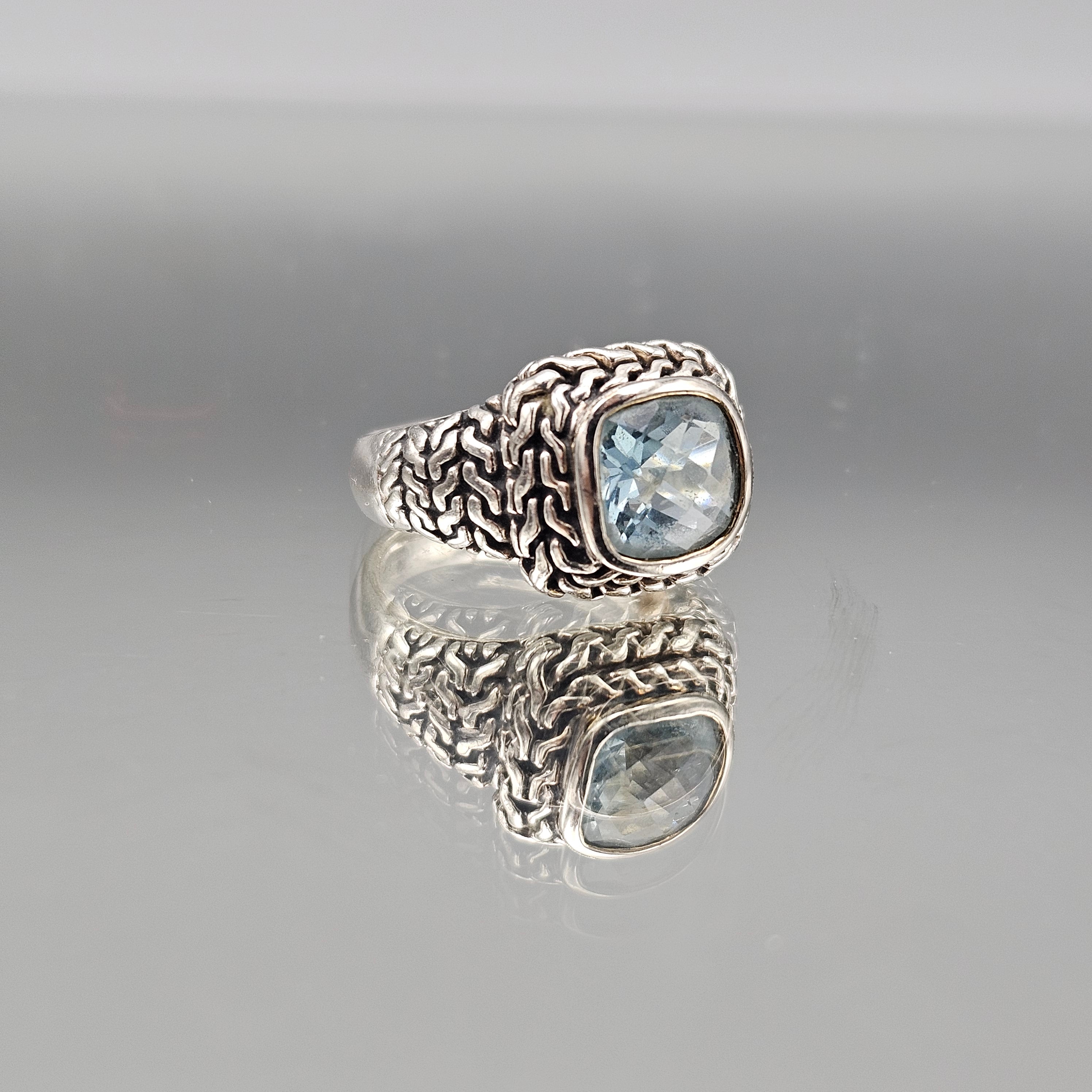 Sterling Silver Cushion Cut Blue Topaz Ring with Textured Rope Design - Size 6.25