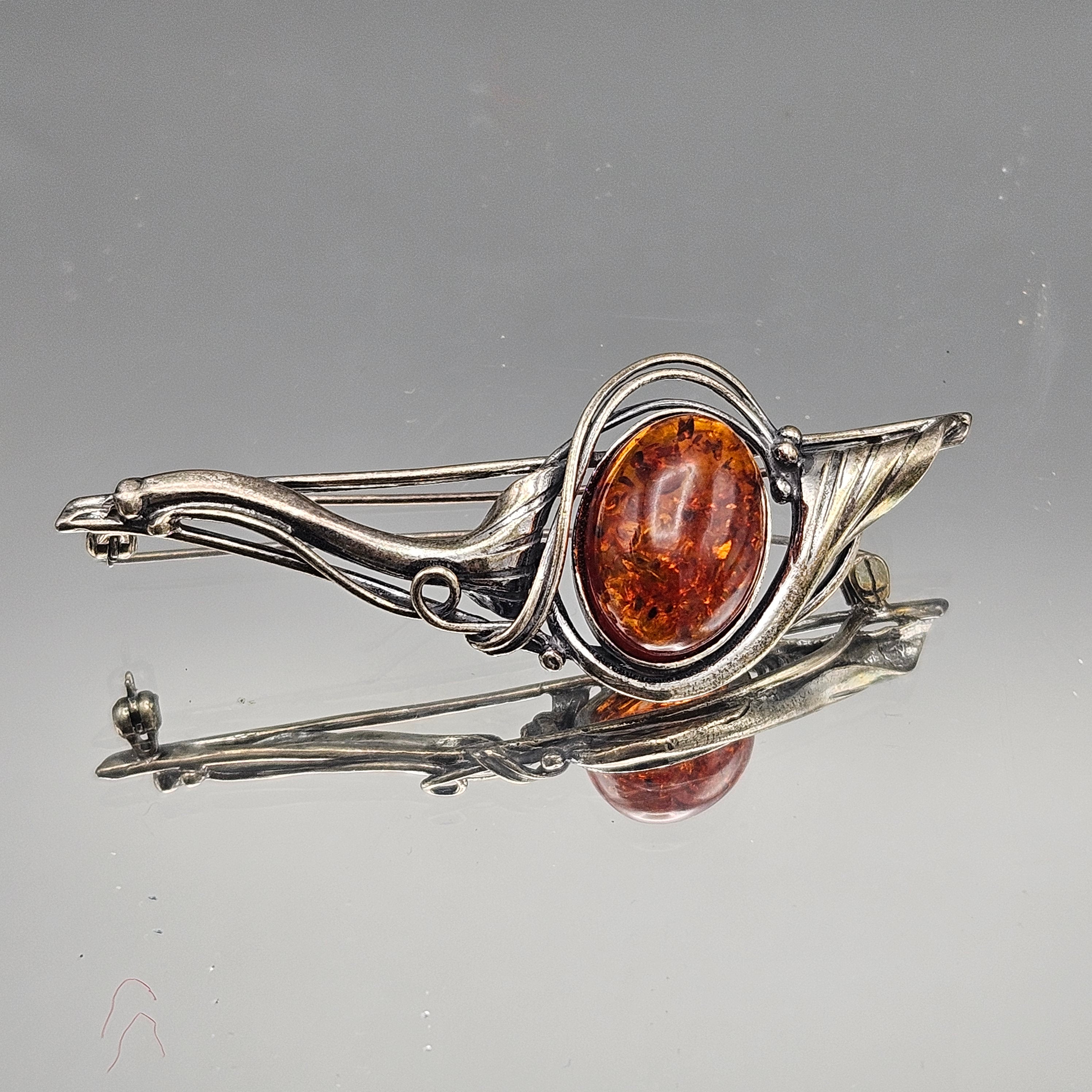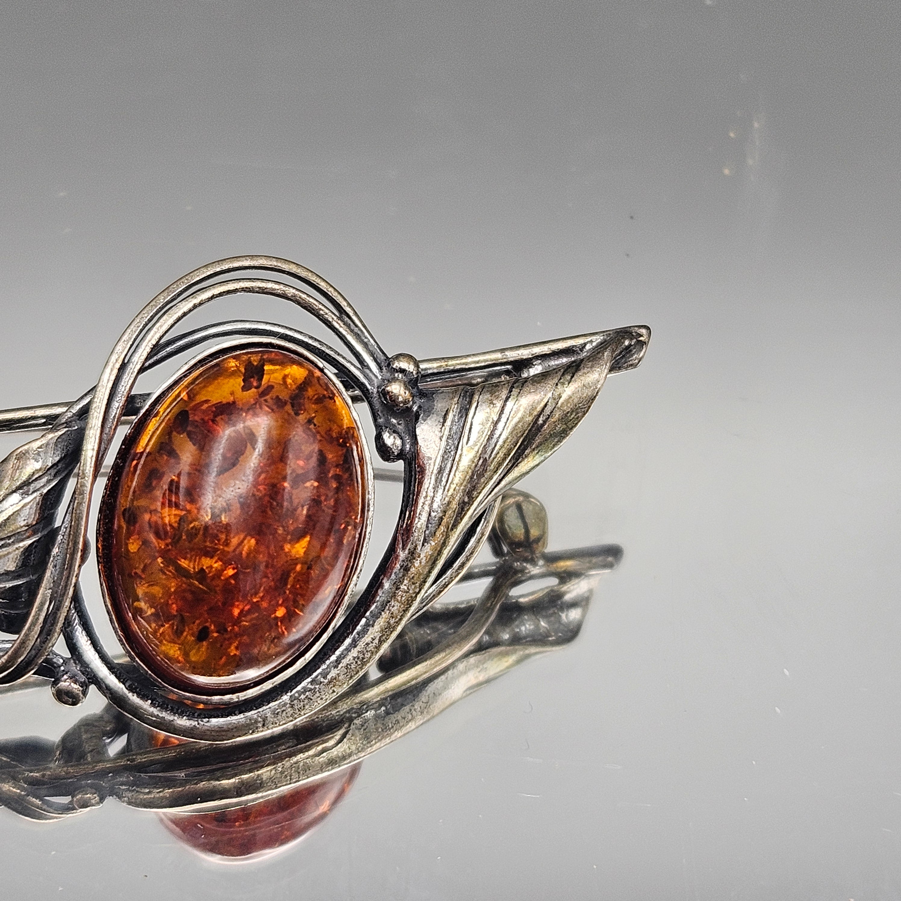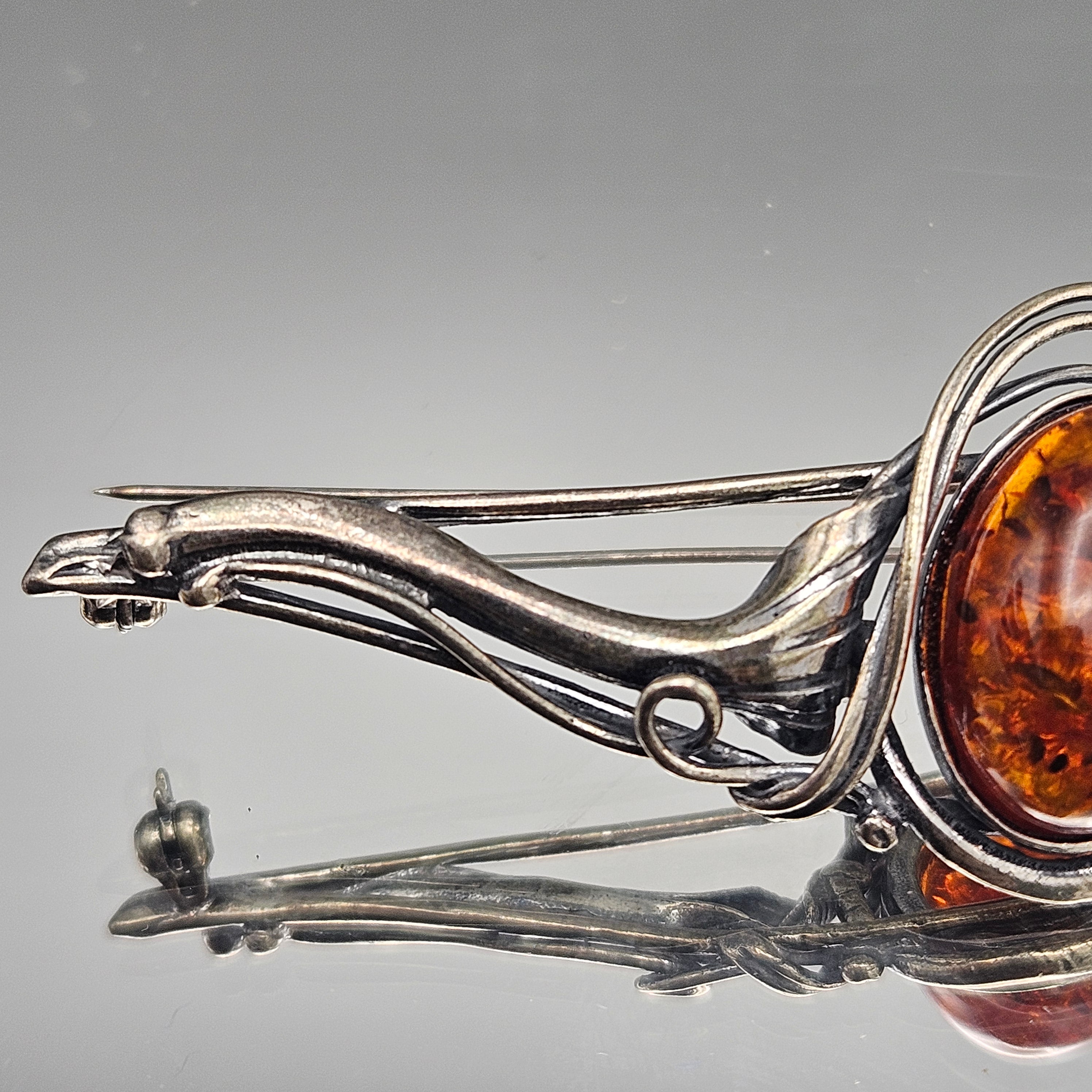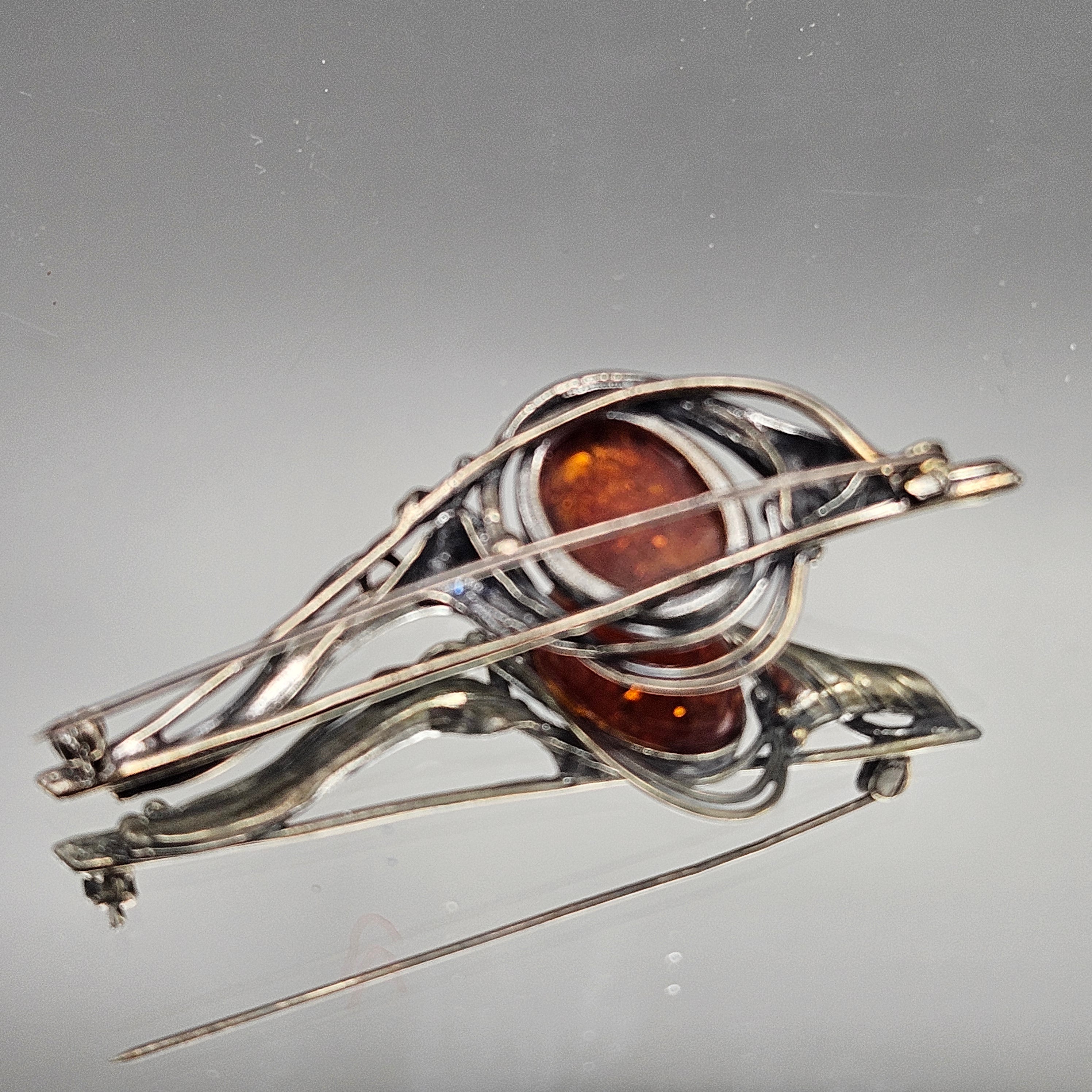Vintage Art Nouveau Sterling Silver Amber Brooch