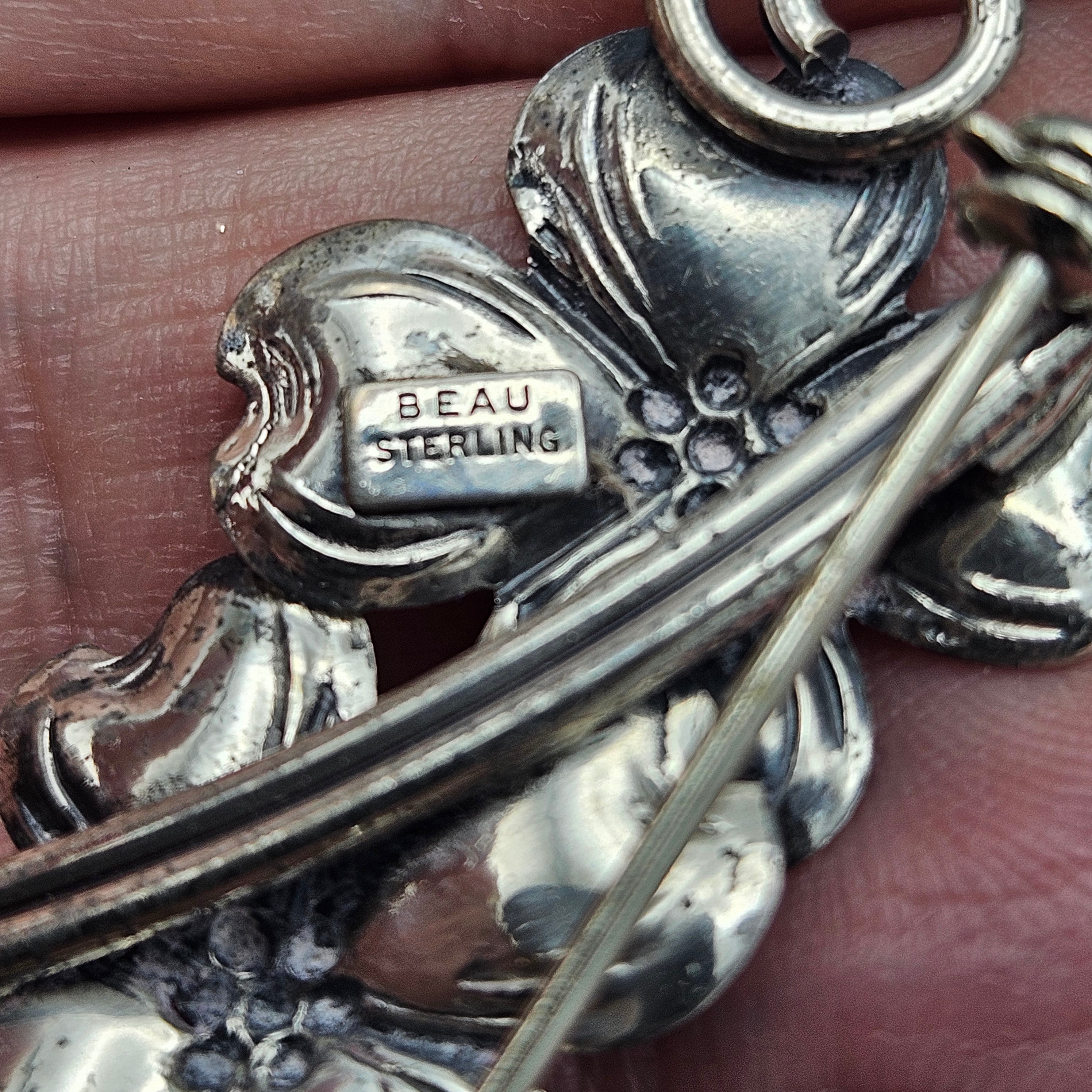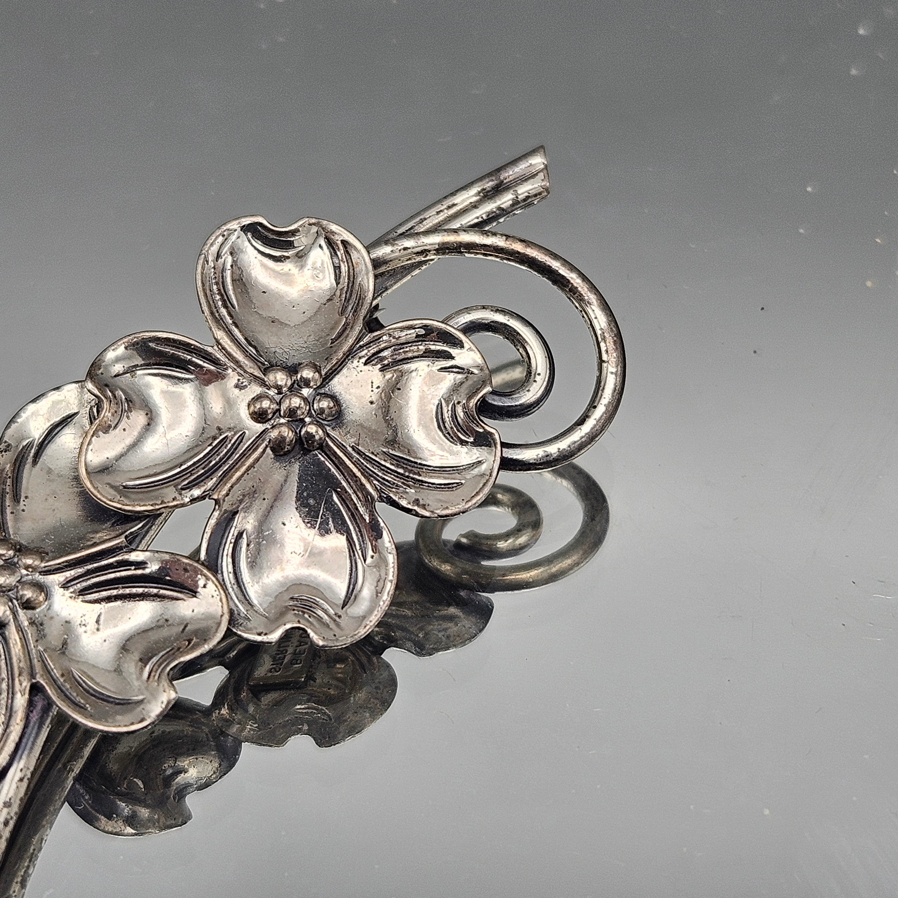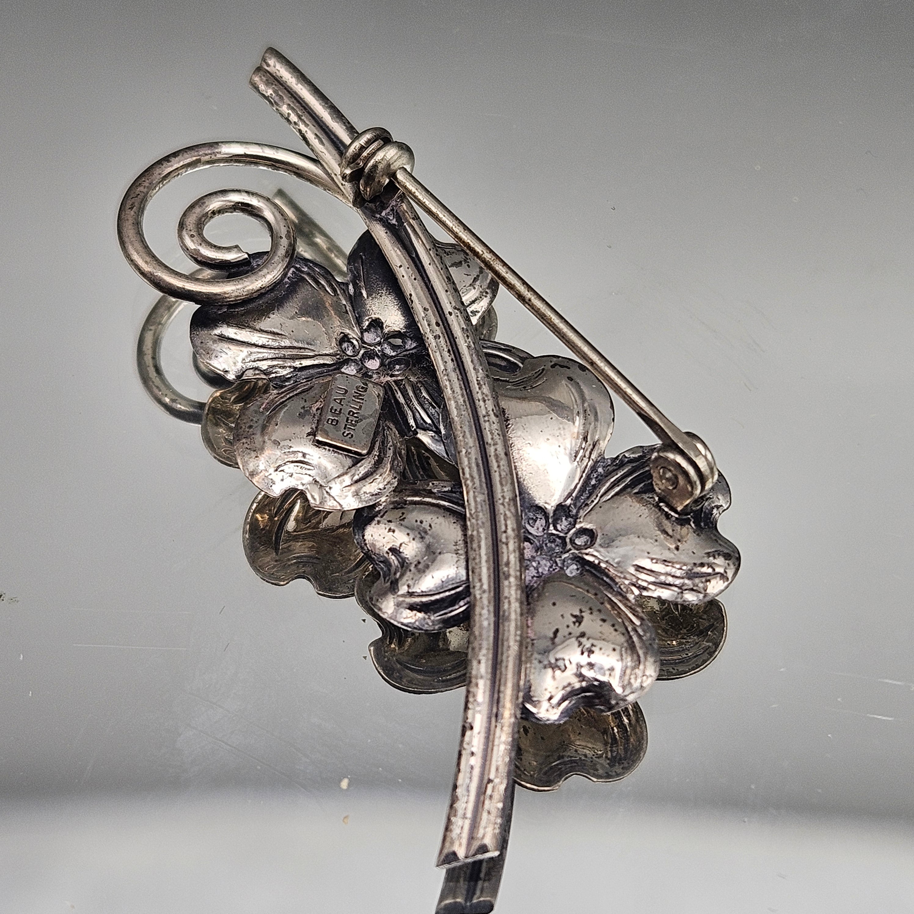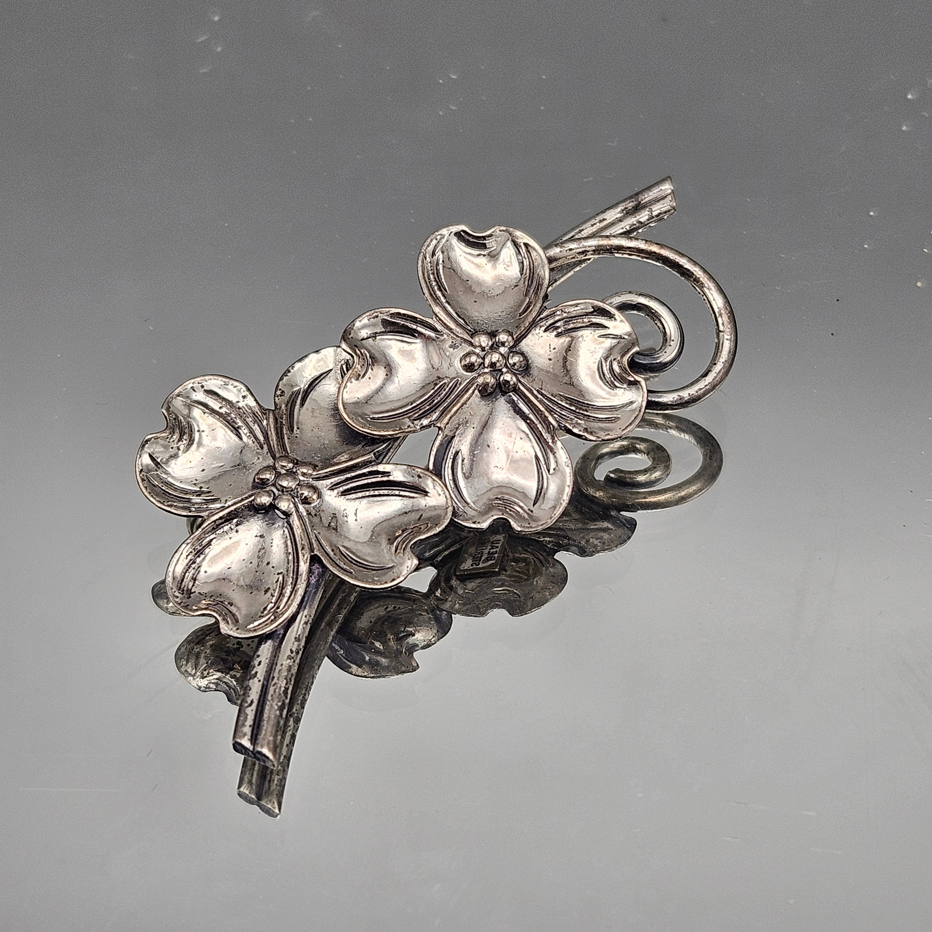 Vintage Beau Sterling Silver Dogwood Flowers Brooch