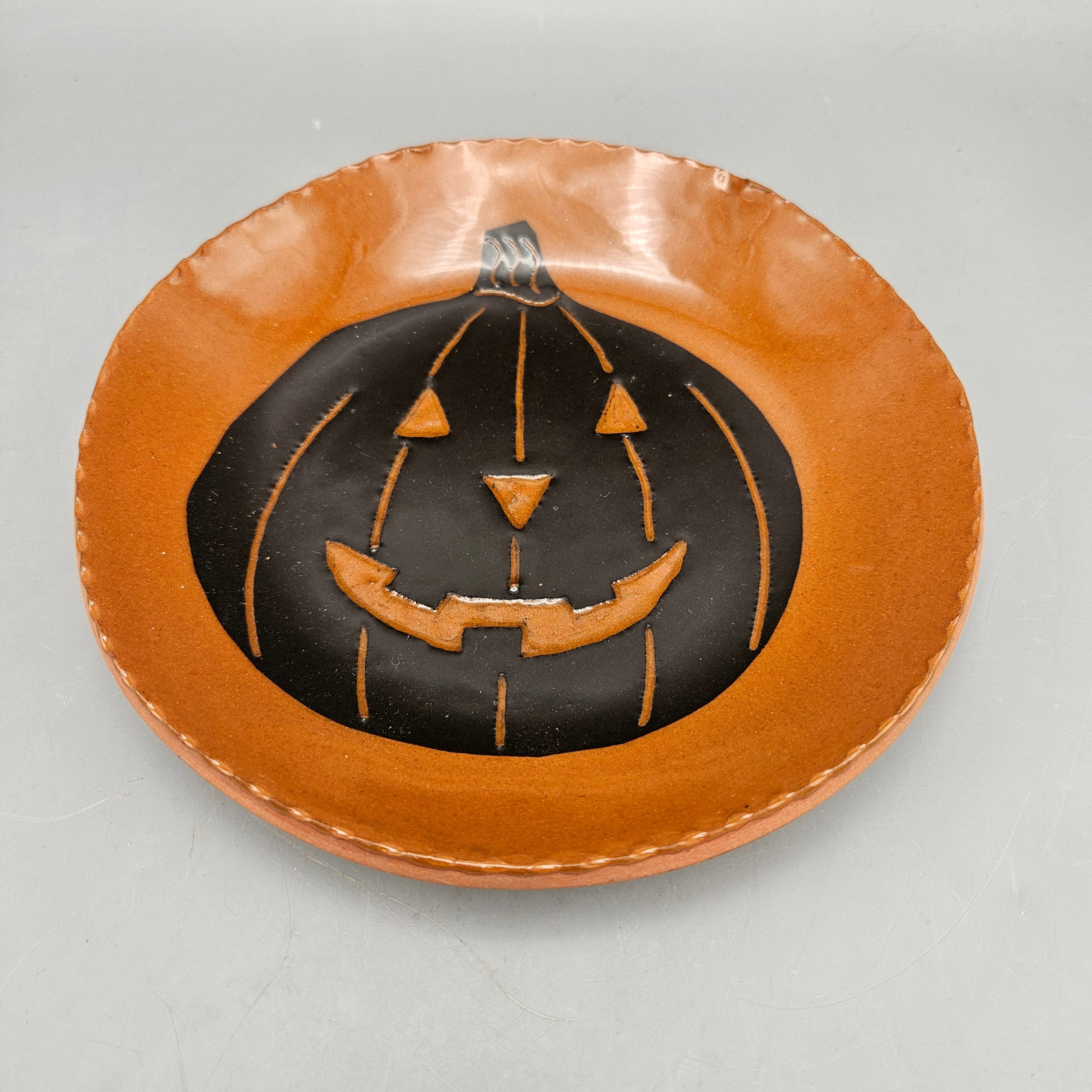 1999 Breininger Pottery Jack o Lantern Redware Plate