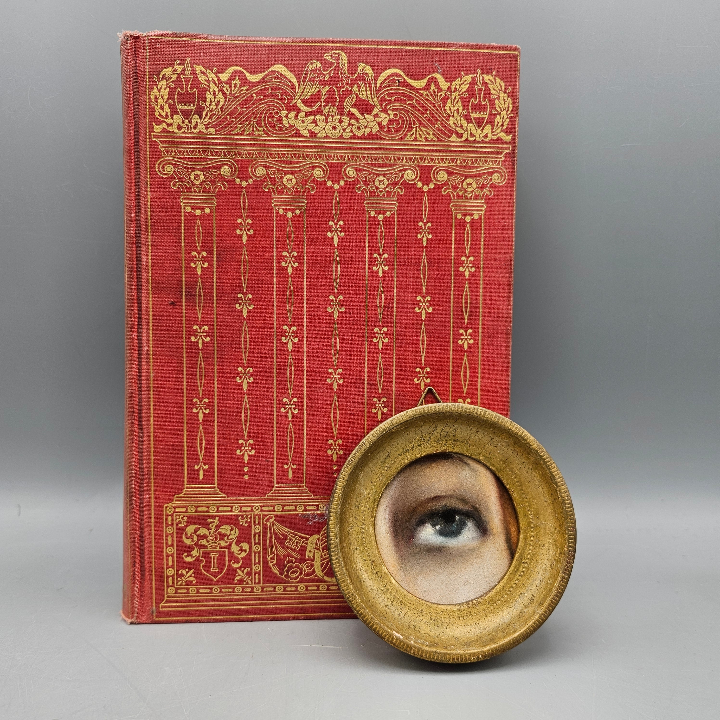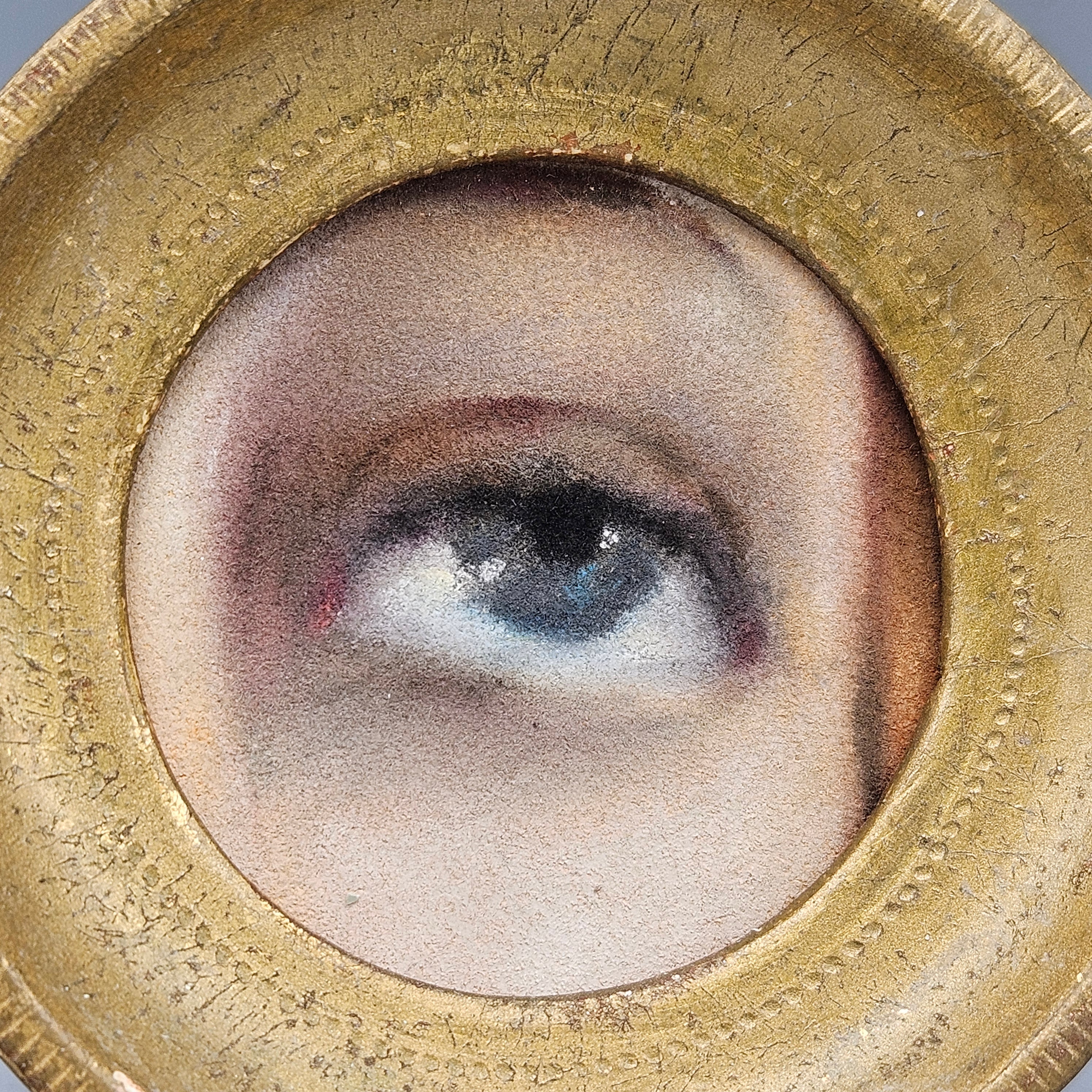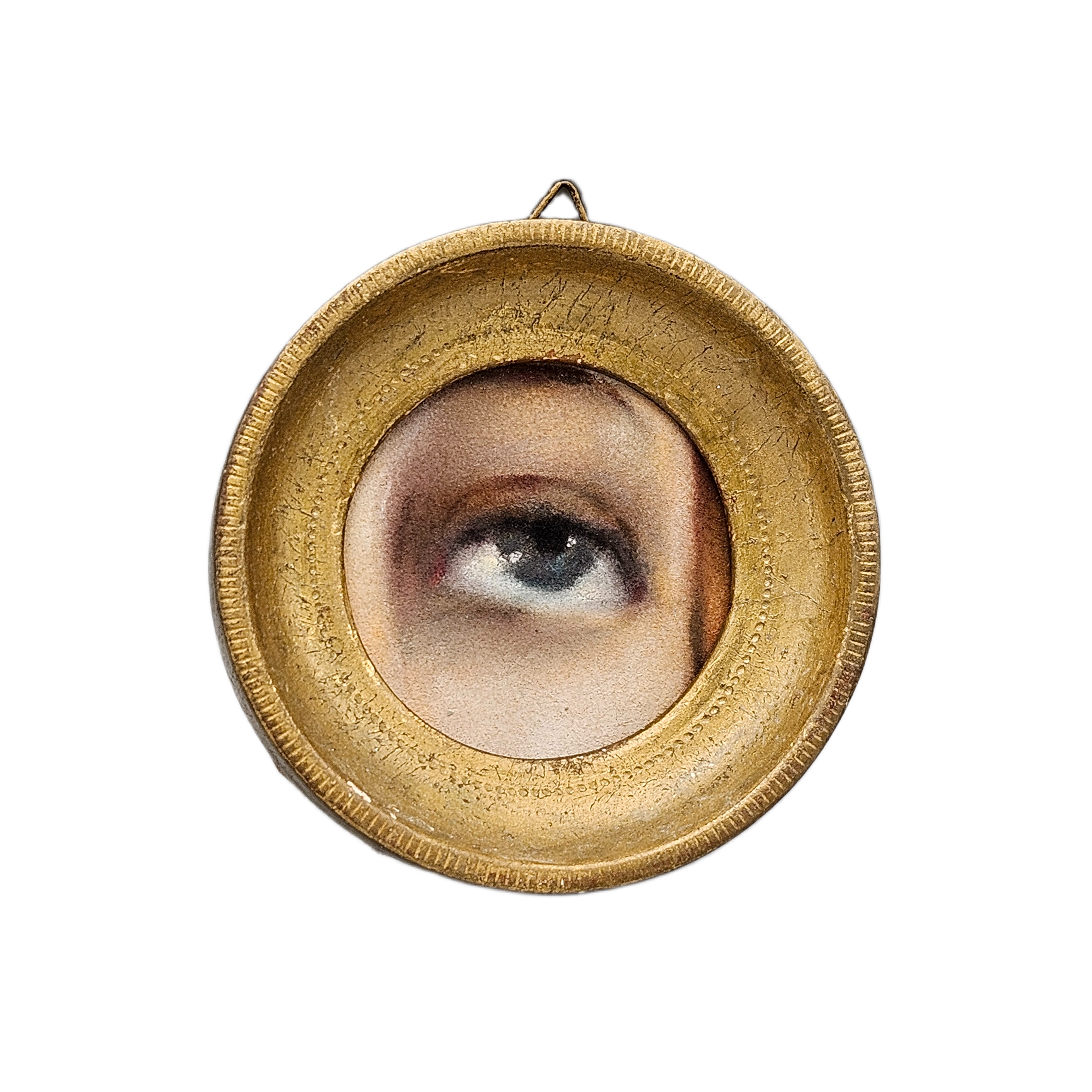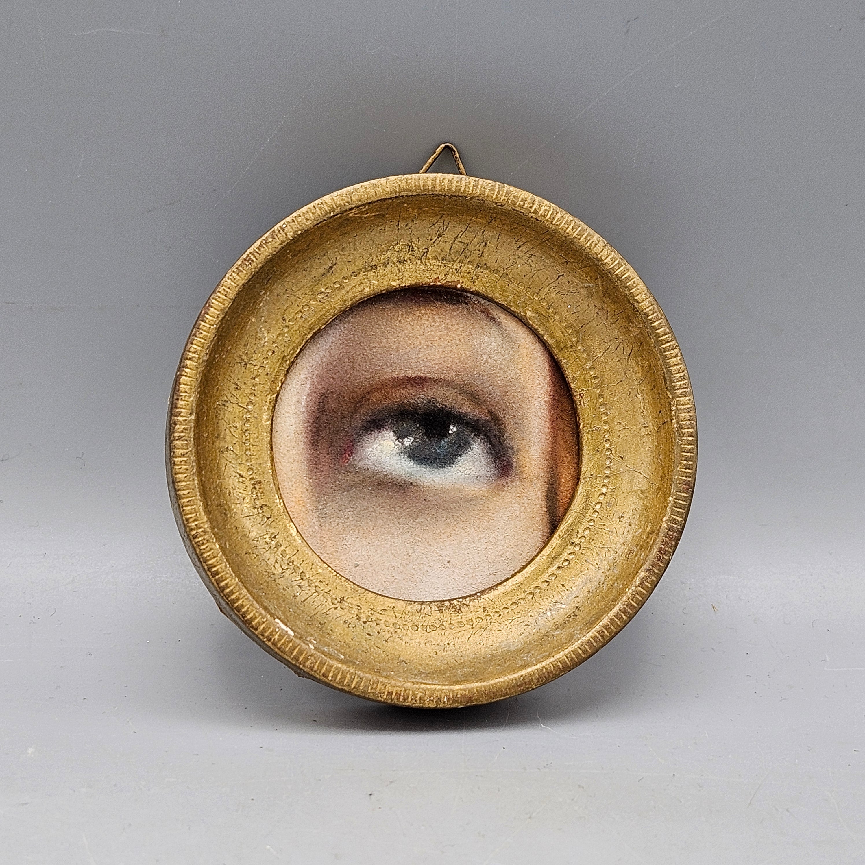Antique Lover's Eye Painting in Round Gold Gilt Frame