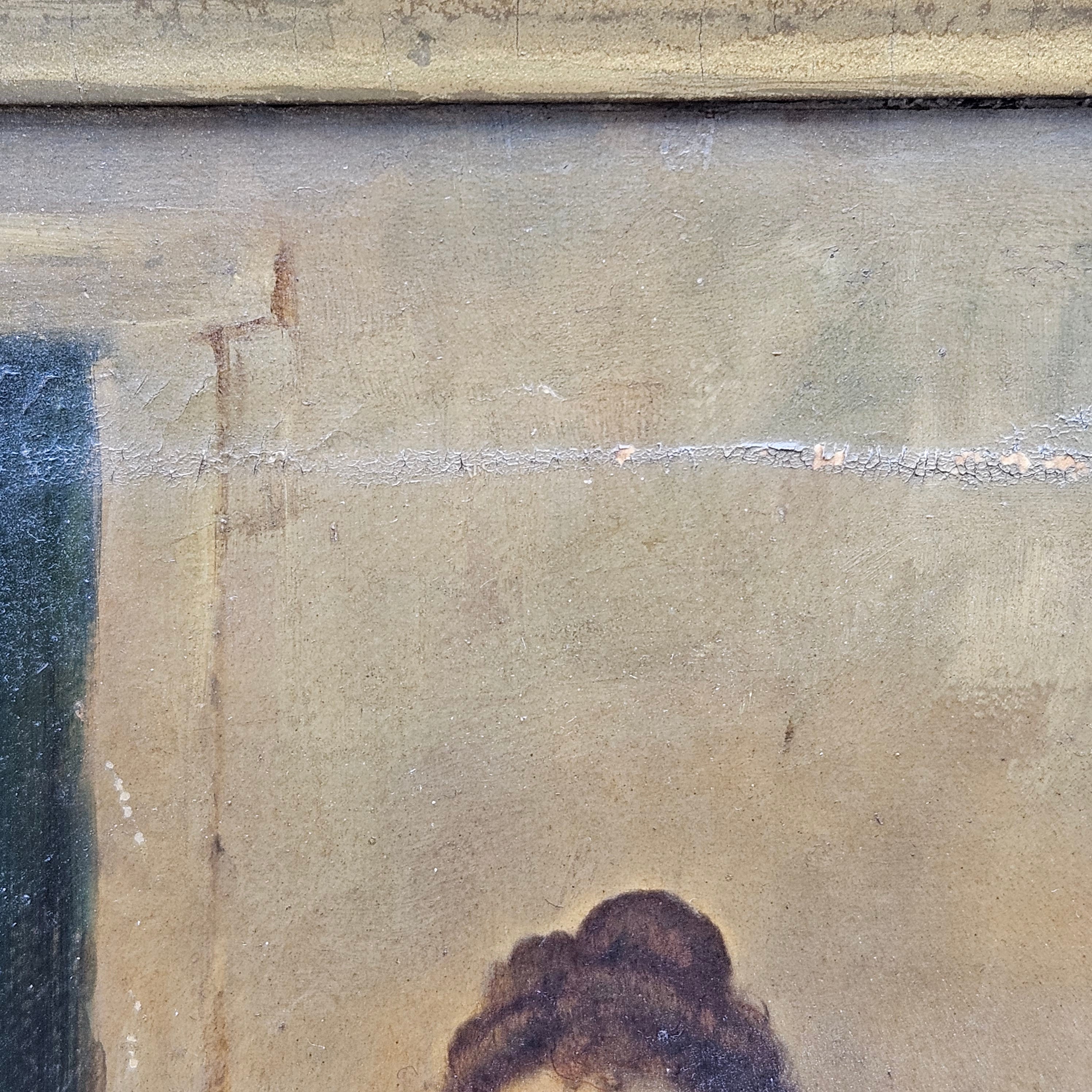- Good condition, light wear to frame, some old damage to paint surface along bottom edge of top stretcher bar