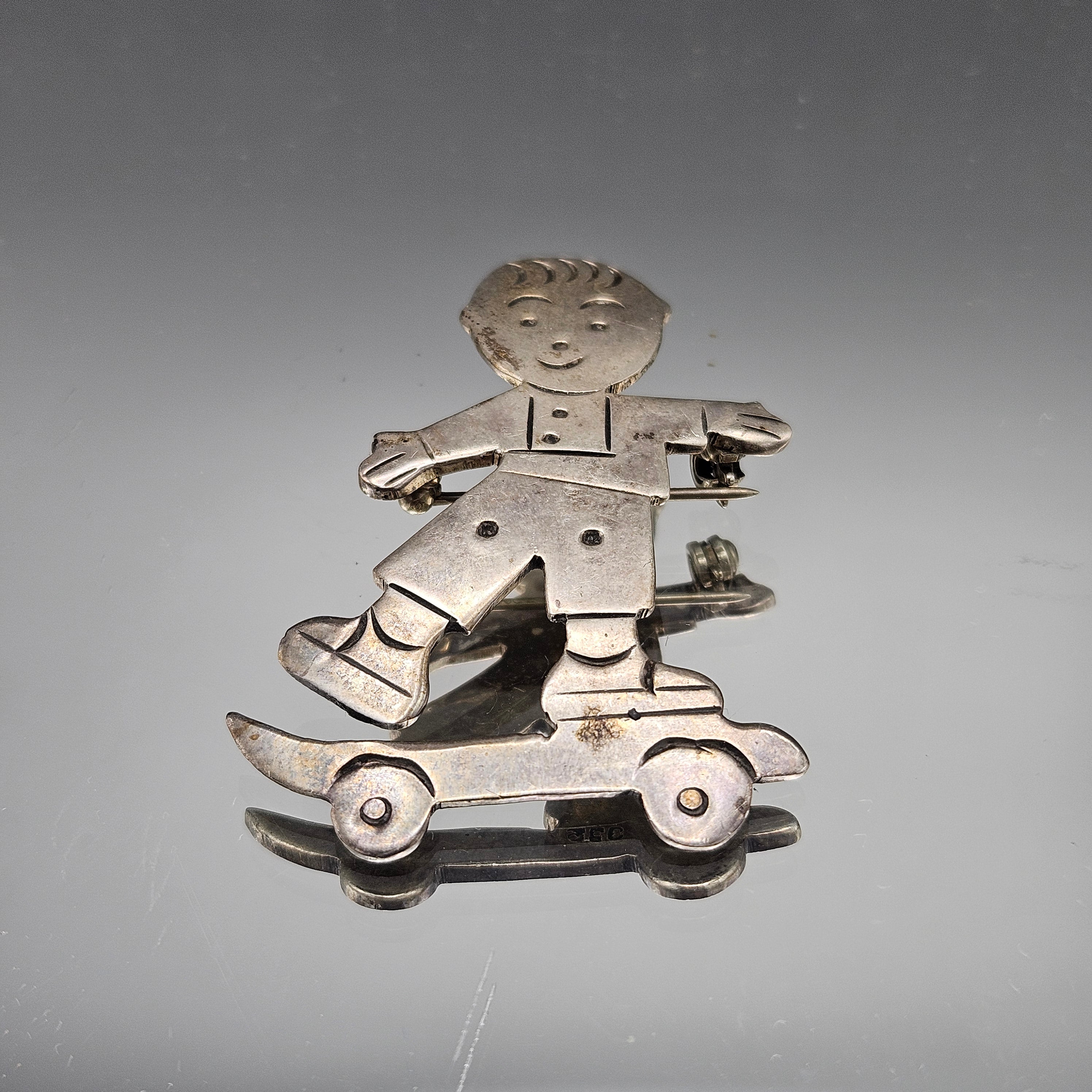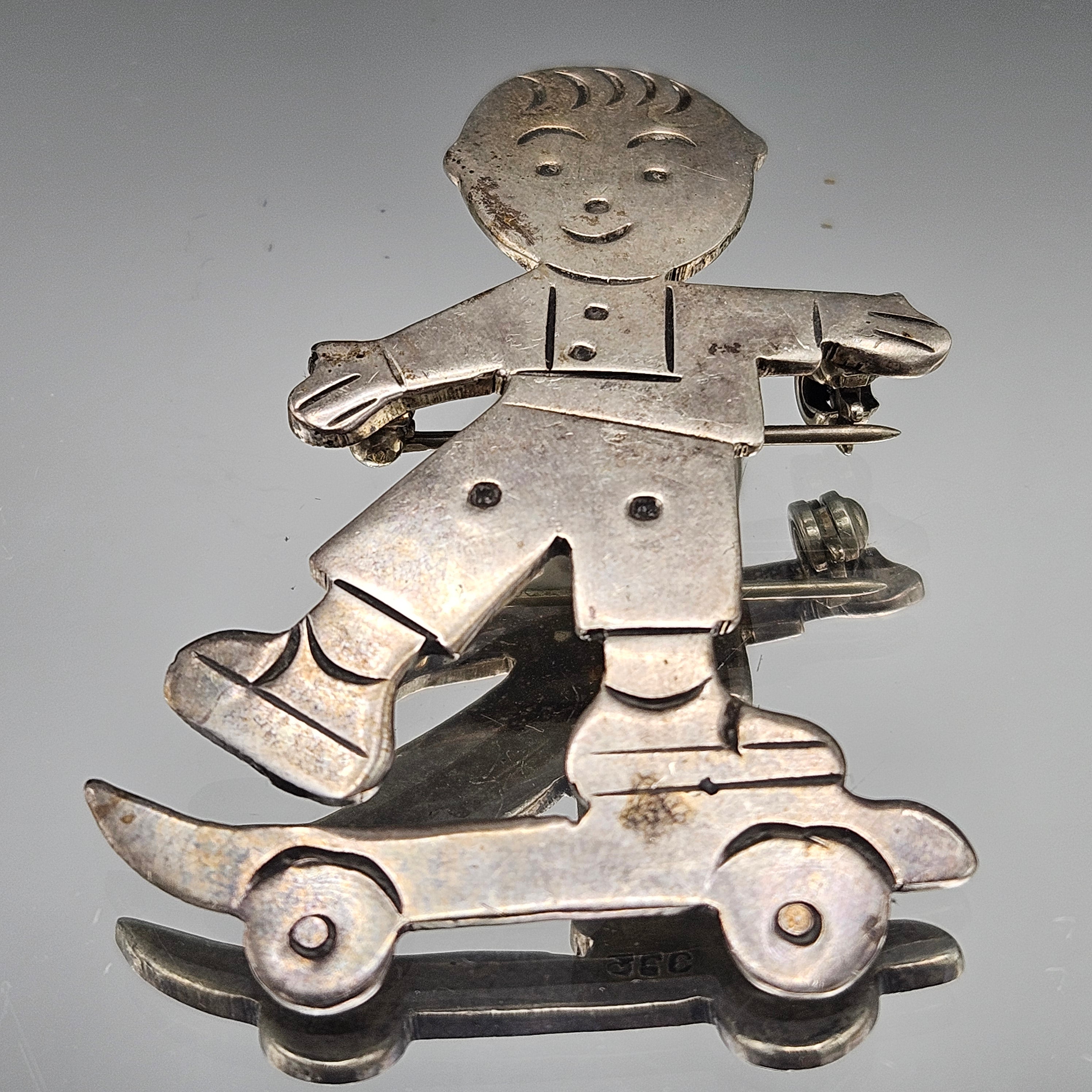 Kid Skateboarding Sterling Silver Pin and Pendant