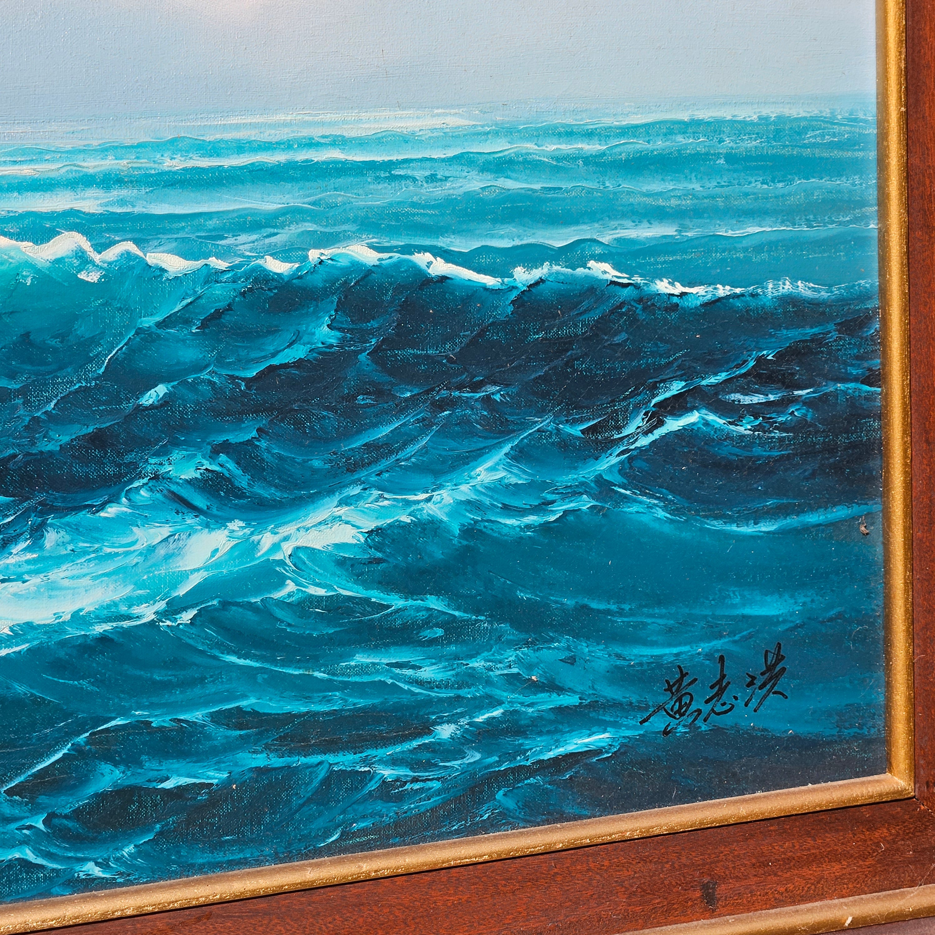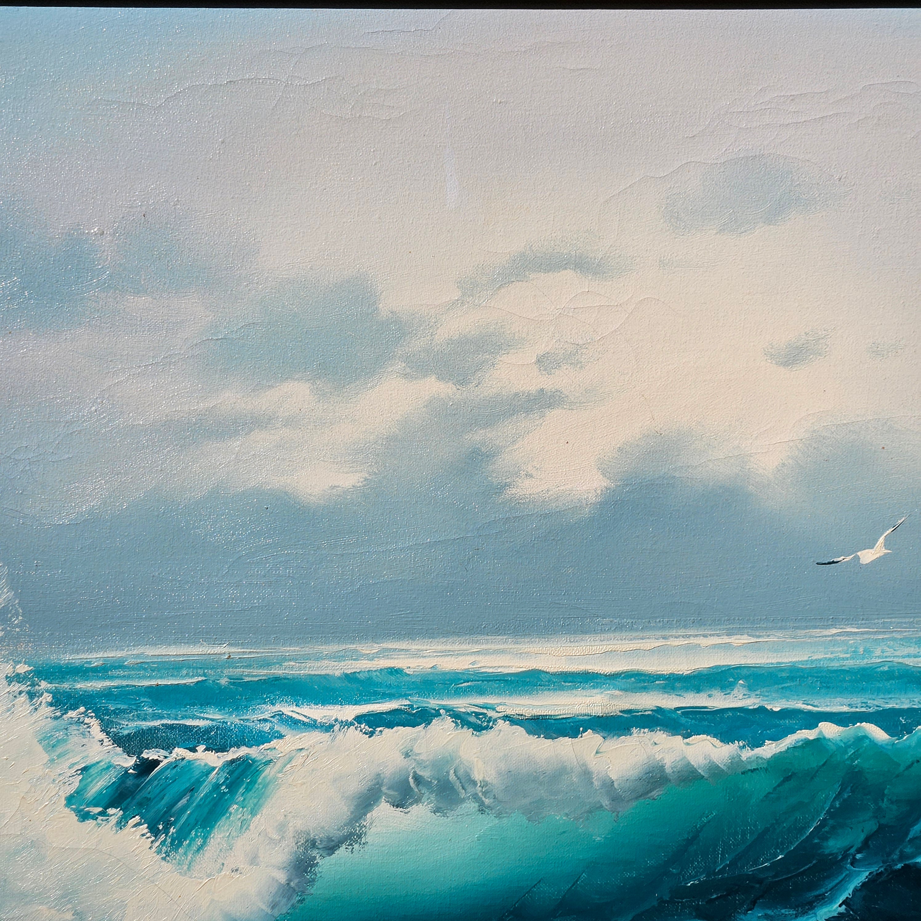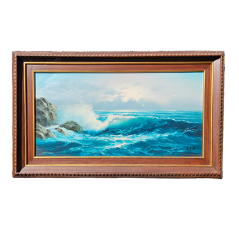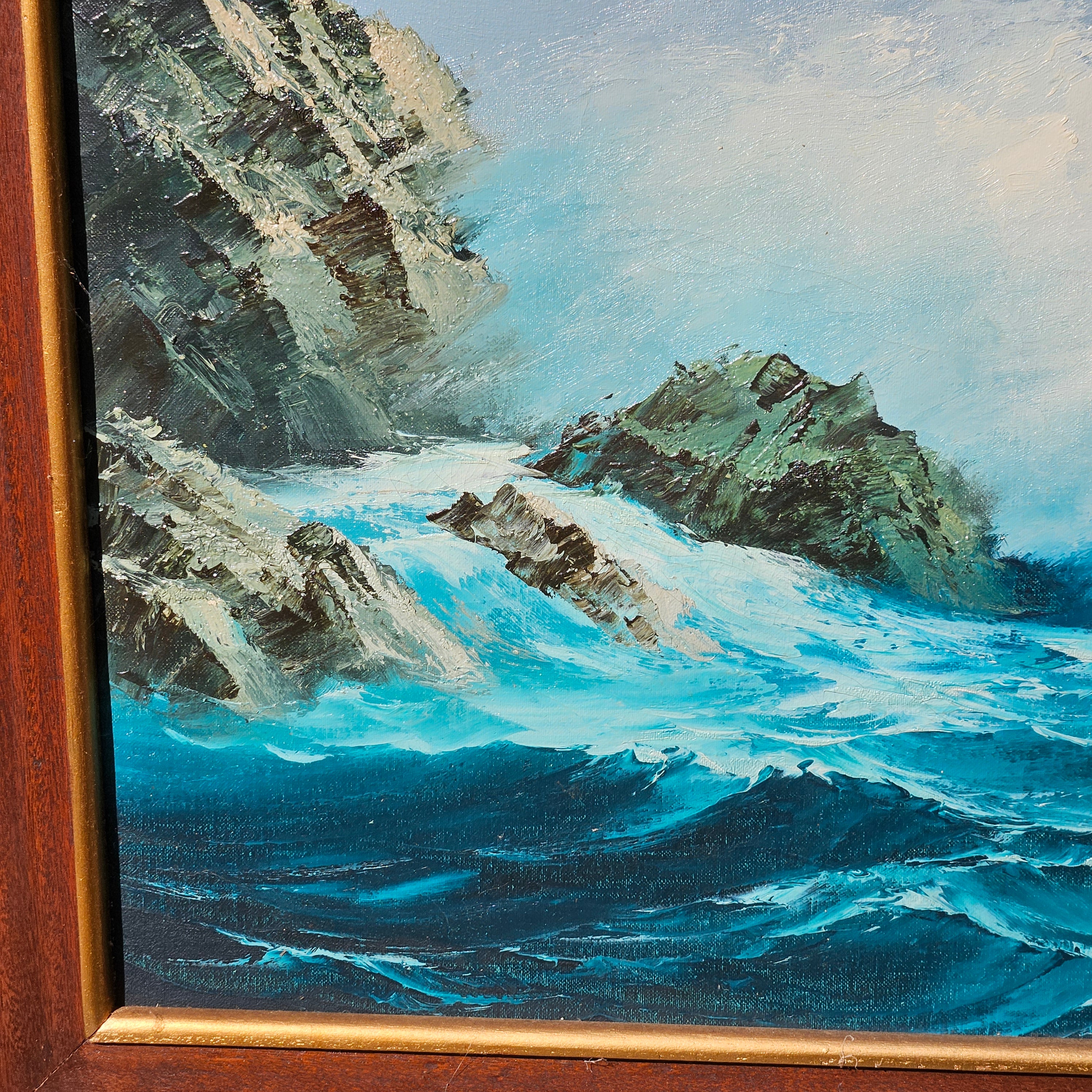 Large Signed Vintage Seascape Landscape Painting