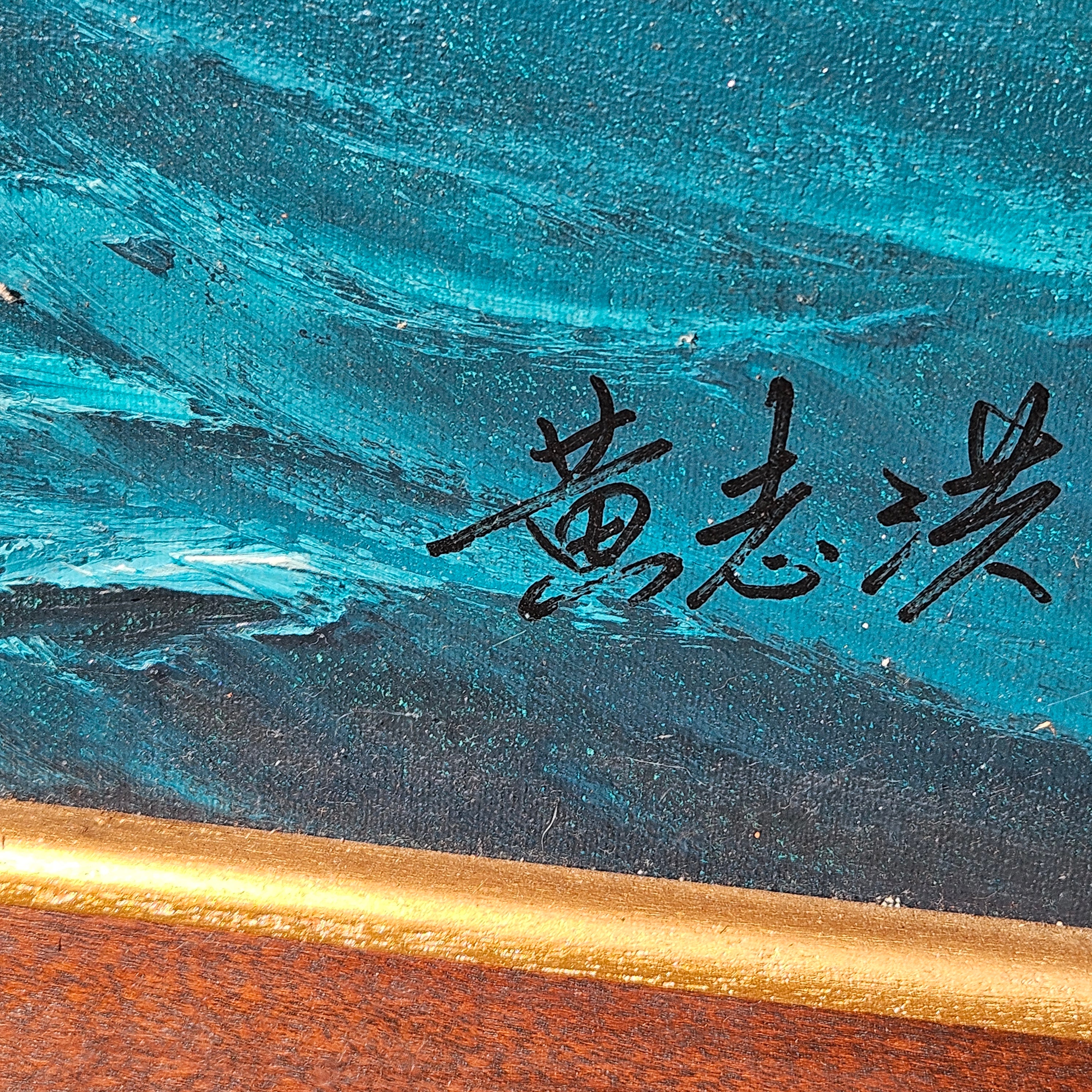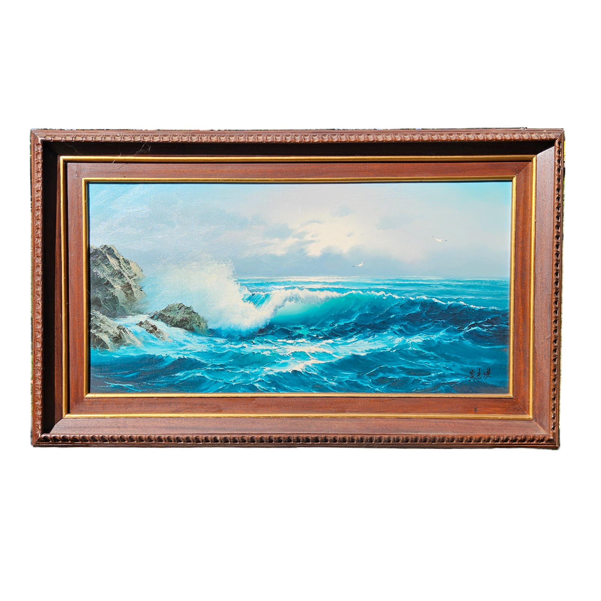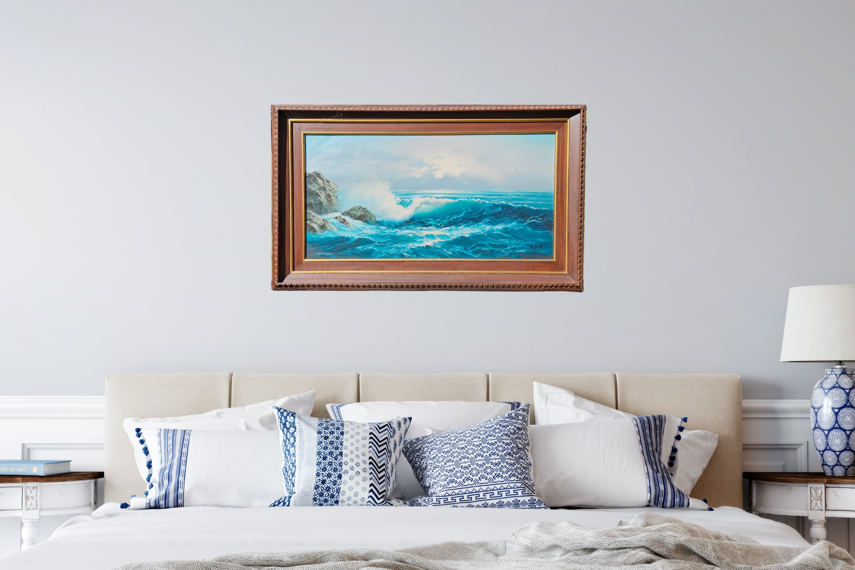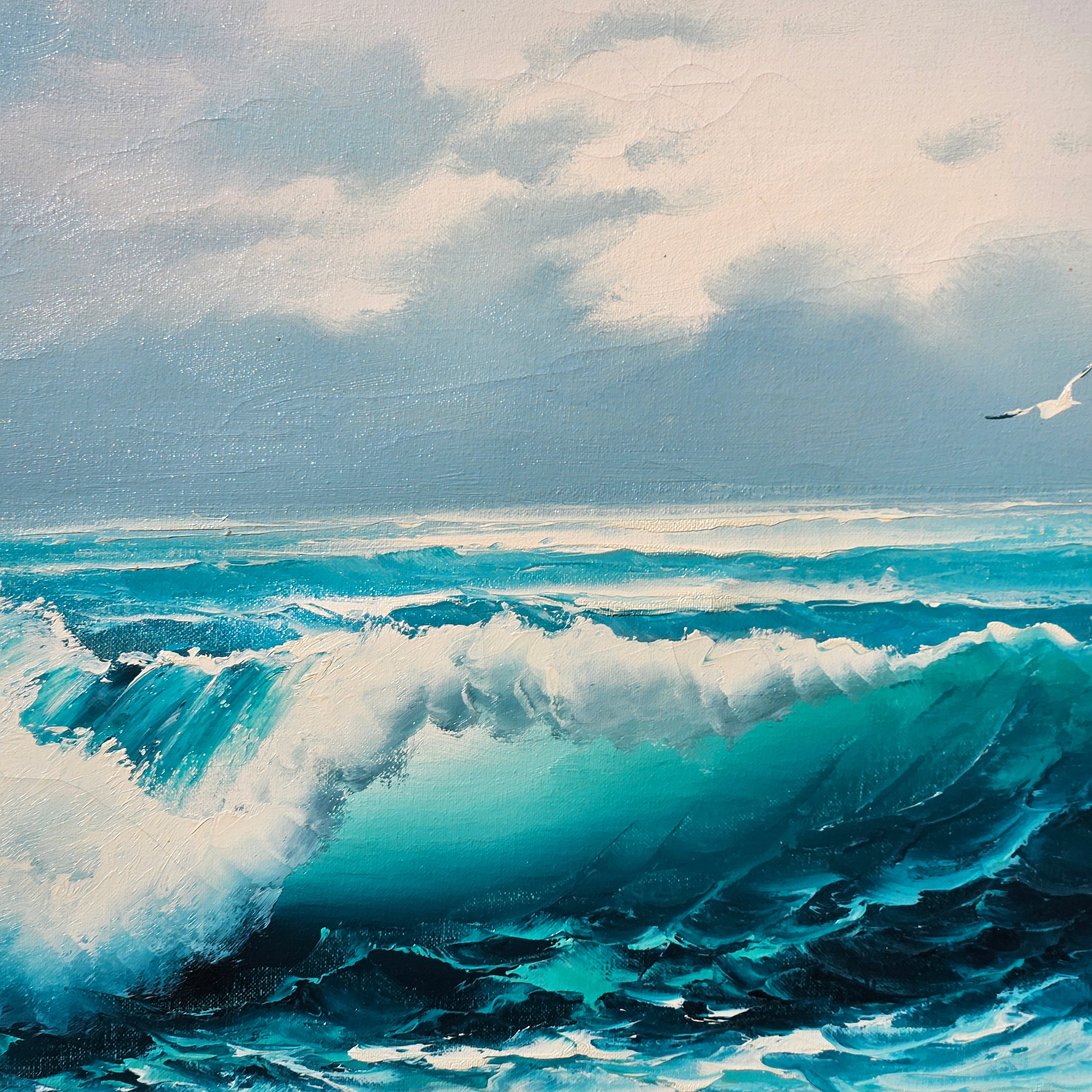 Large Signed Vintage Seascape Landscape Painting