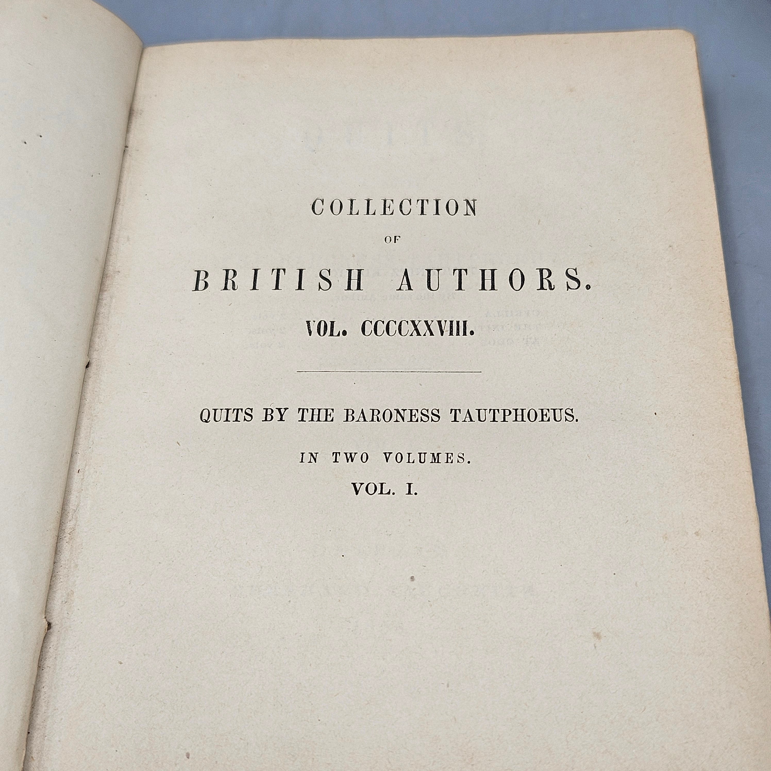 Leatherbound Book - Baroness Tautphoeus "Quits" in Two Volumes Collection of British Authors