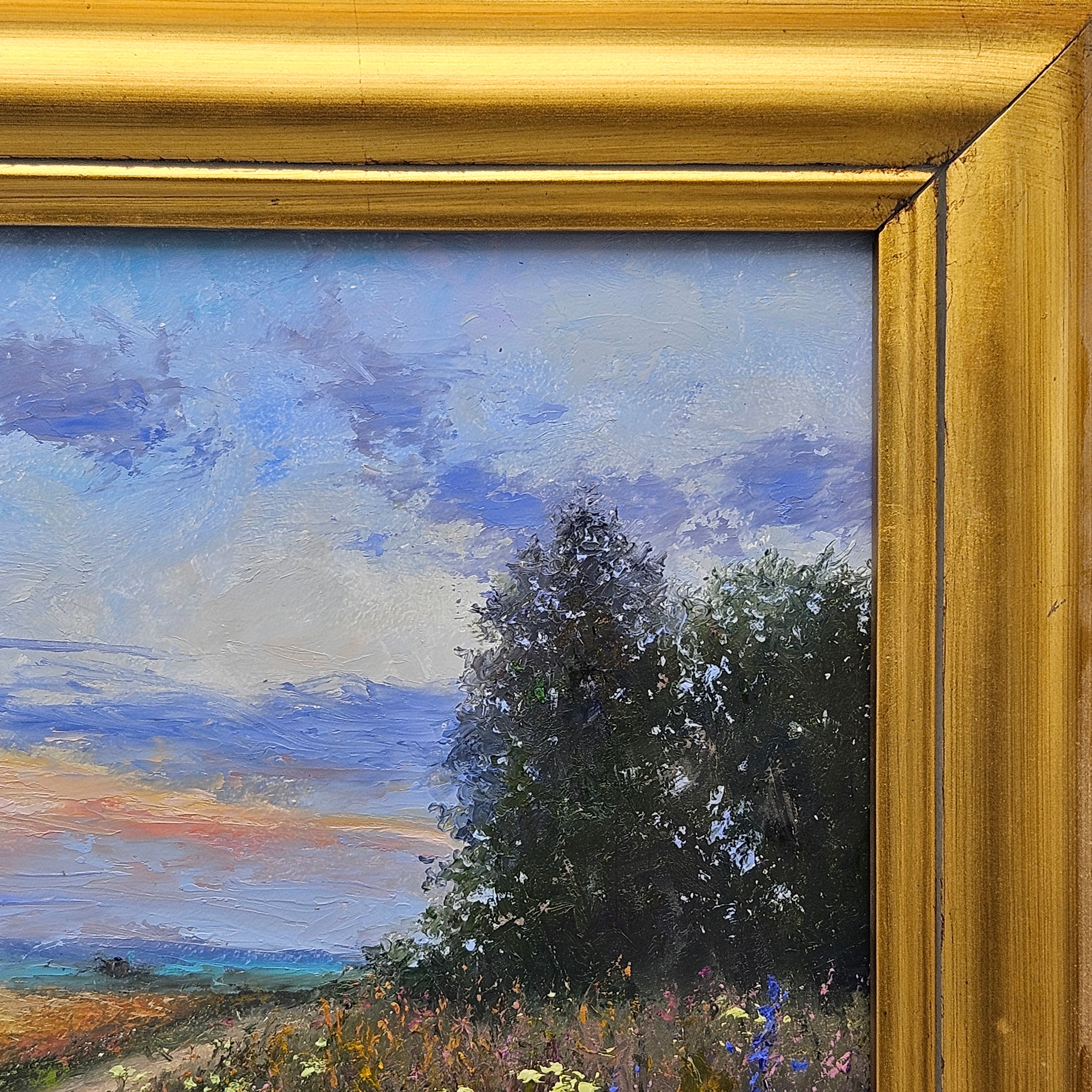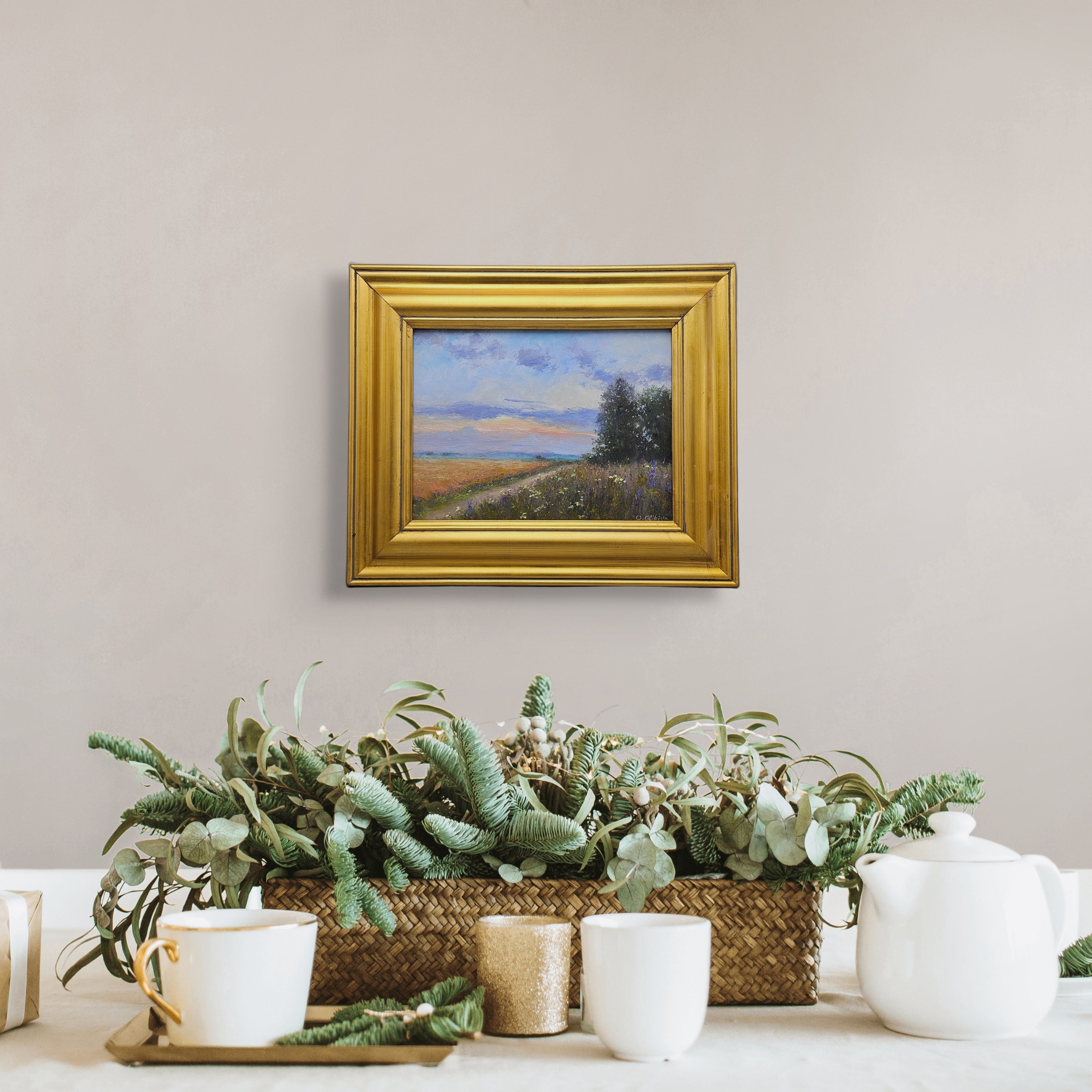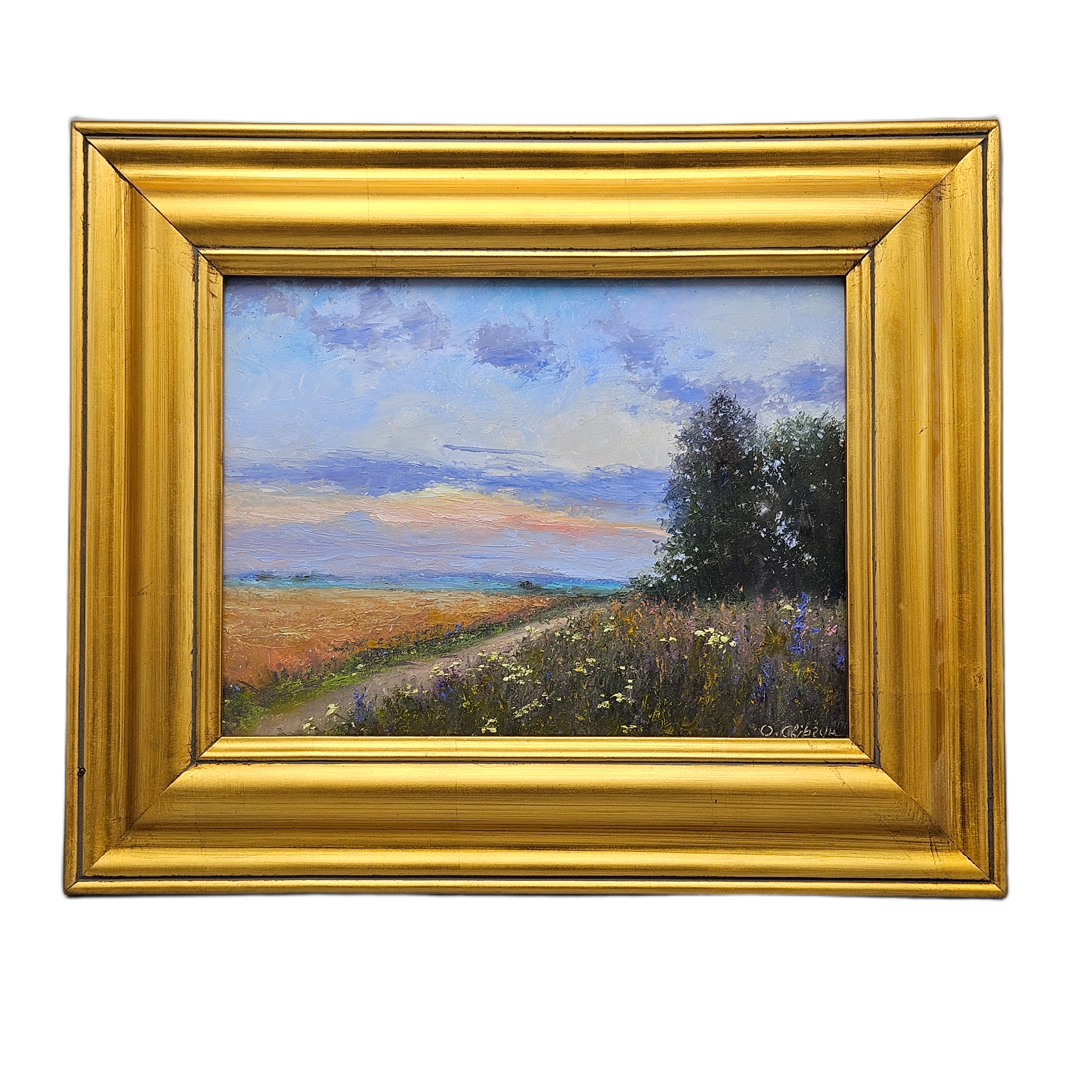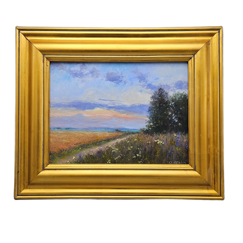 Original Framed Landscape Painting Blue Sky, Path and Trees
