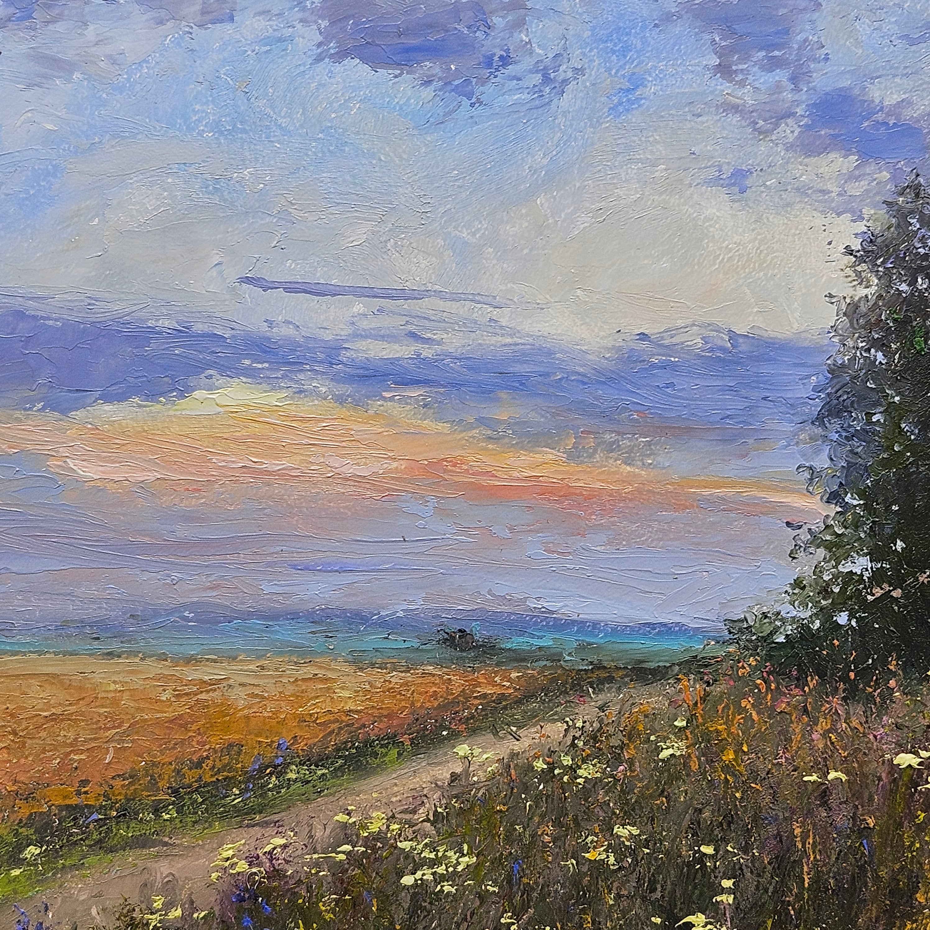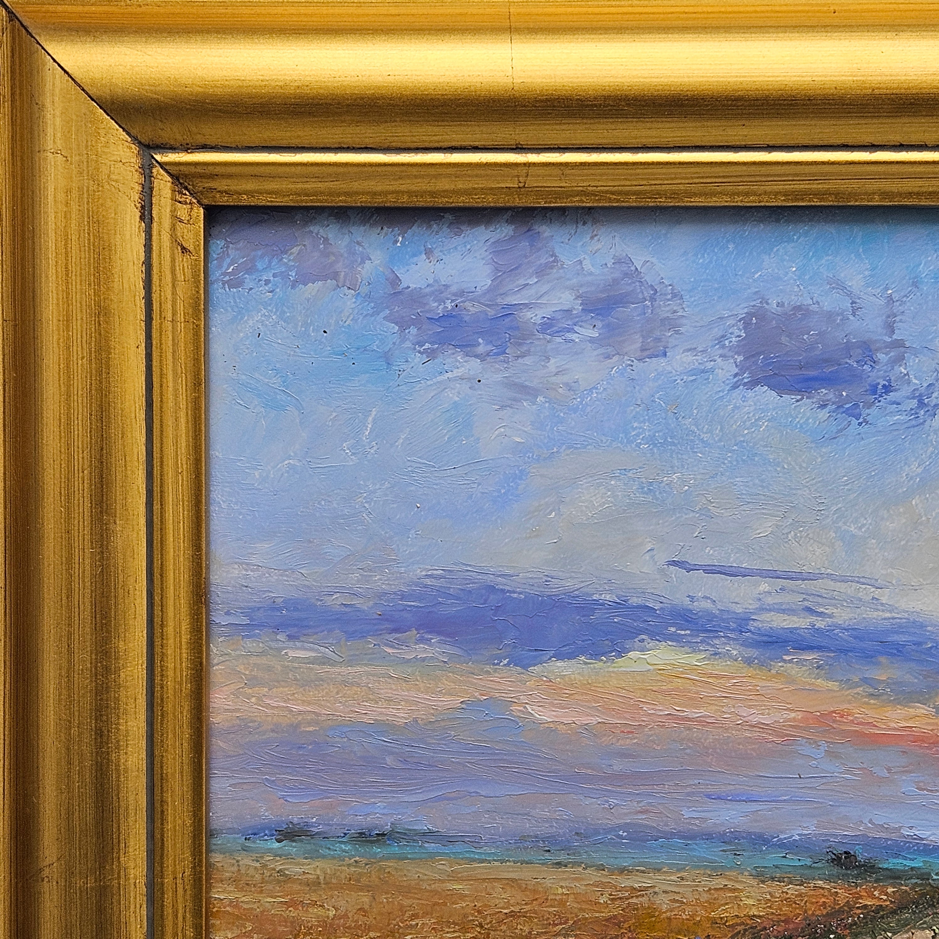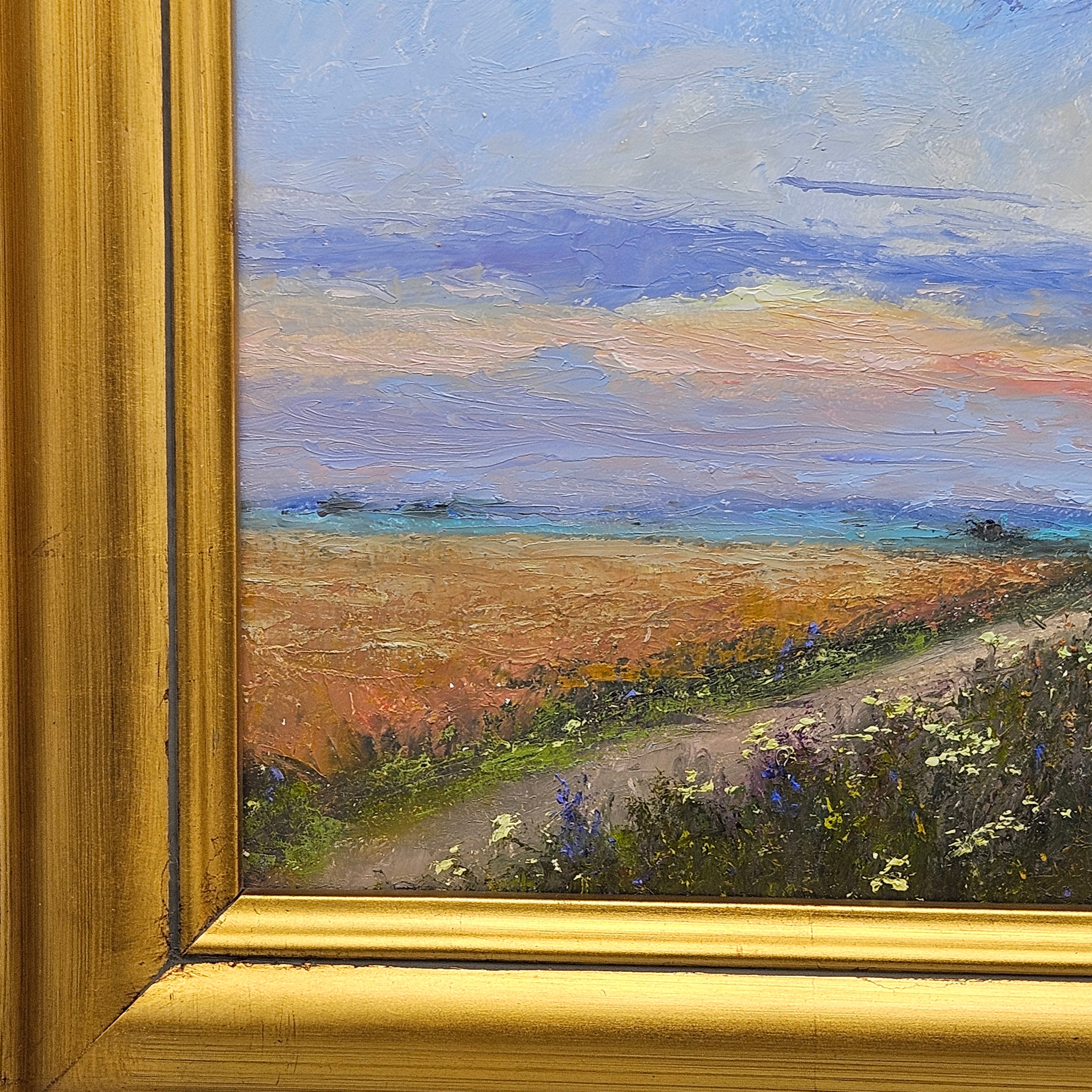 Original Framed Landscape Painting Blue Sky, Path and Trees