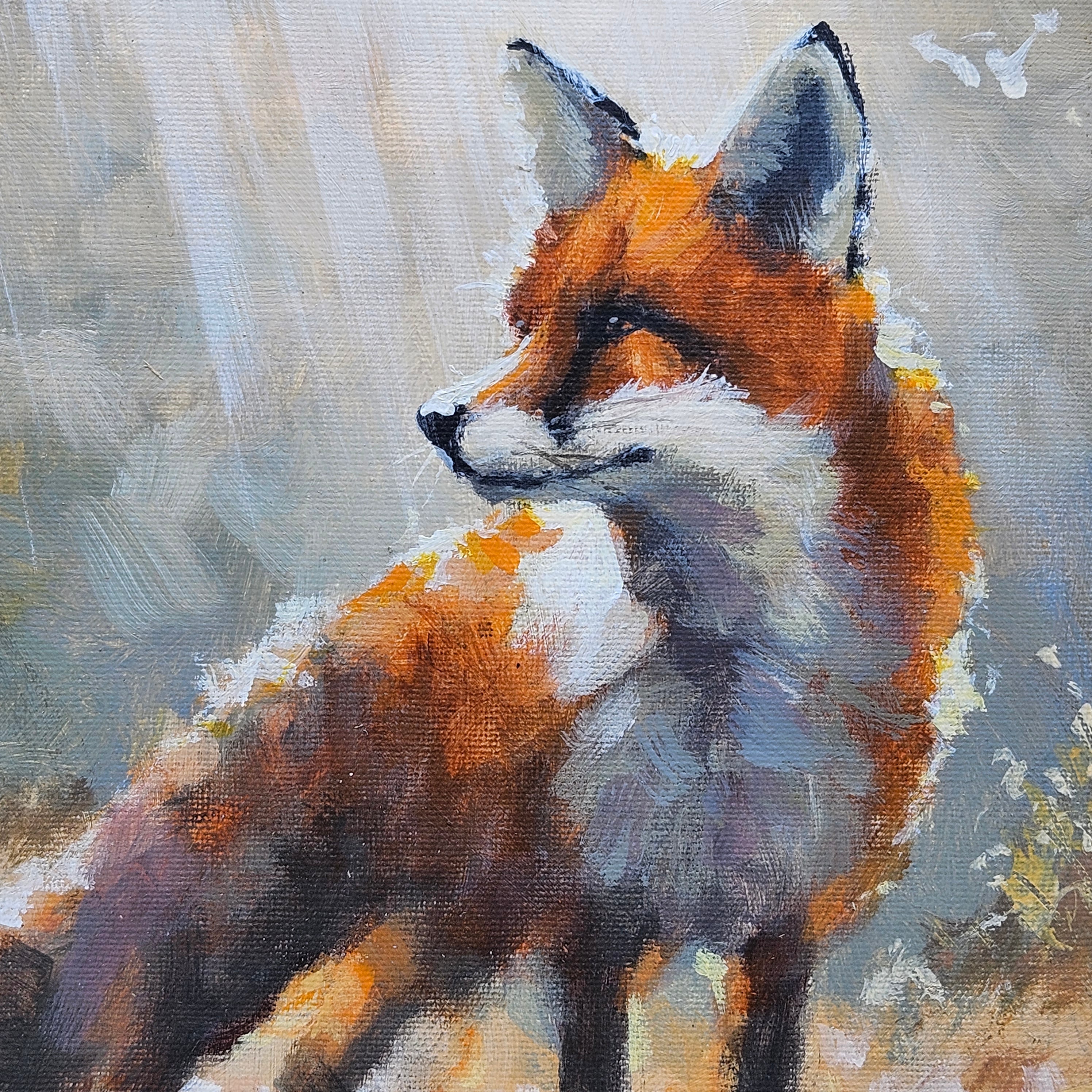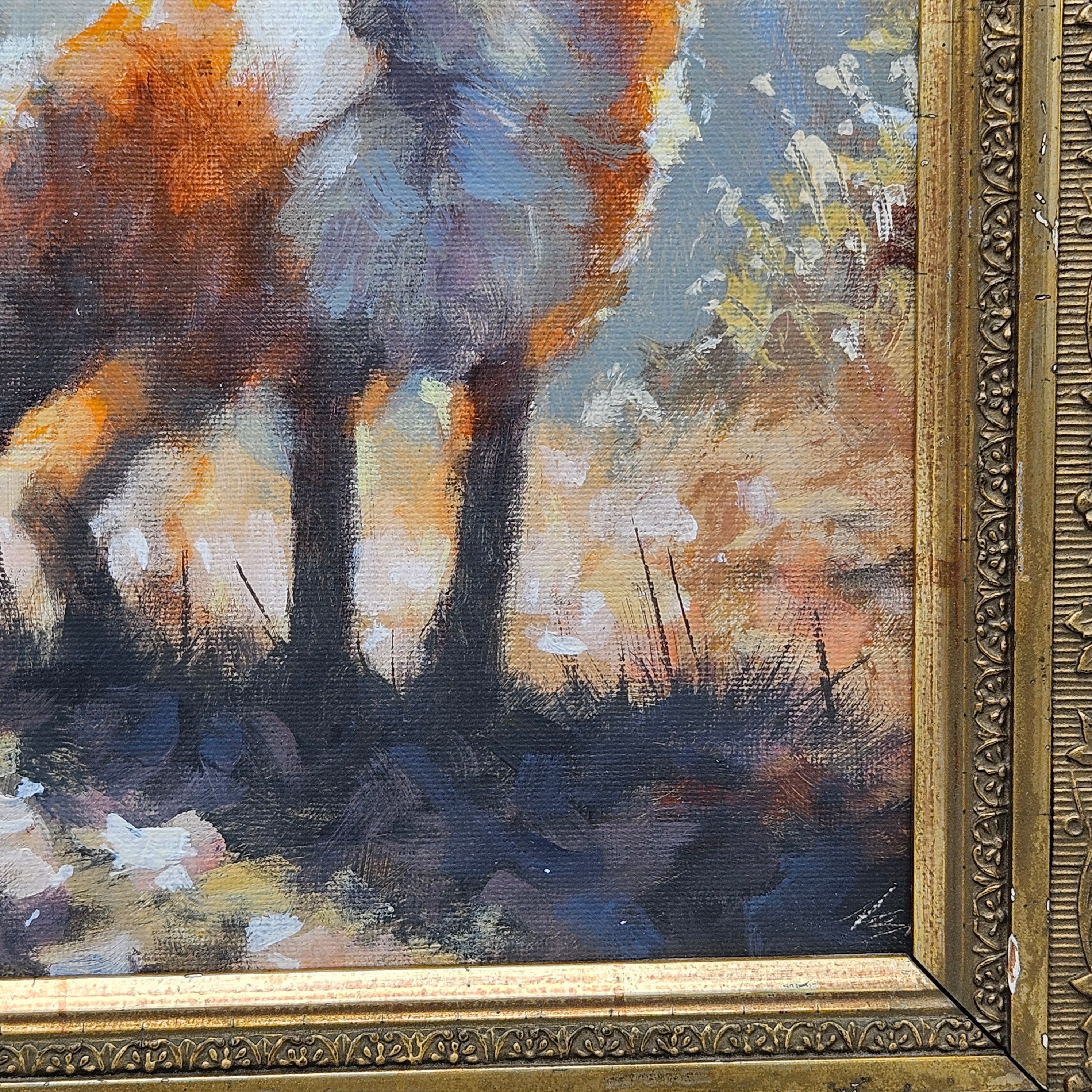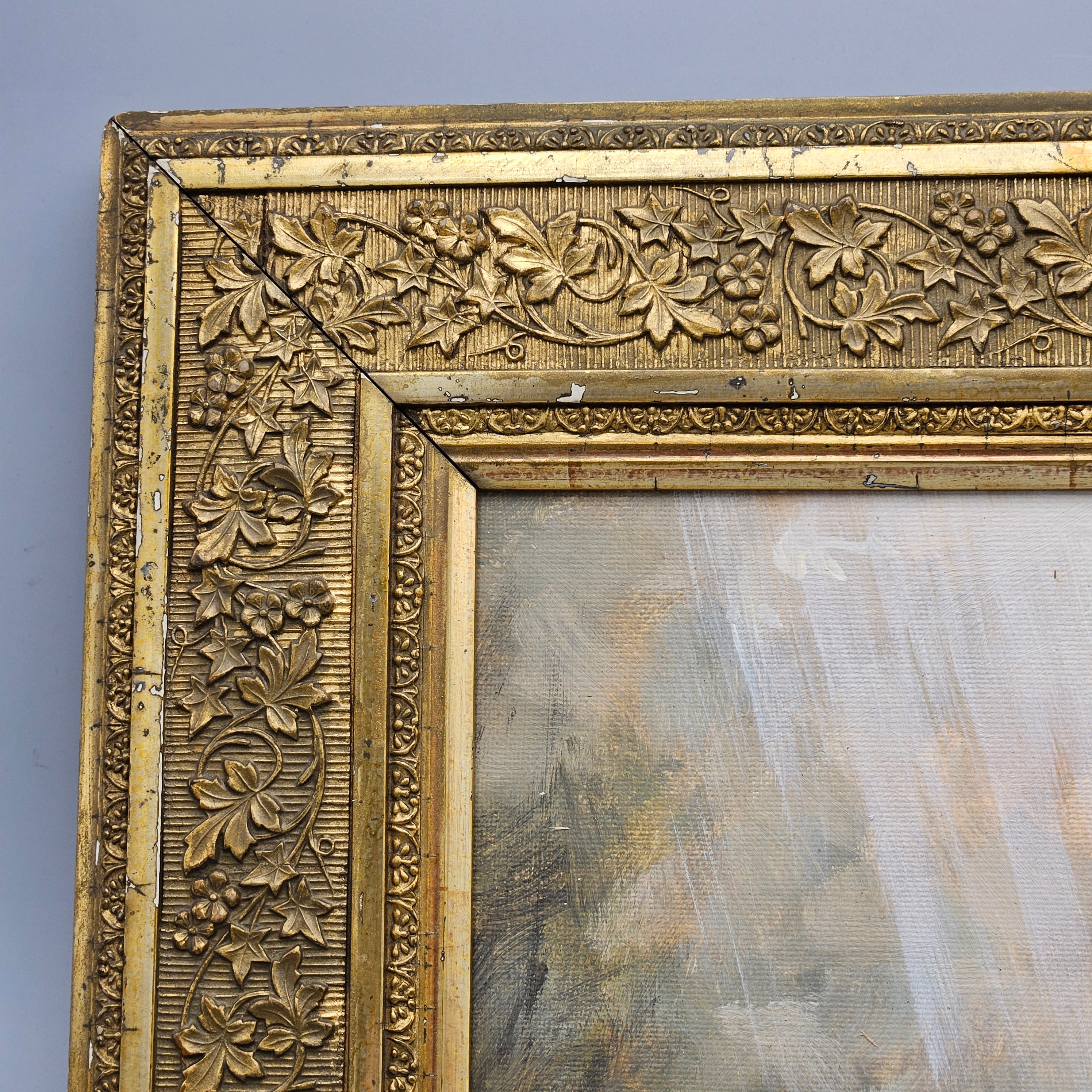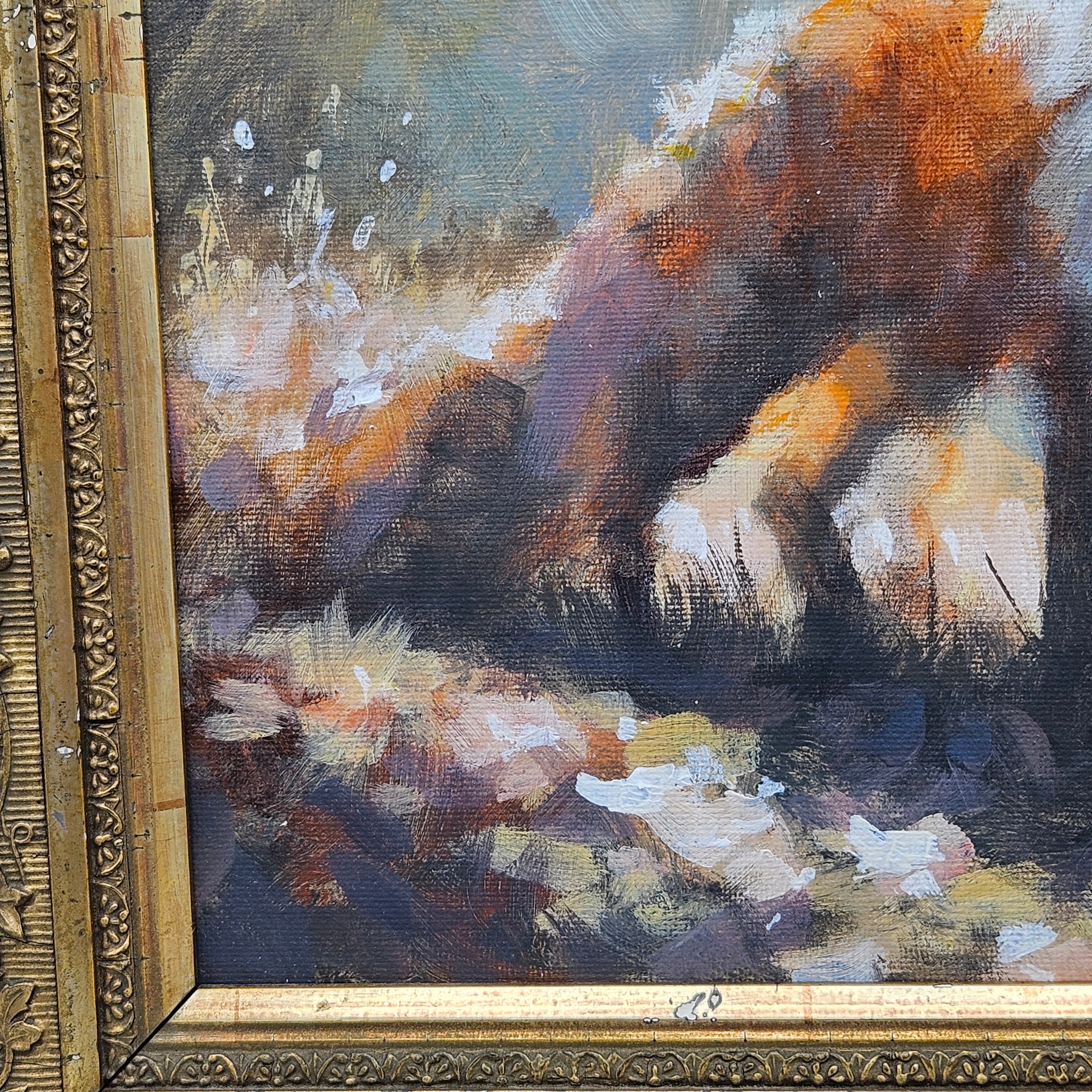 Original Framed Painting of a Fox in Gilt Carved Antique Frame