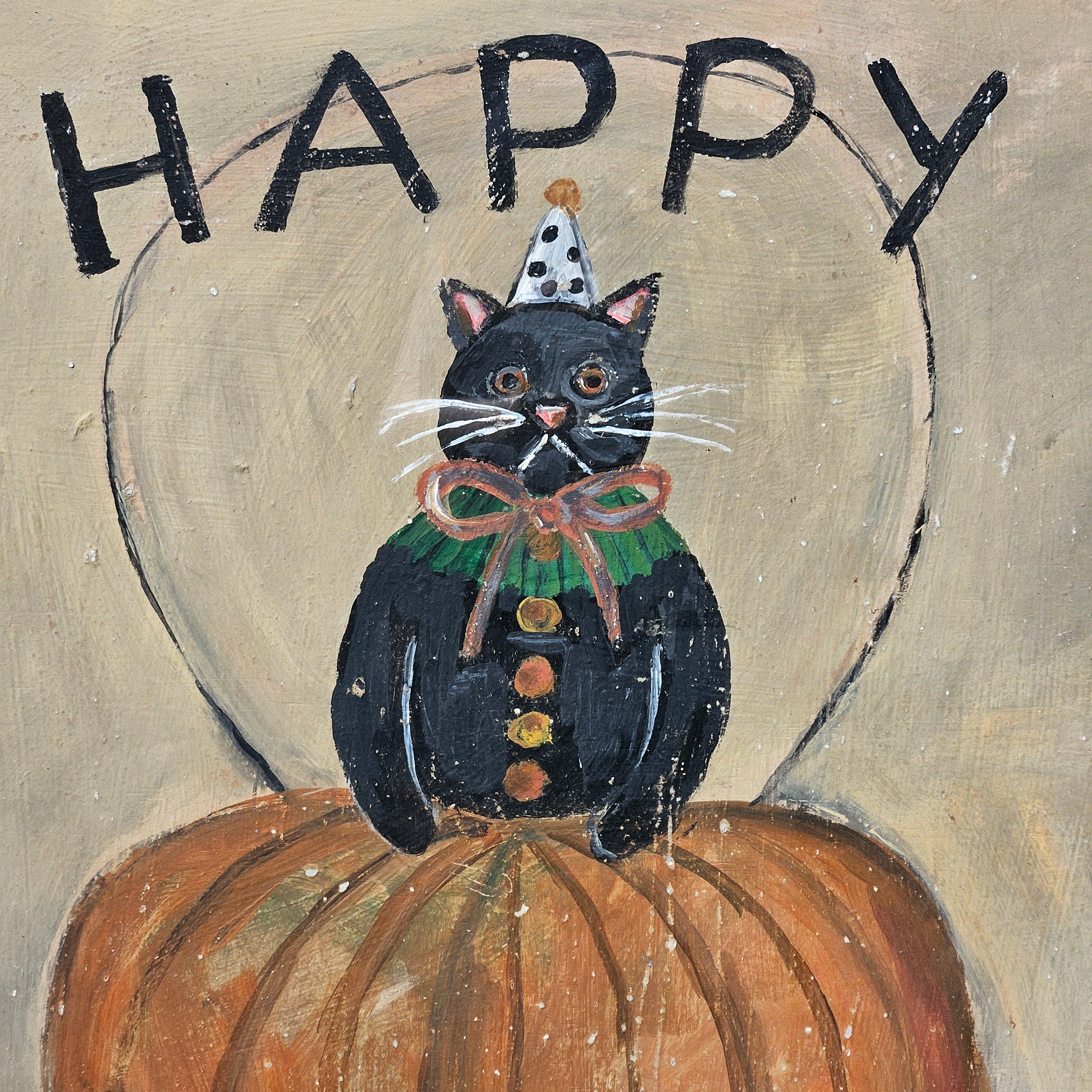 Original Hand Painted Folk Art Happy Halloween Artwork Painting
