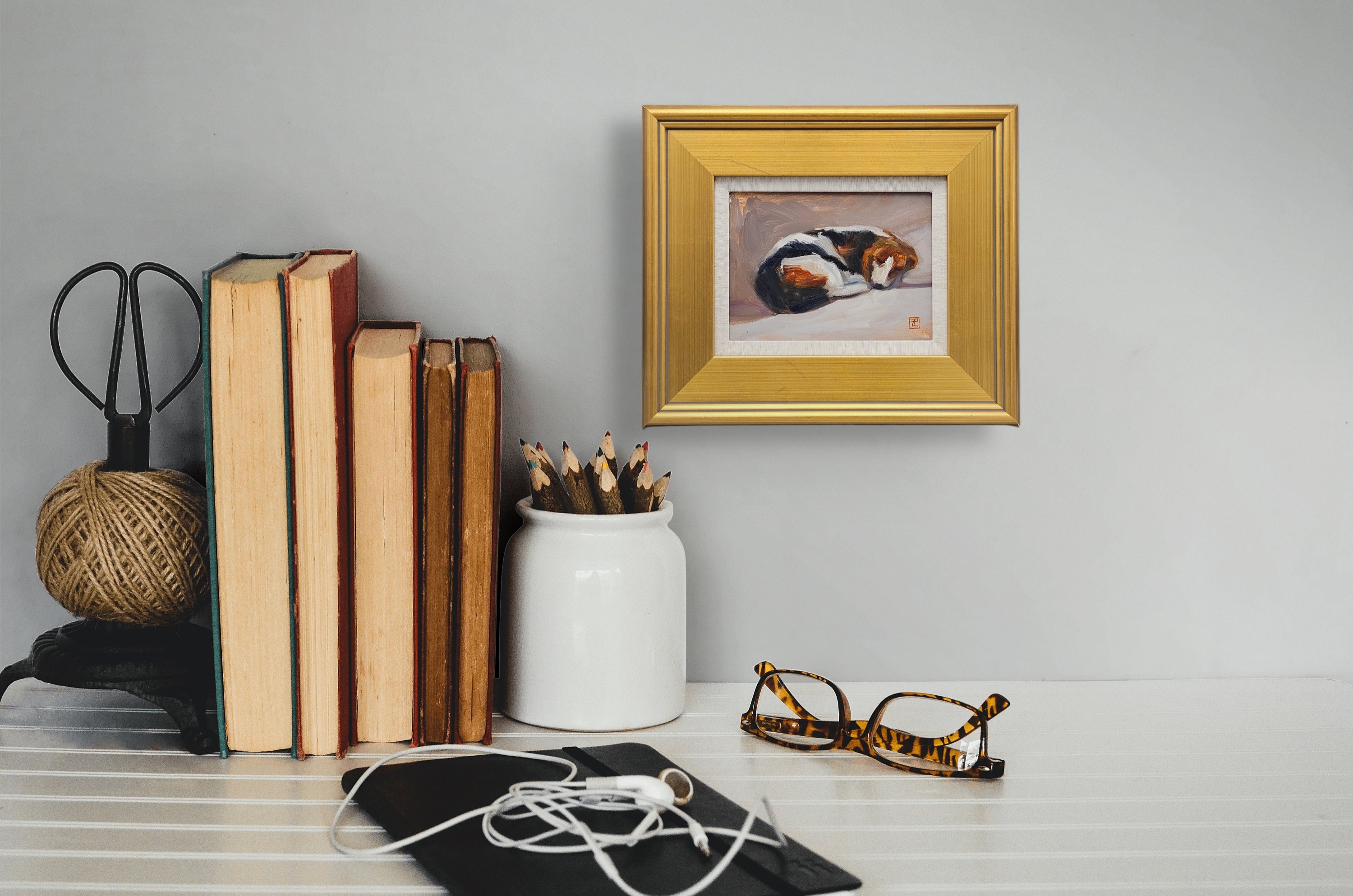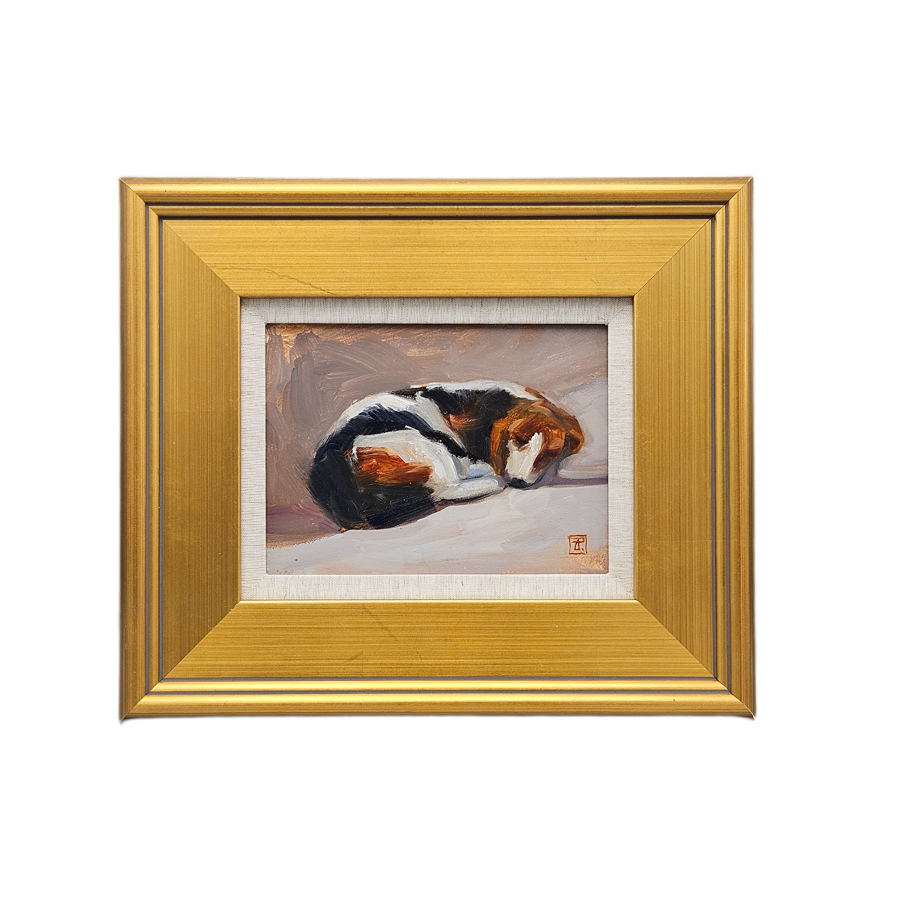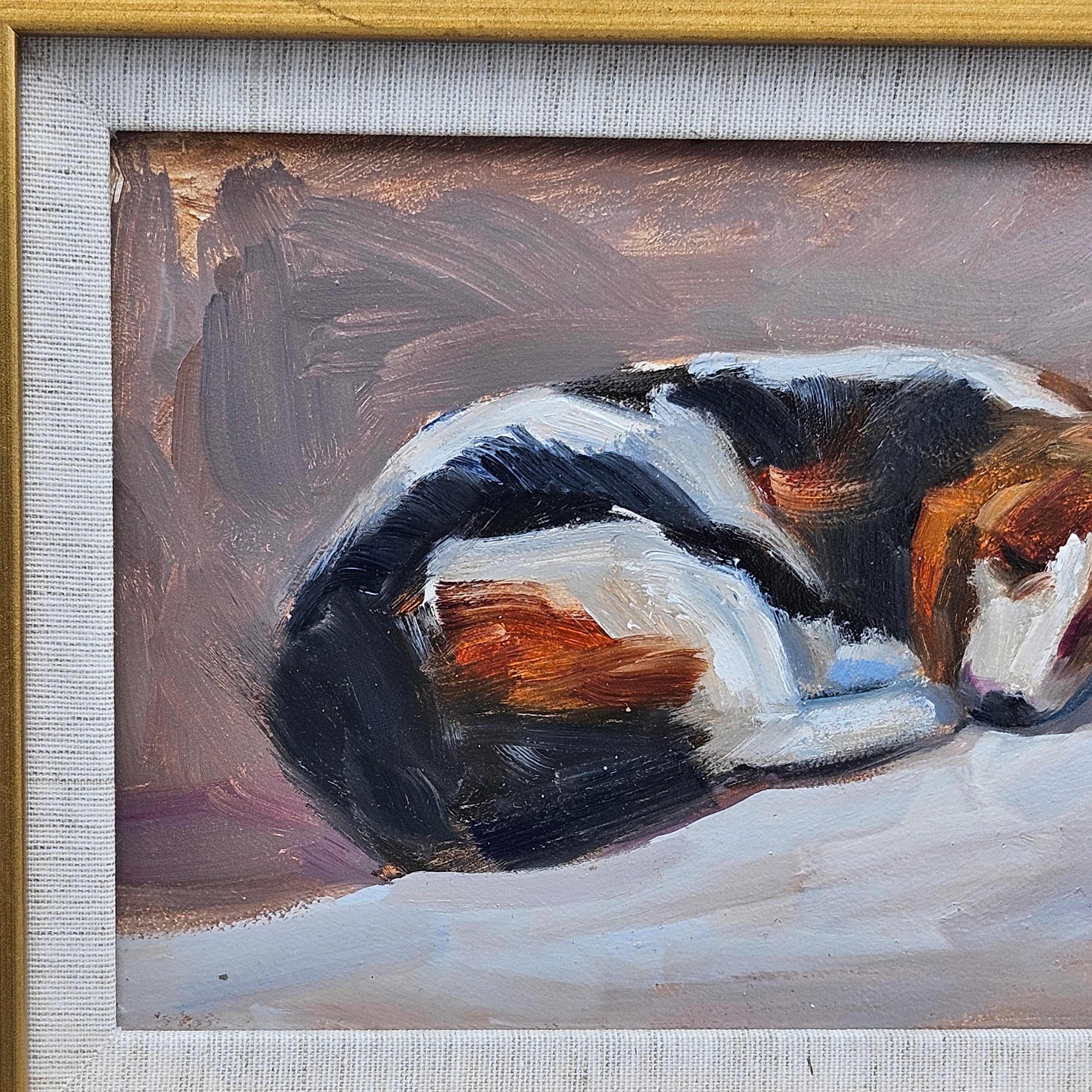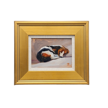 Original Painting on Board of Beagle Dog Sleeping - Signed