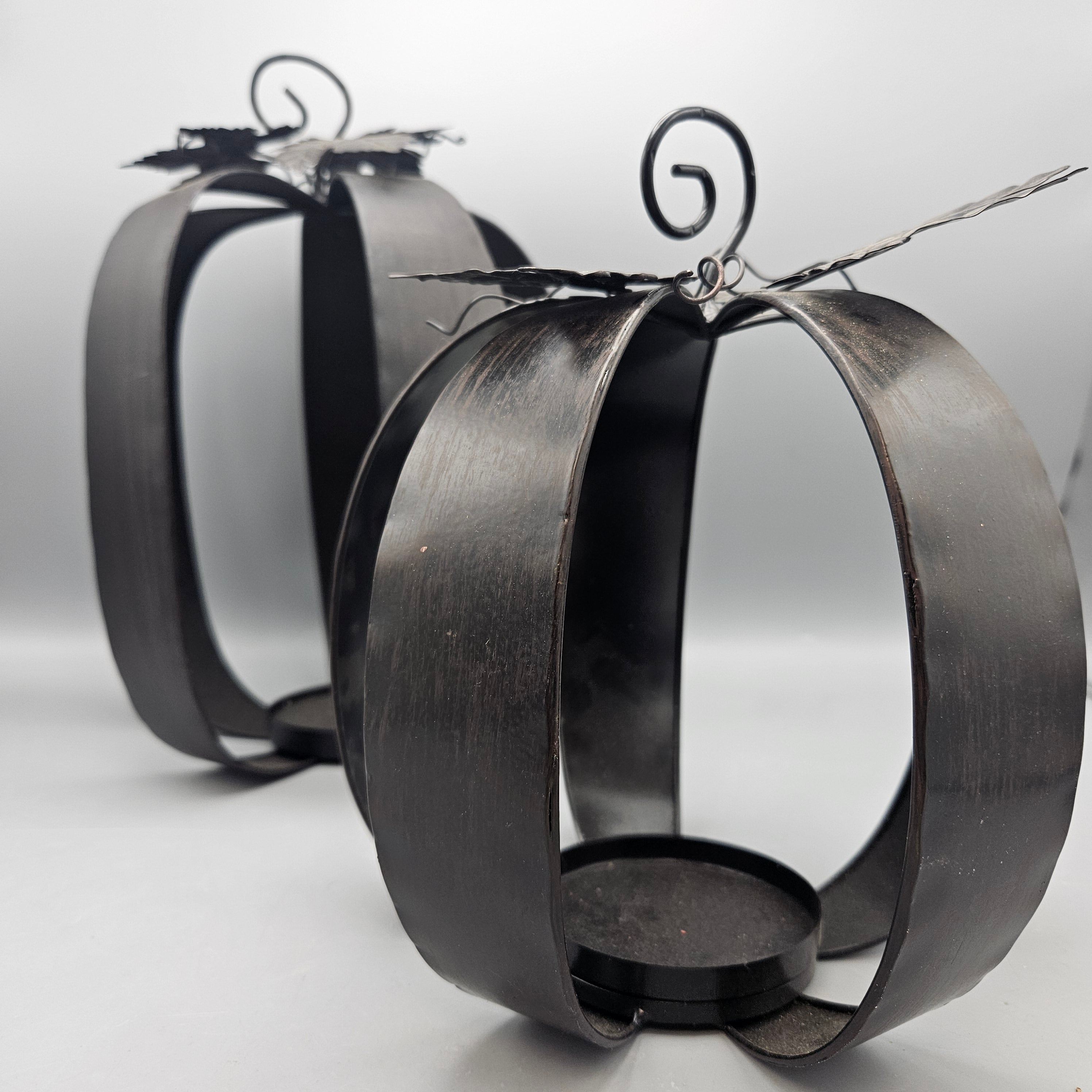 Pair of Metal Pumpkin Votive Holders