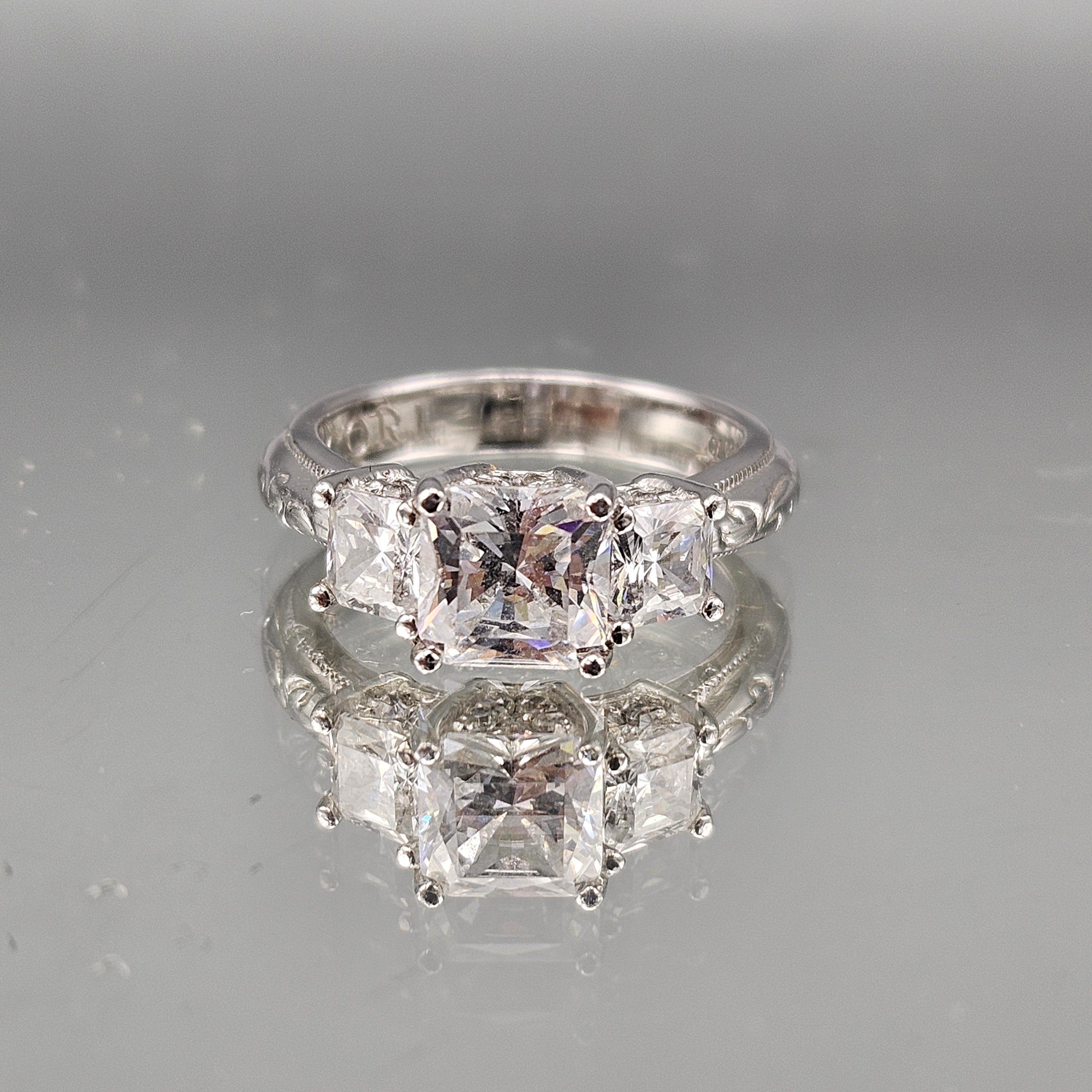 Sterling Silver CZ Engagement Ring - Size 4.25