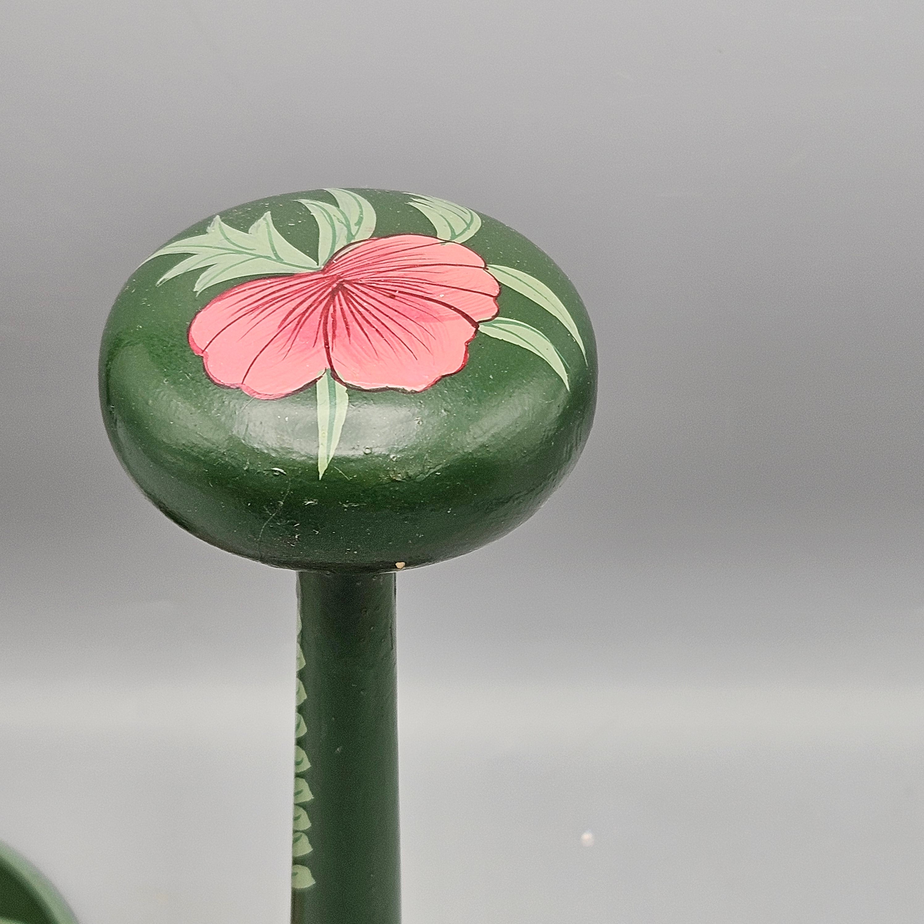 Two April Cornell Hand-Painted Wooden Hat Stands