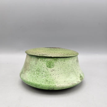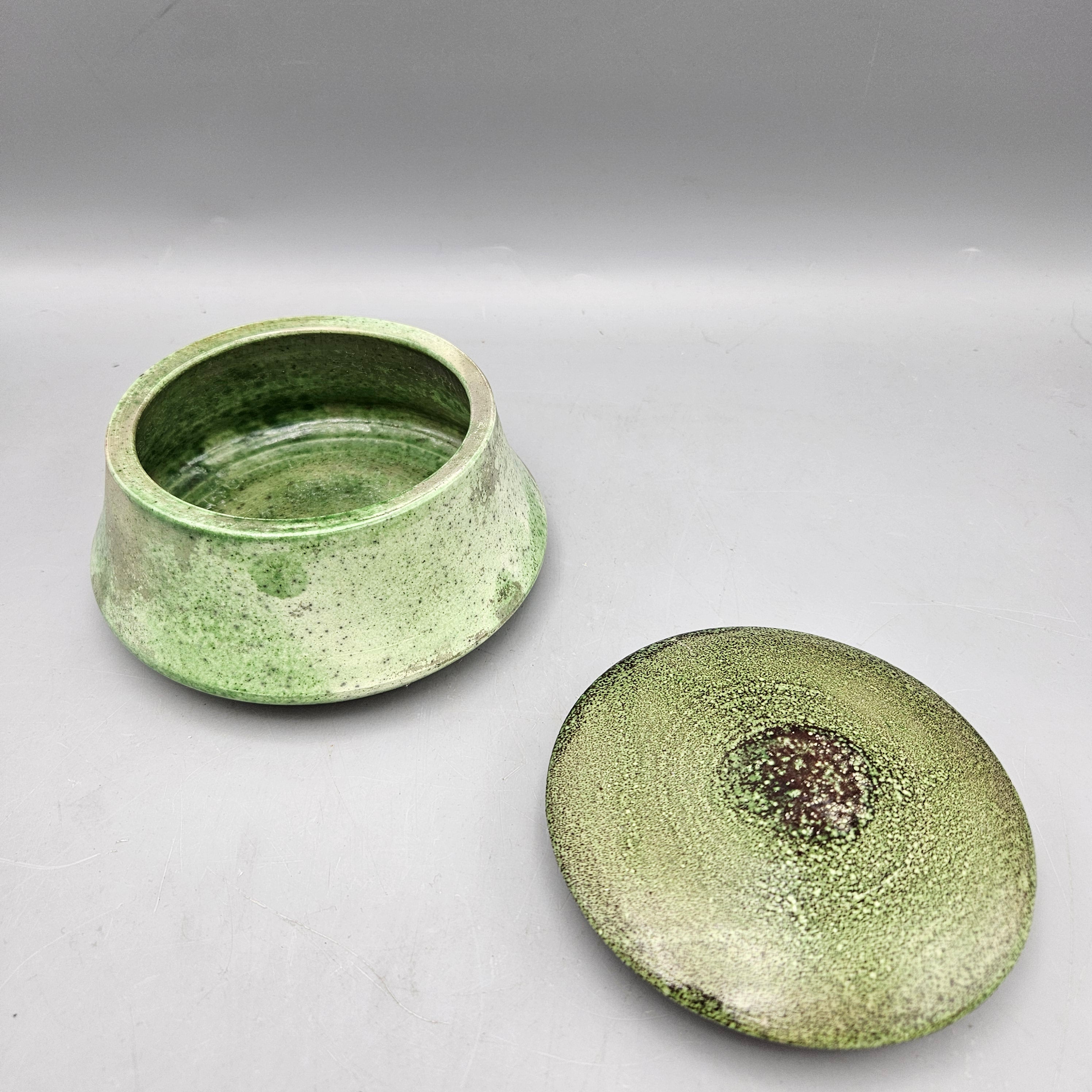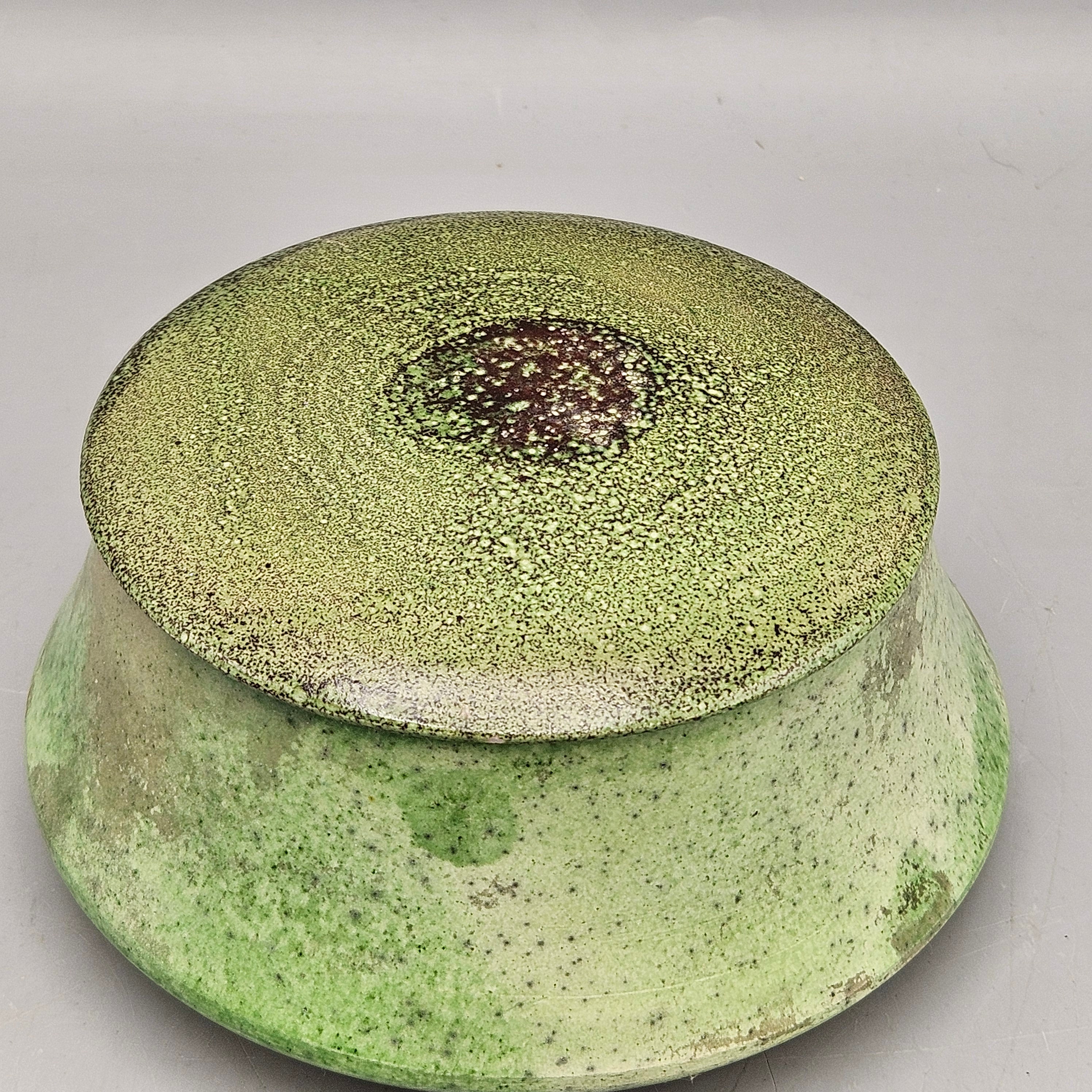 Vintage 1934 American Art Pottery Green Glazed Covered Jar