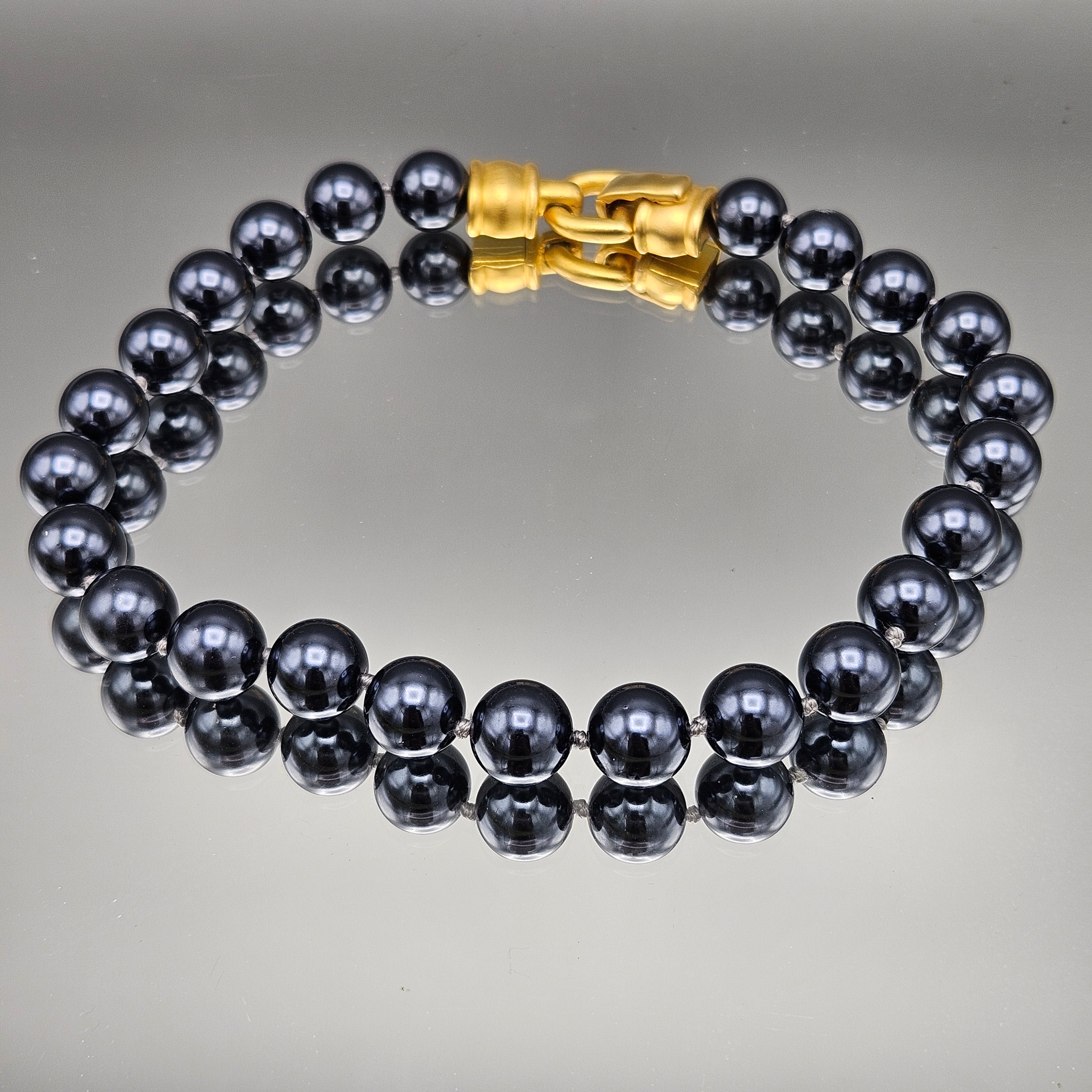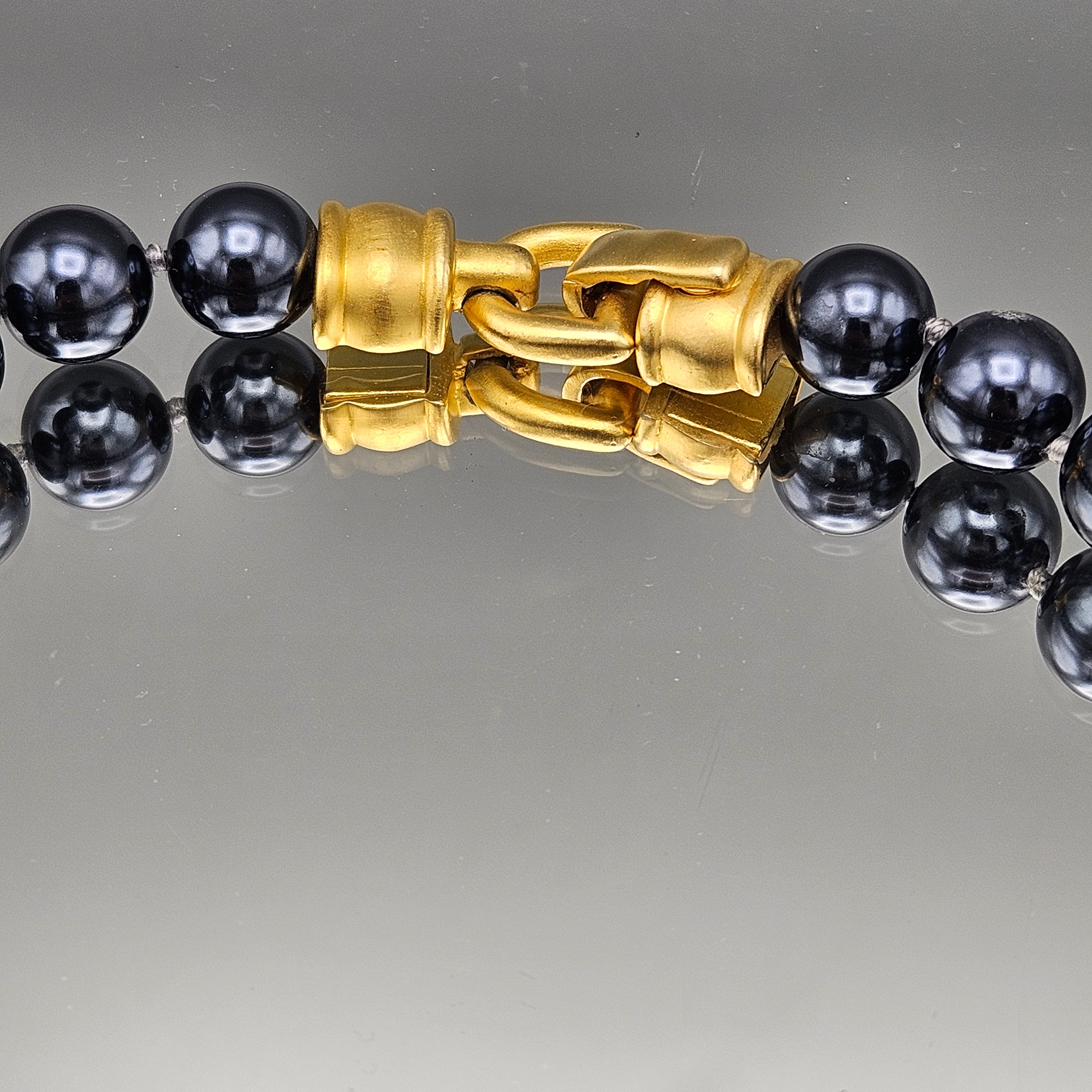 Vintage Dark Gray Beaded Necklace with Unique Clasp
