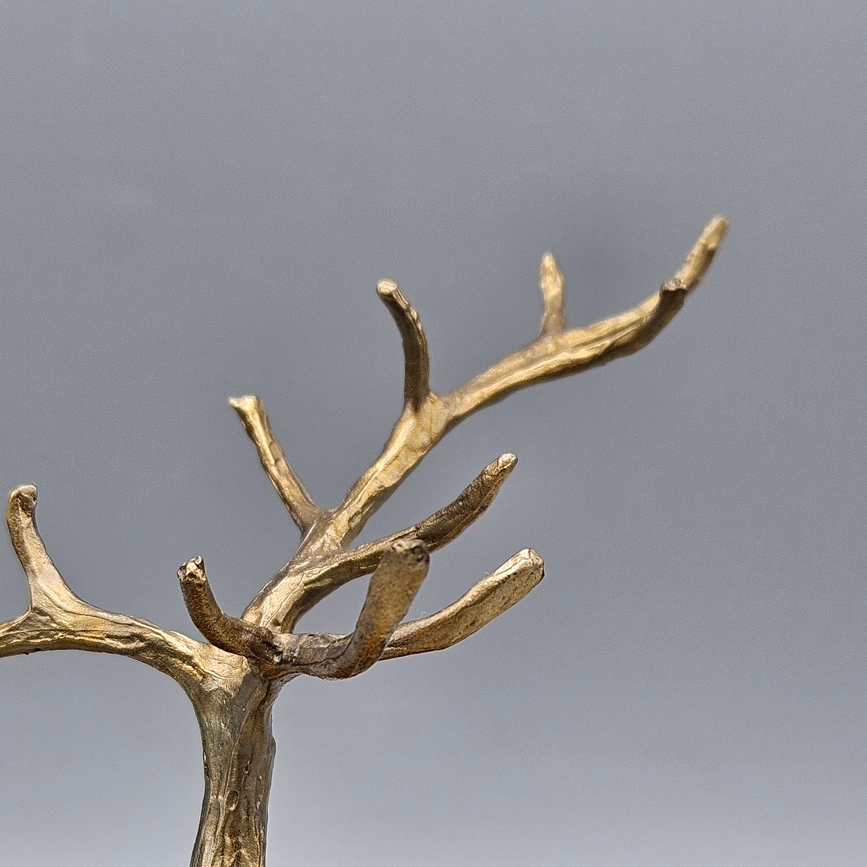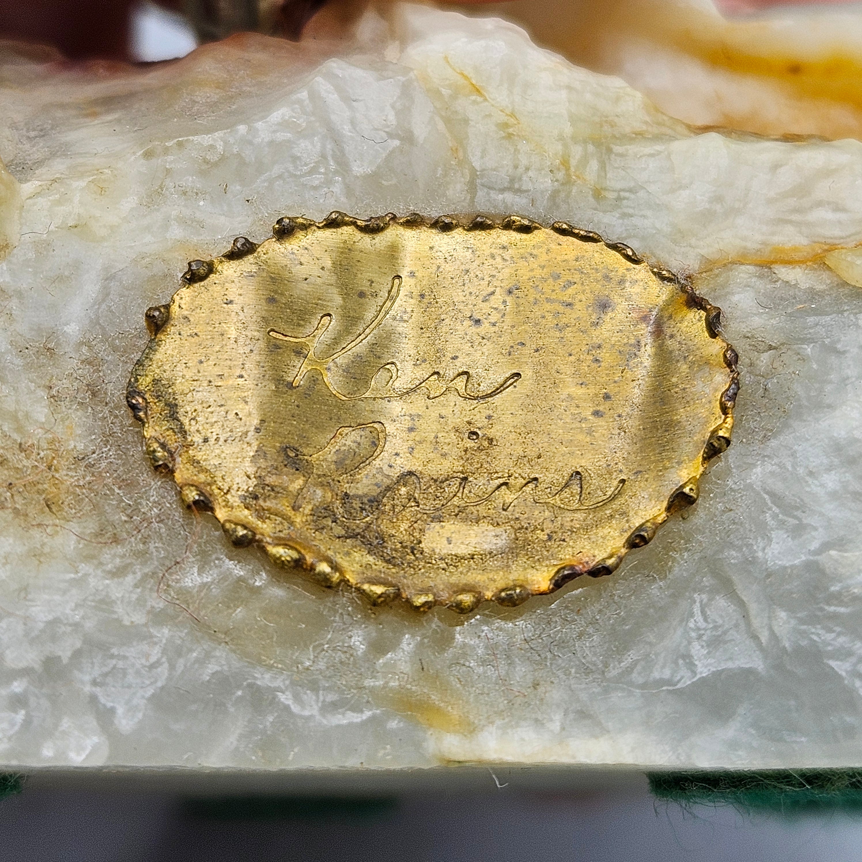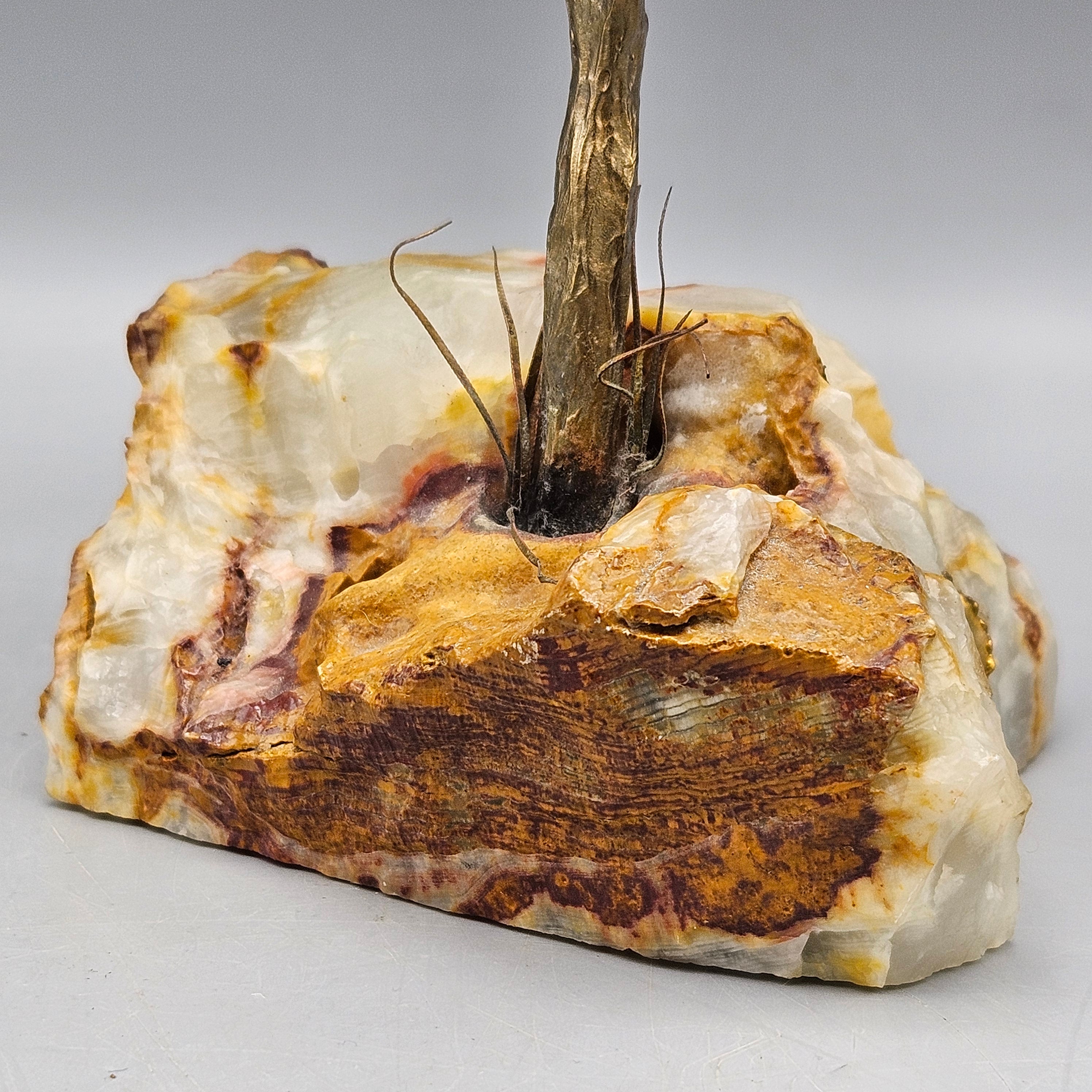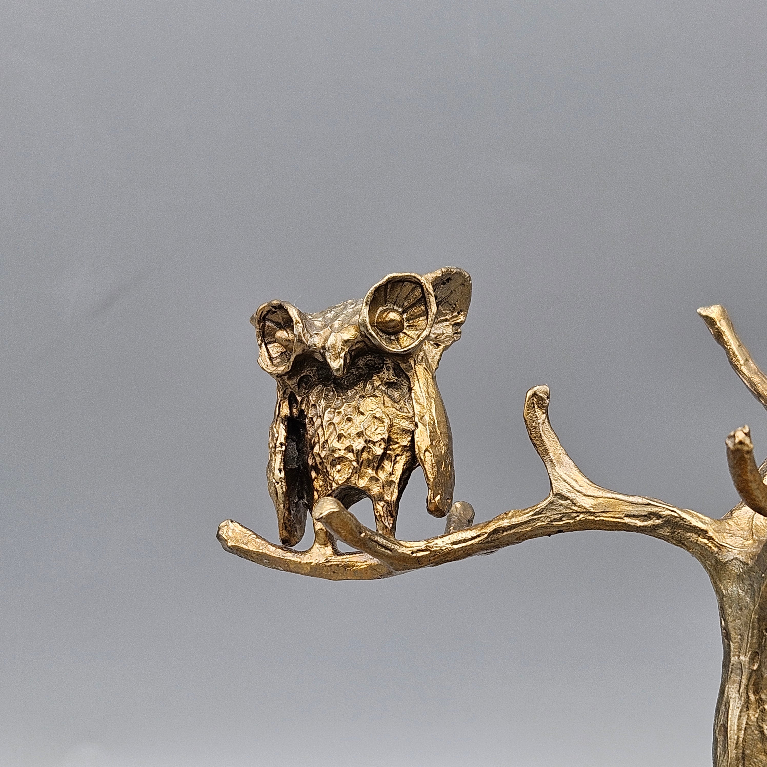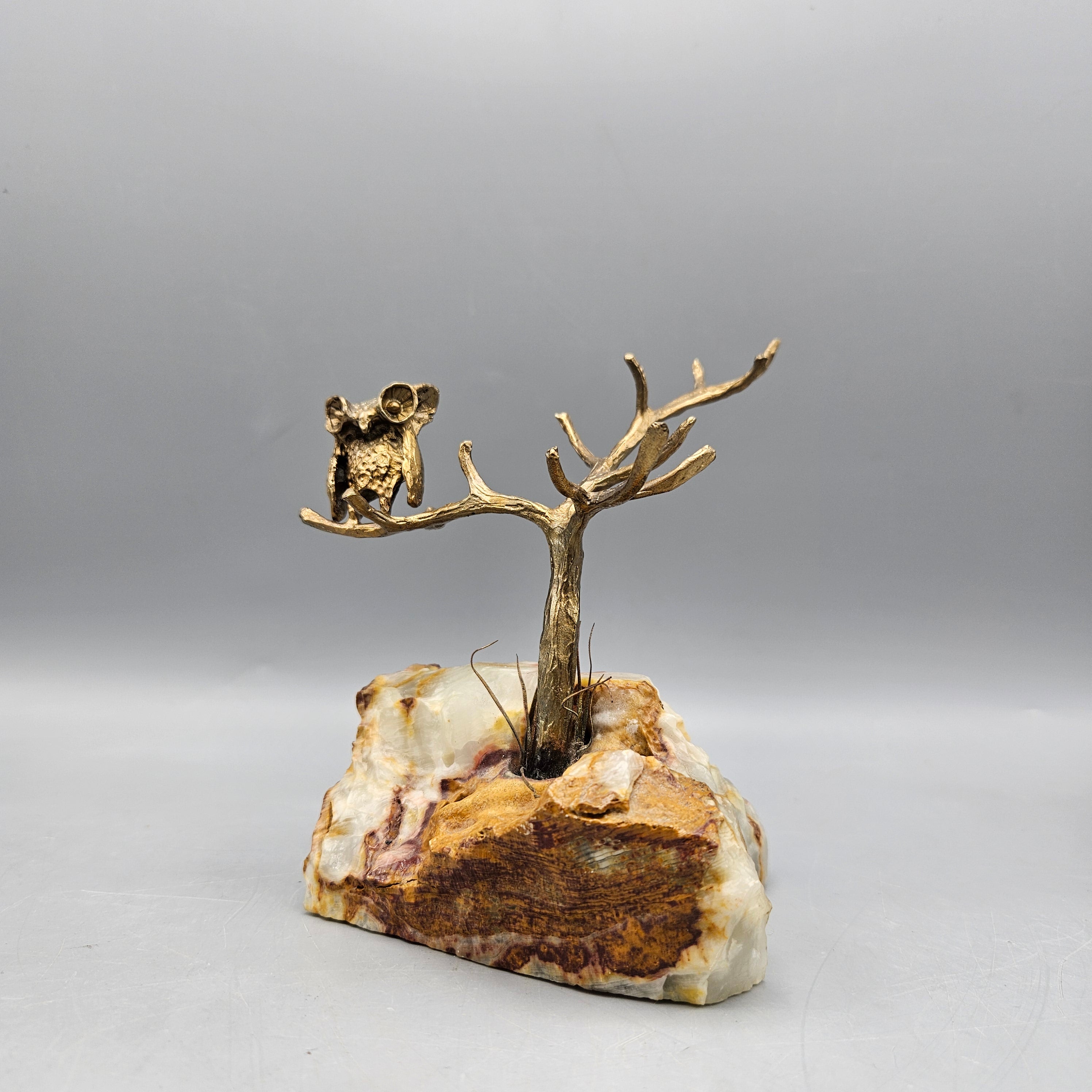 Vintage Ken Rains Owl on Tree on Onyx Base Sculpture