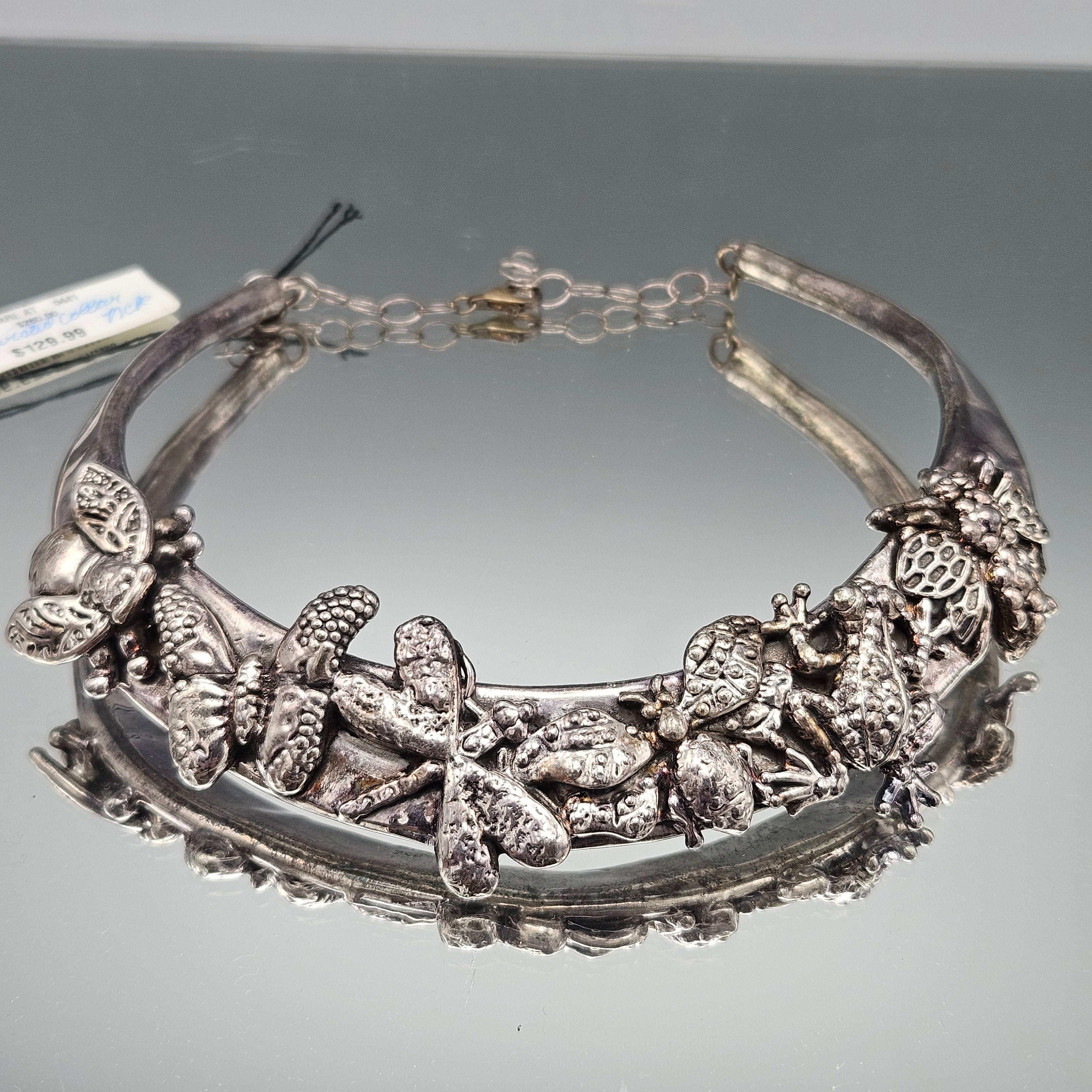 Electroformed Sterling Silver Dragonfly, Frog & Butterfly Necklace
