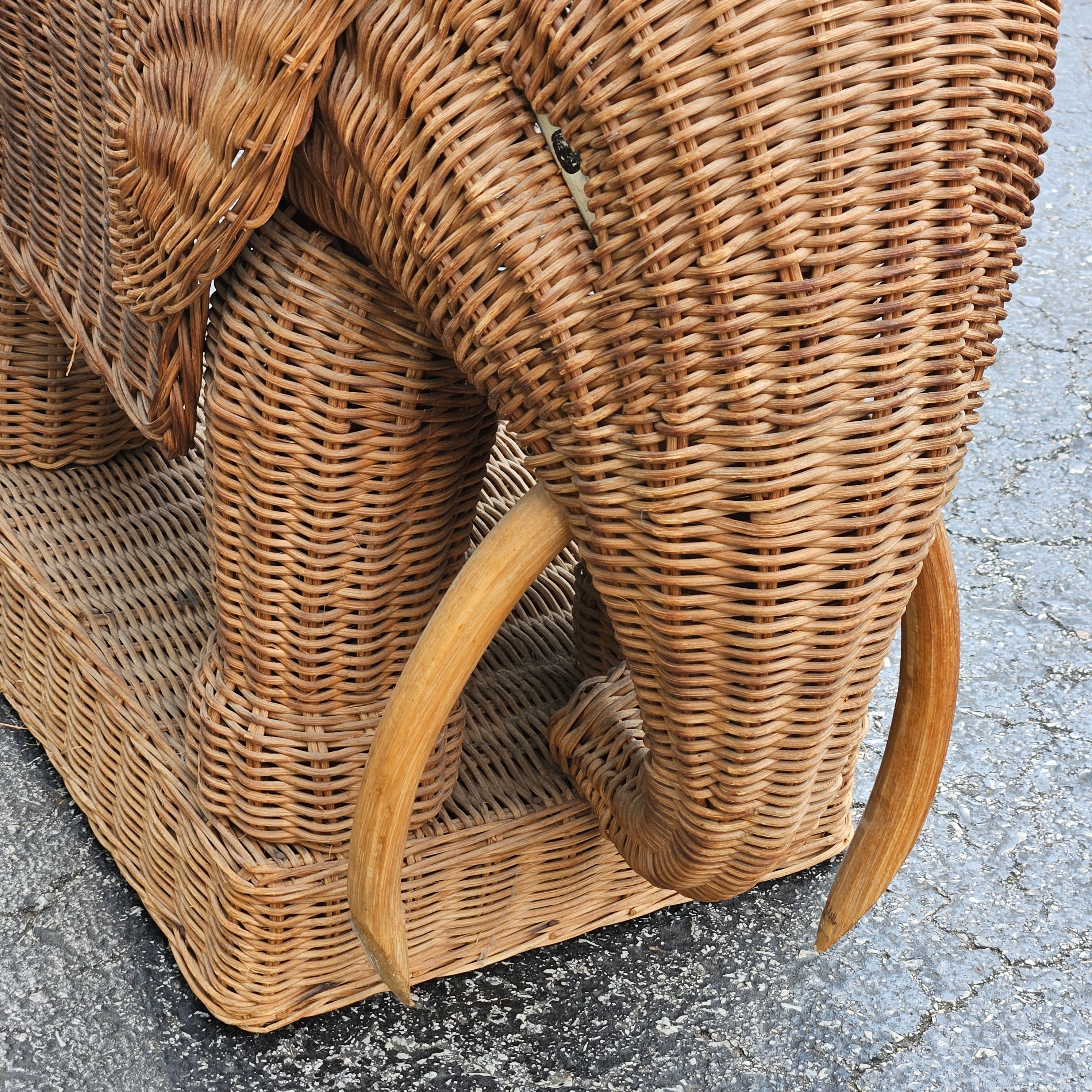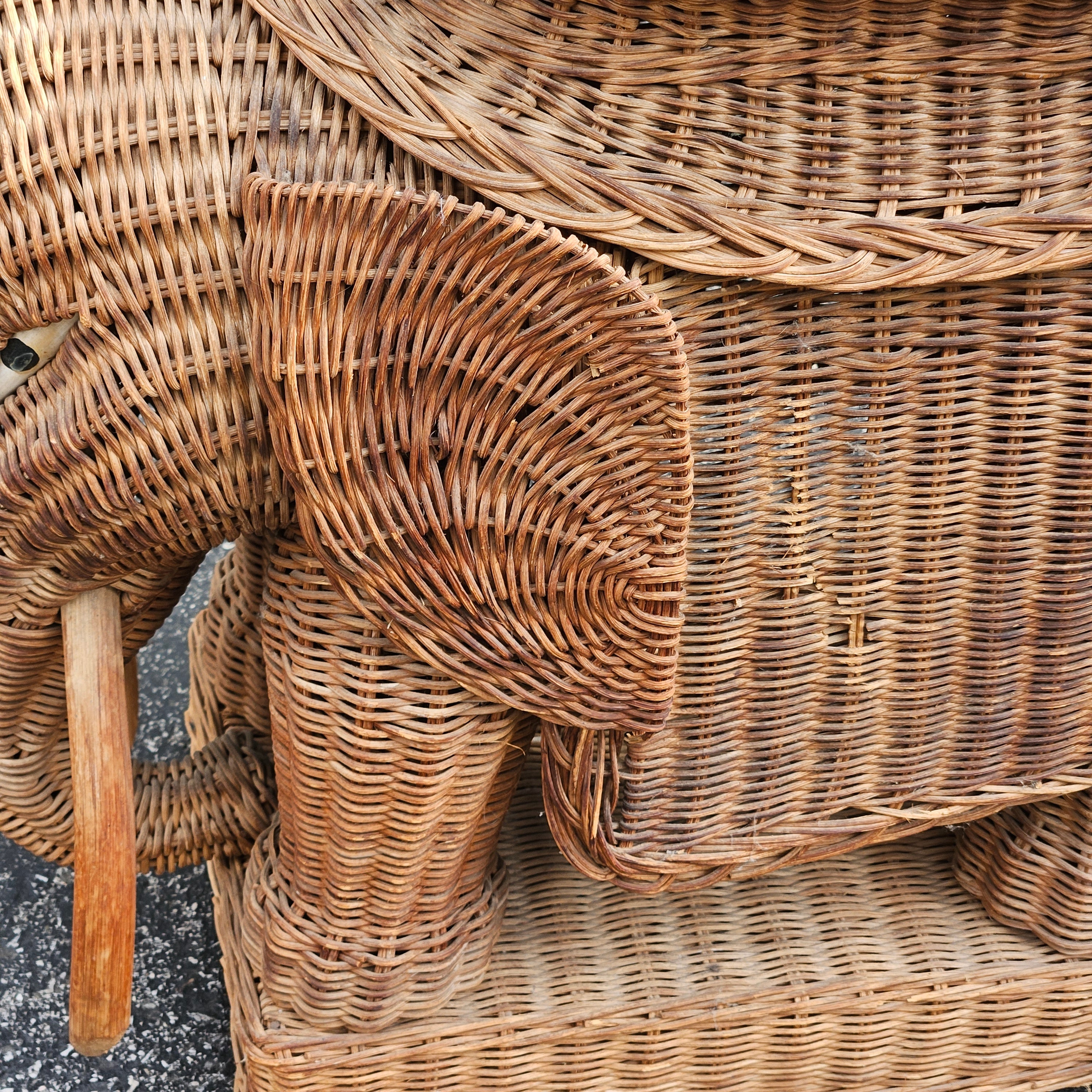 Vintage Rattan Elephant Side Table