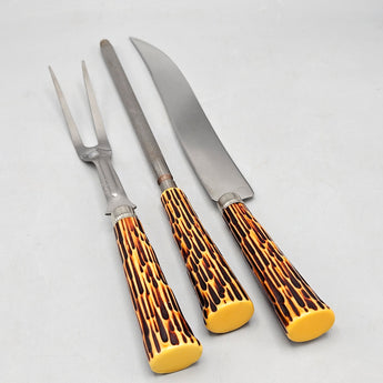 Vintage Sheffield England Stag-Handled Three-Piece Carving Set