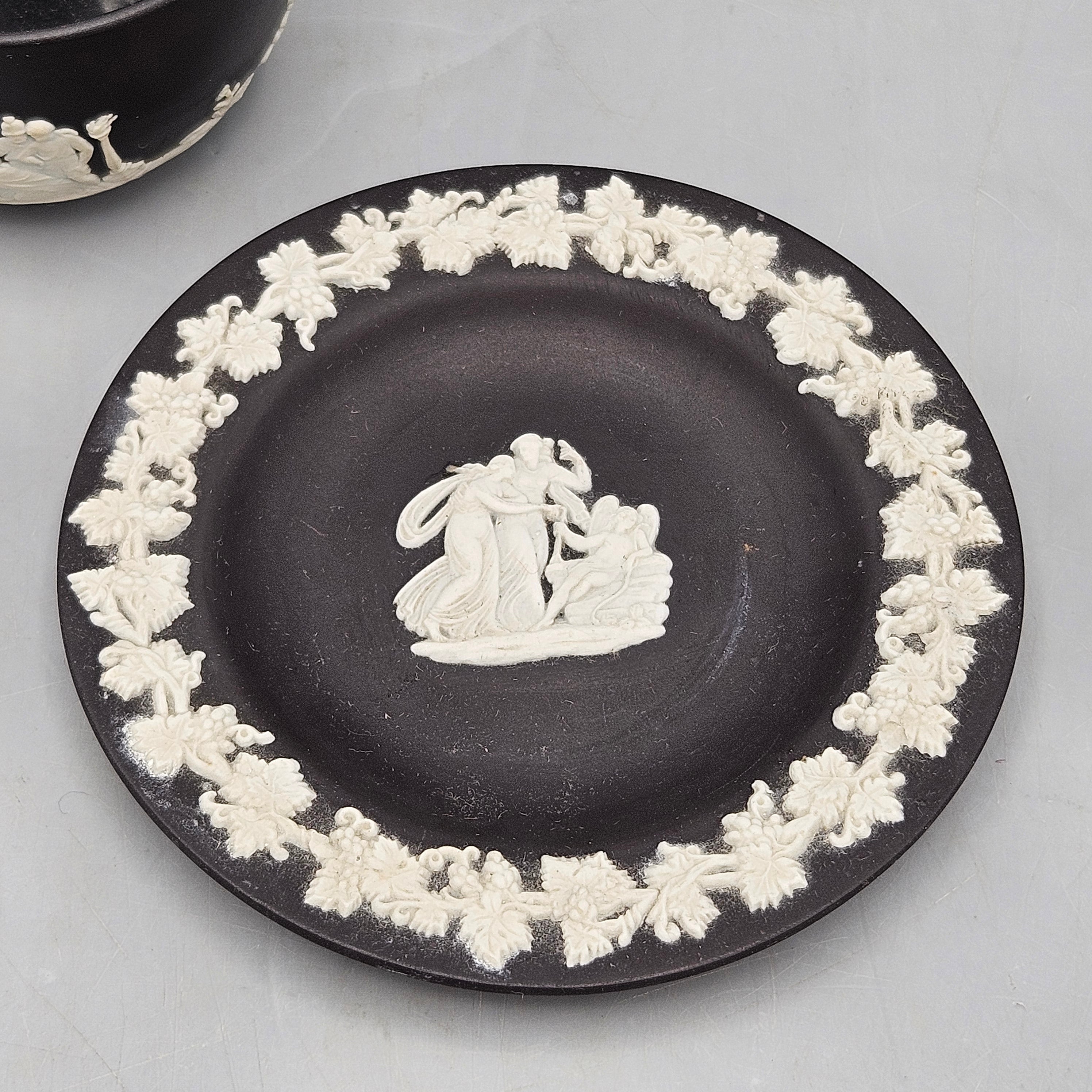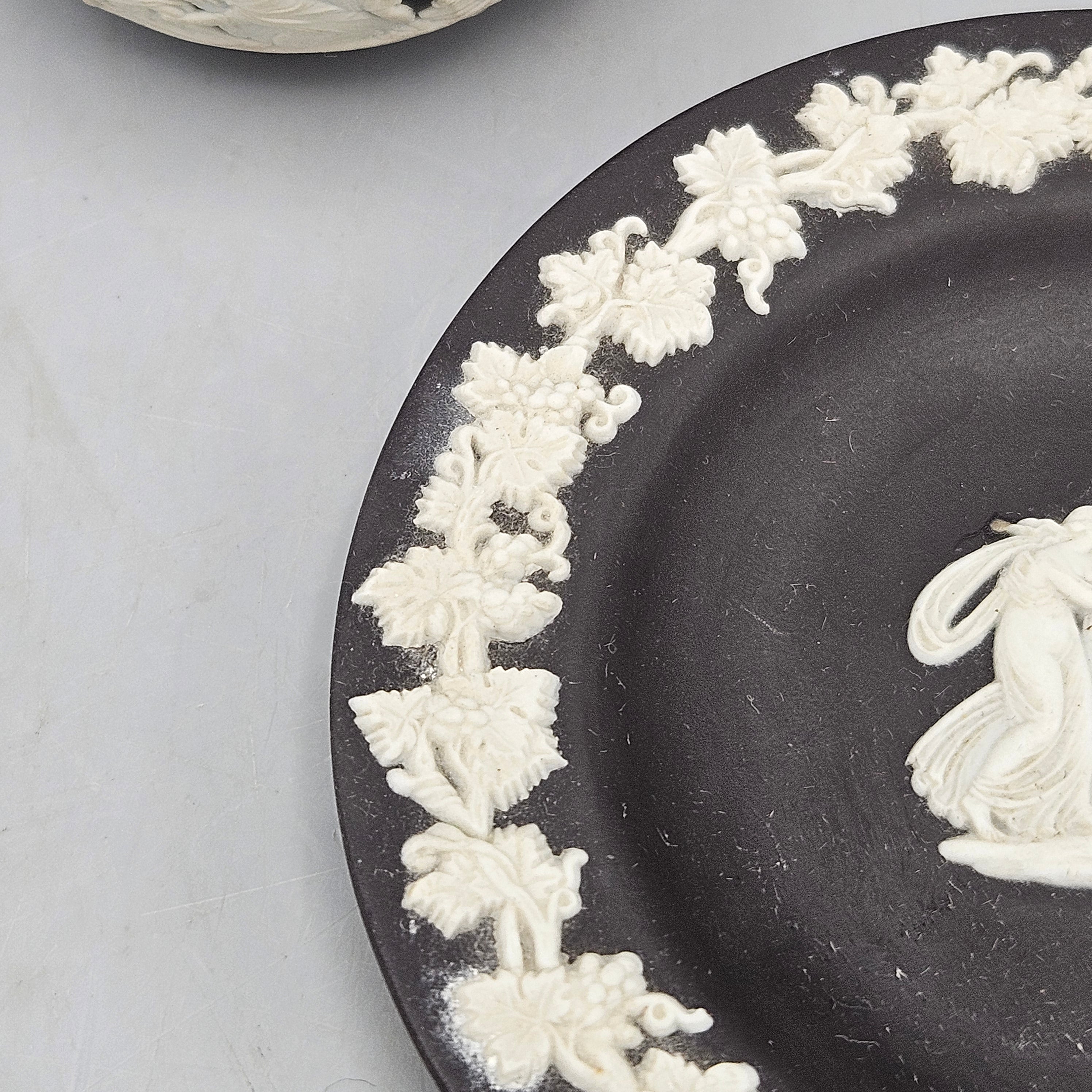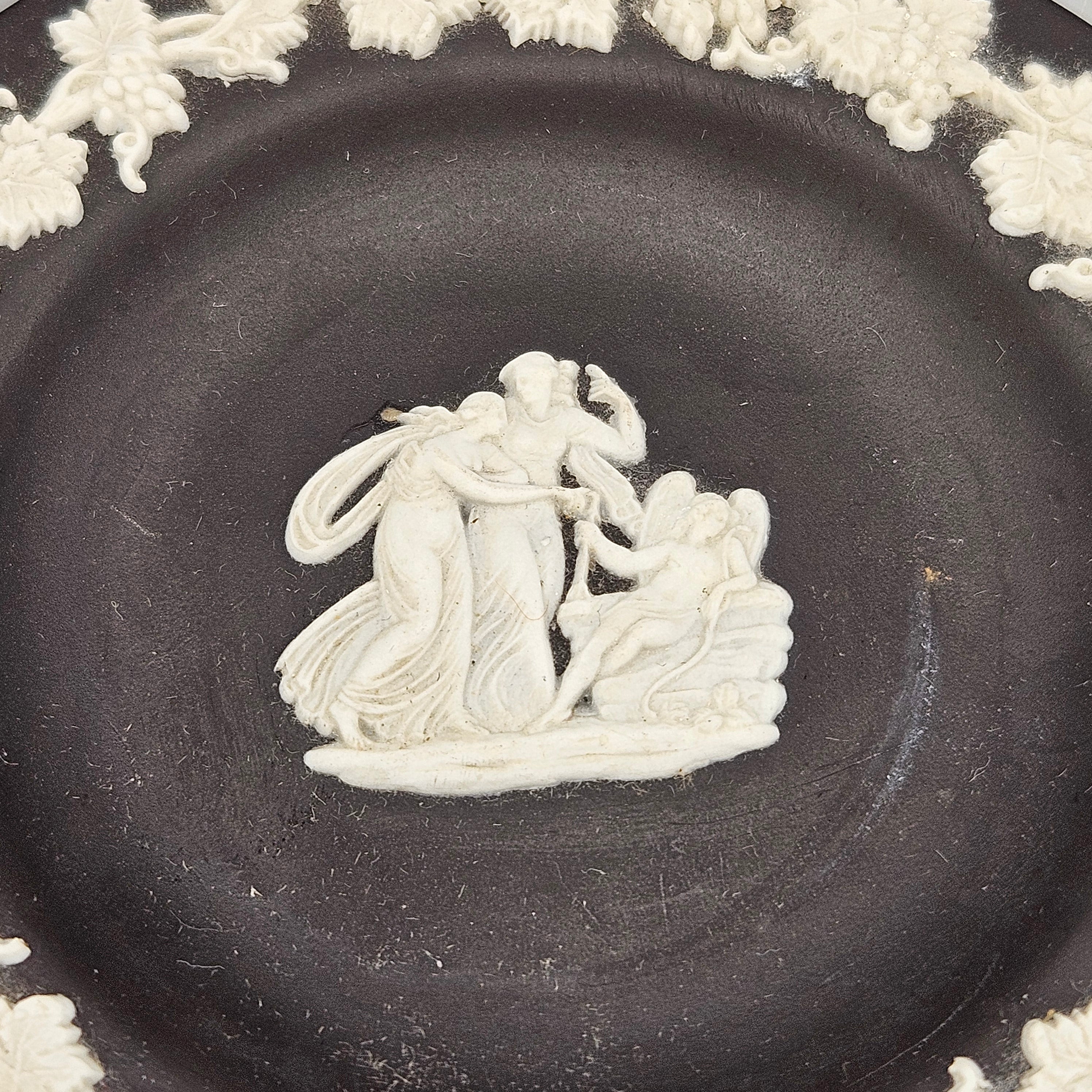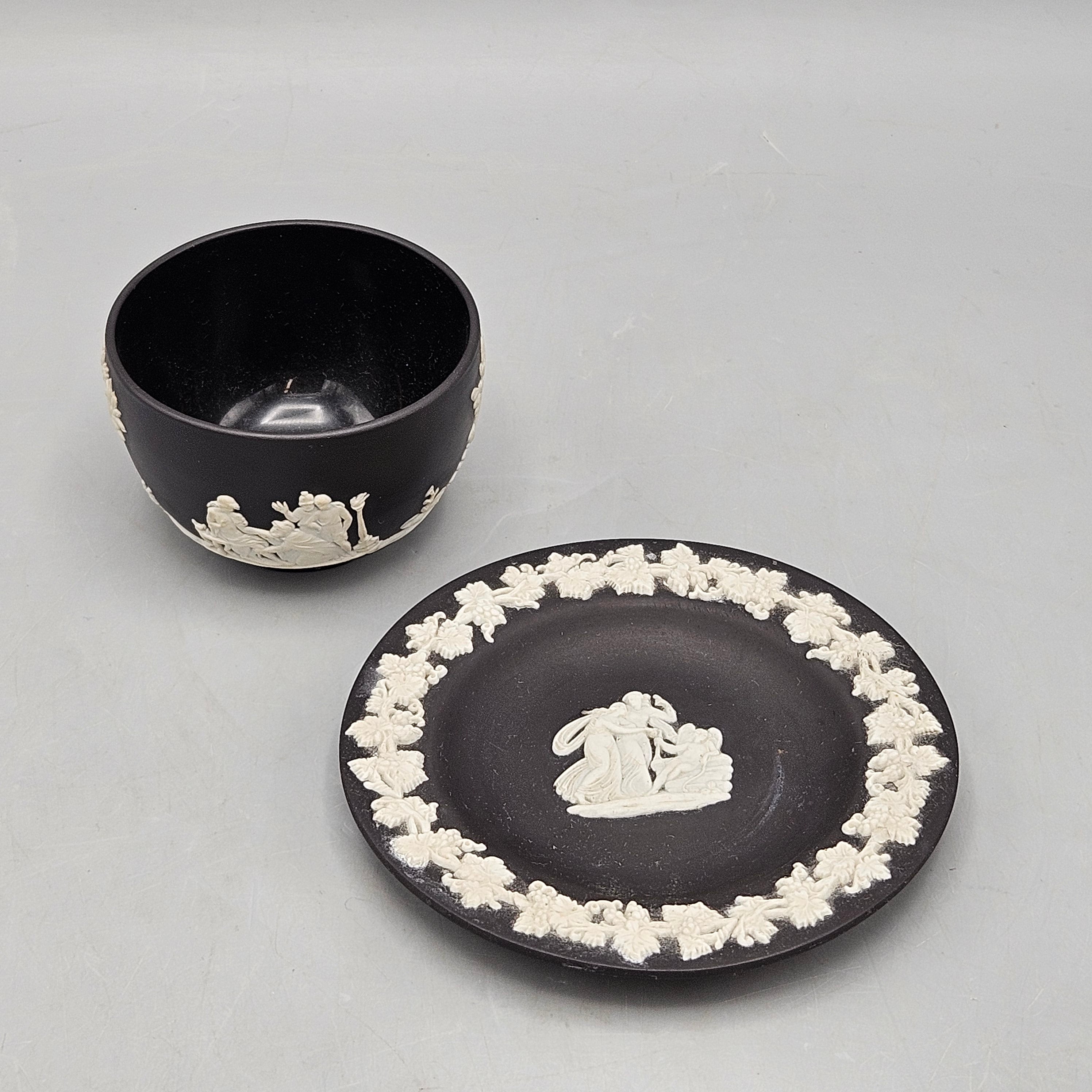 Vintage Wedgwood Black Jasperware Open Sugar Bowl and Sweet Dish