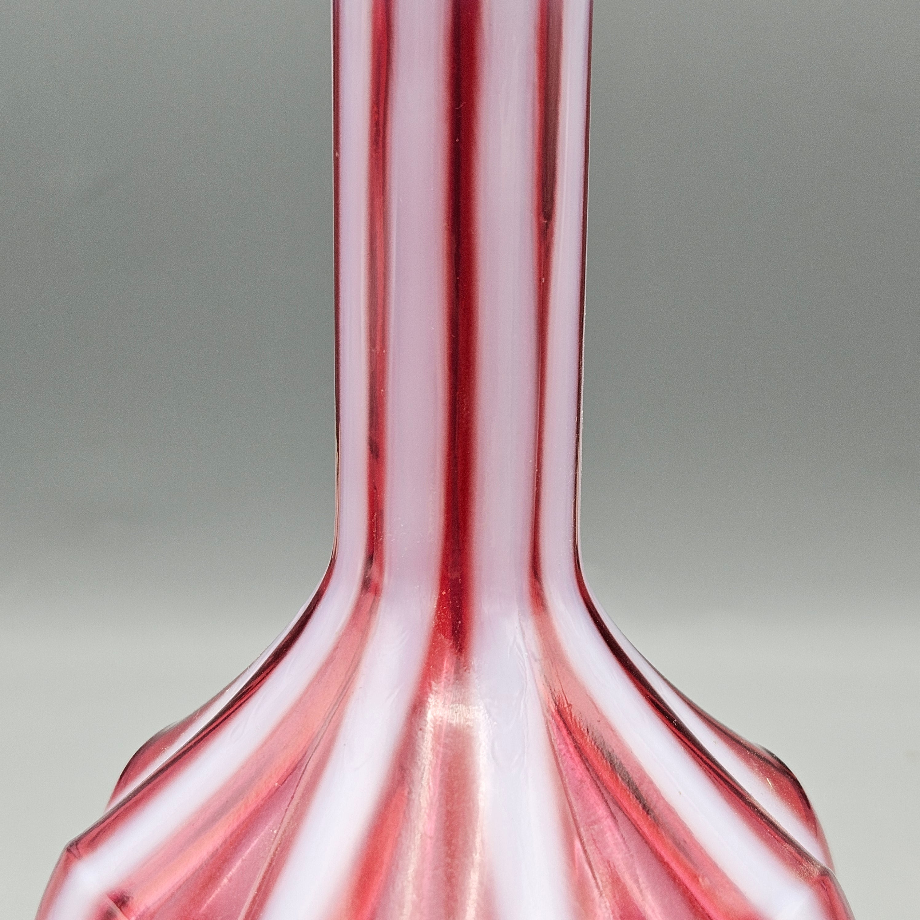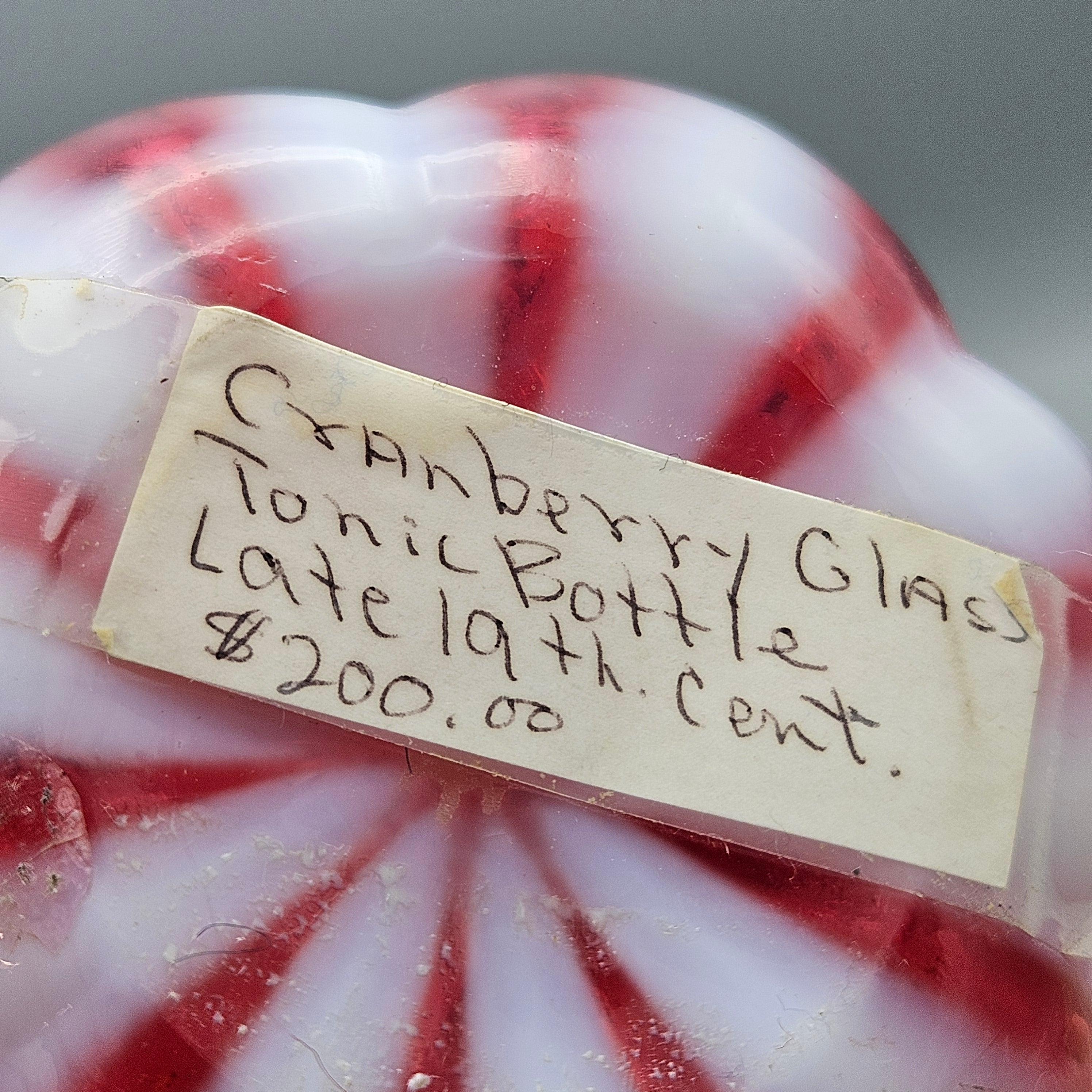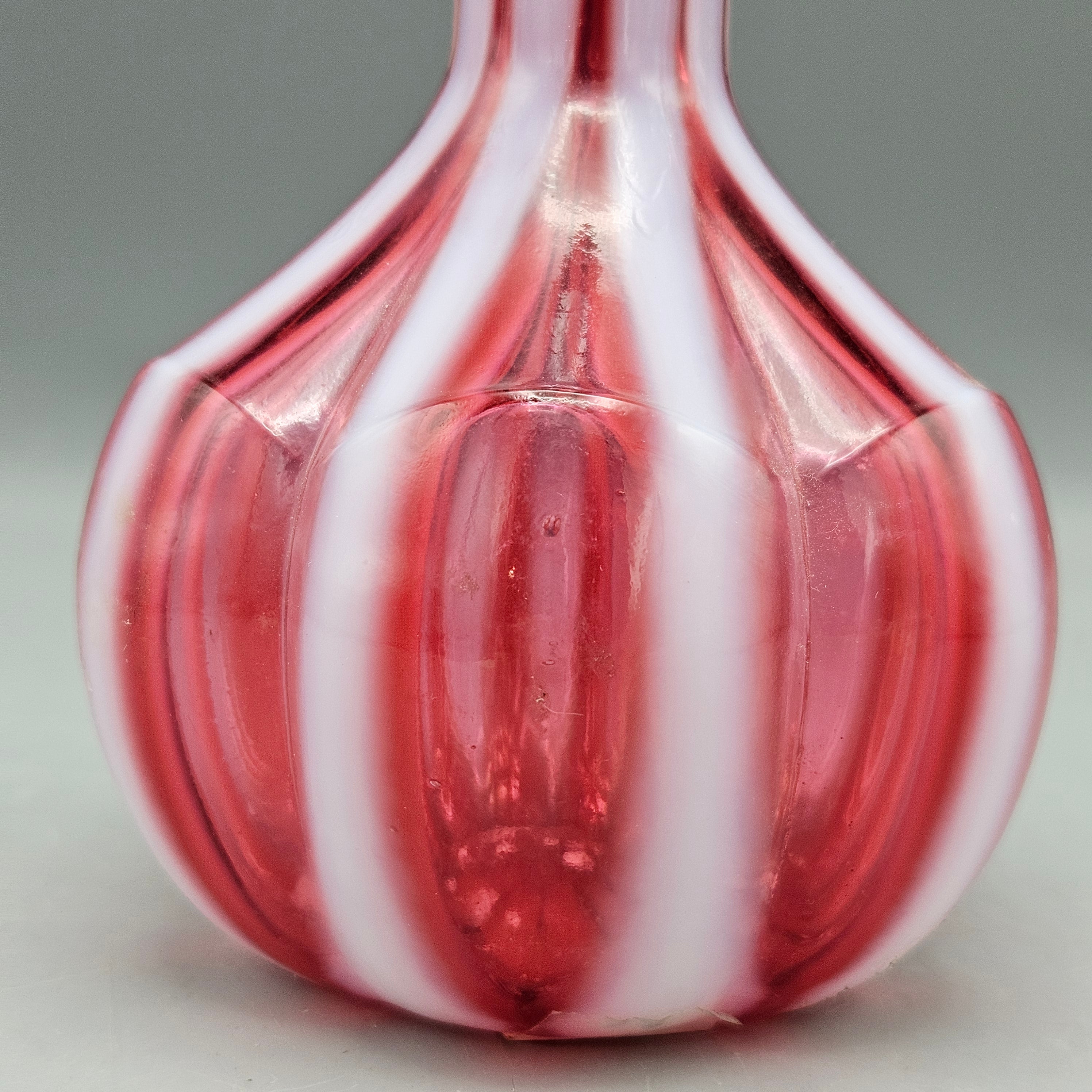 Antique Cranberry Opalescent Glass Barber Bottle Red and White Stripes