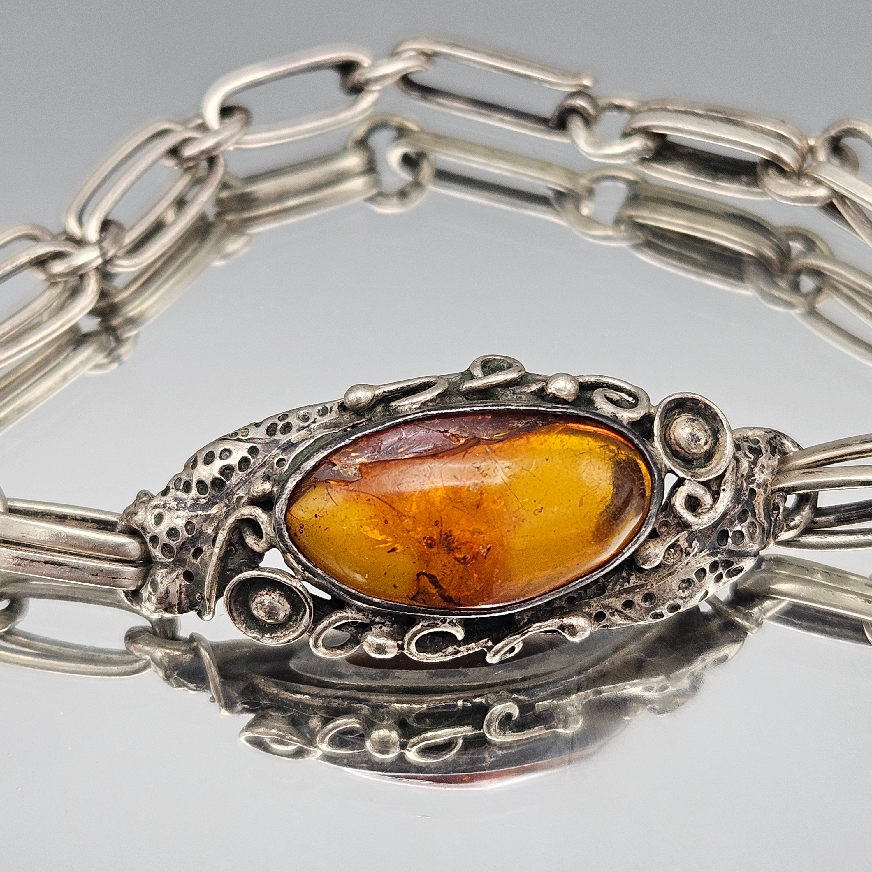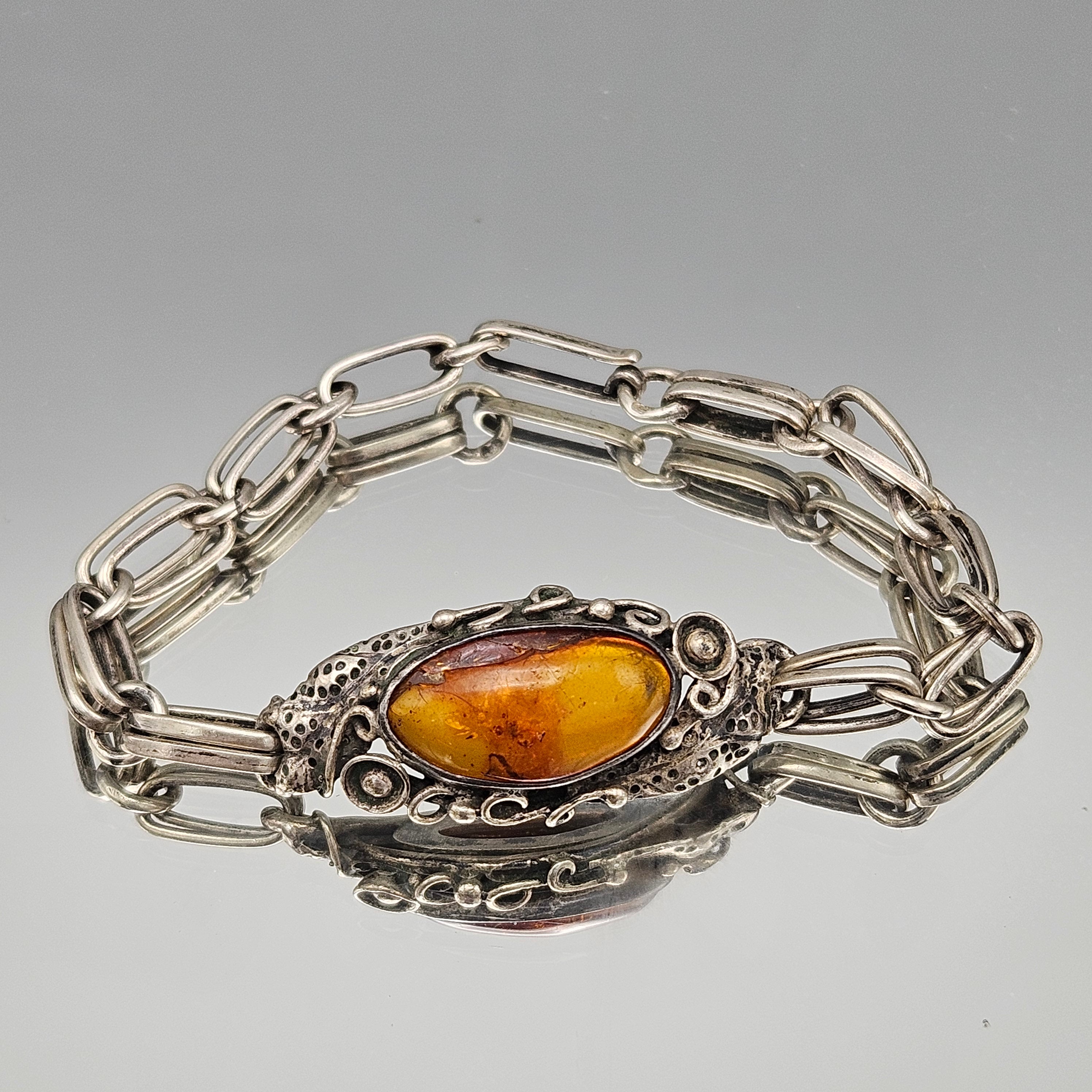 Antique Sterling Silver Bracelet with Baltic Amber Stone
