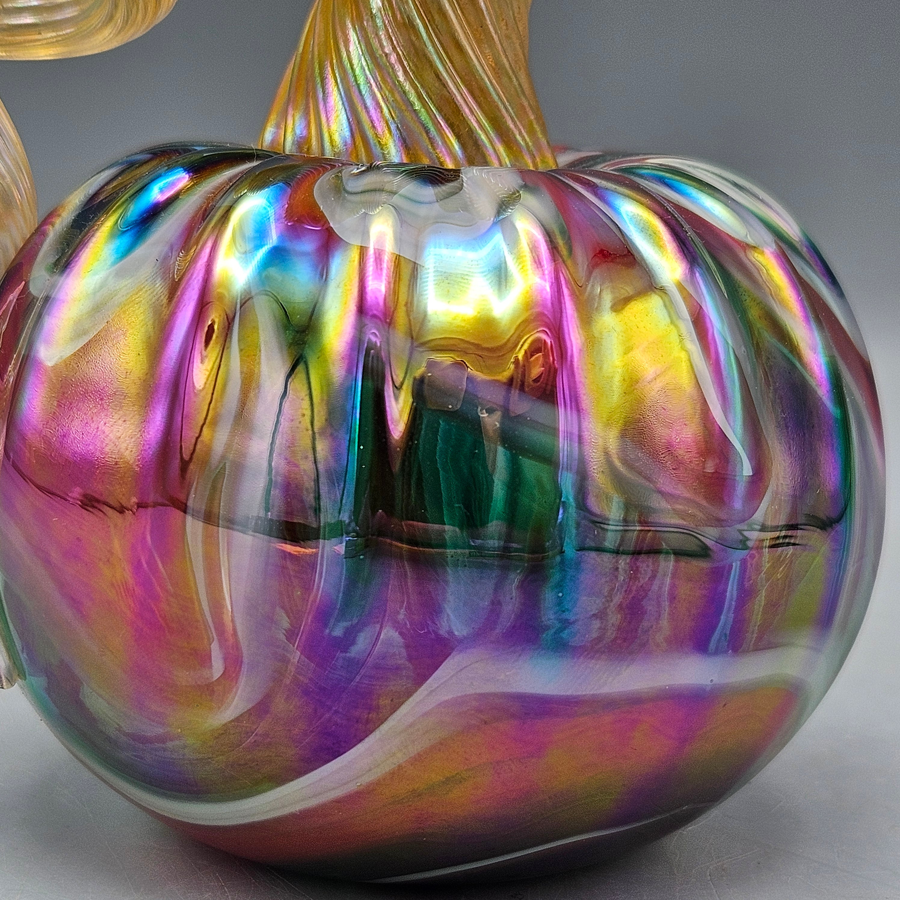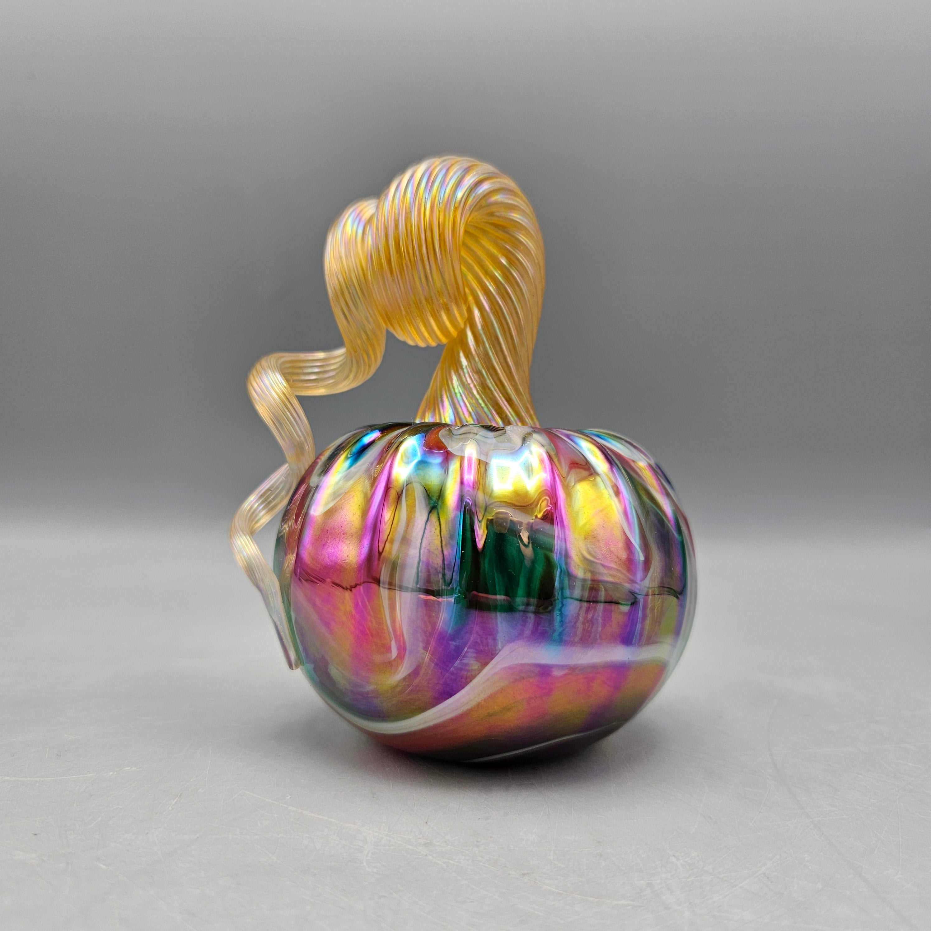 Signed Kevin Fulton Glass Hand Blown Pumpkin - Iridescent