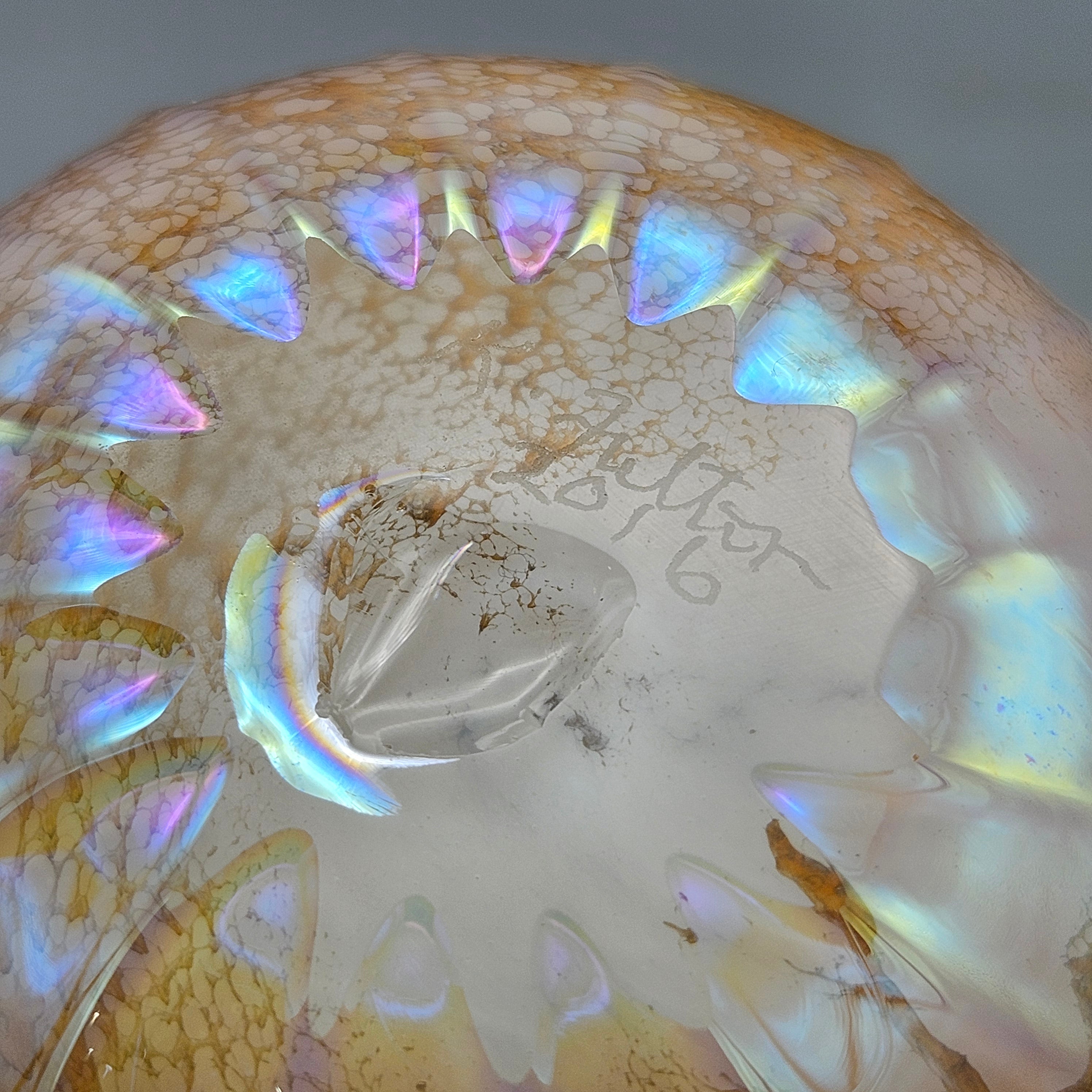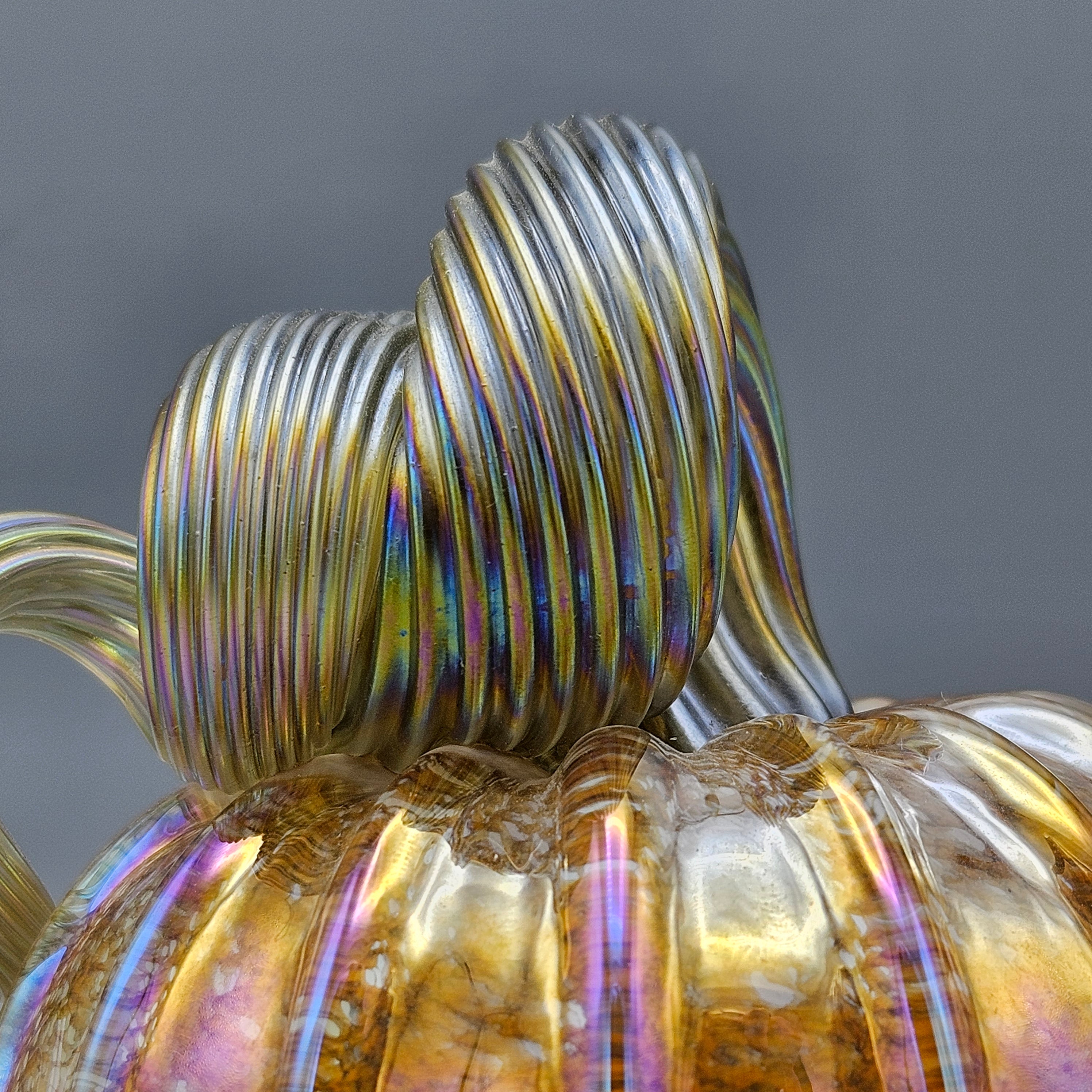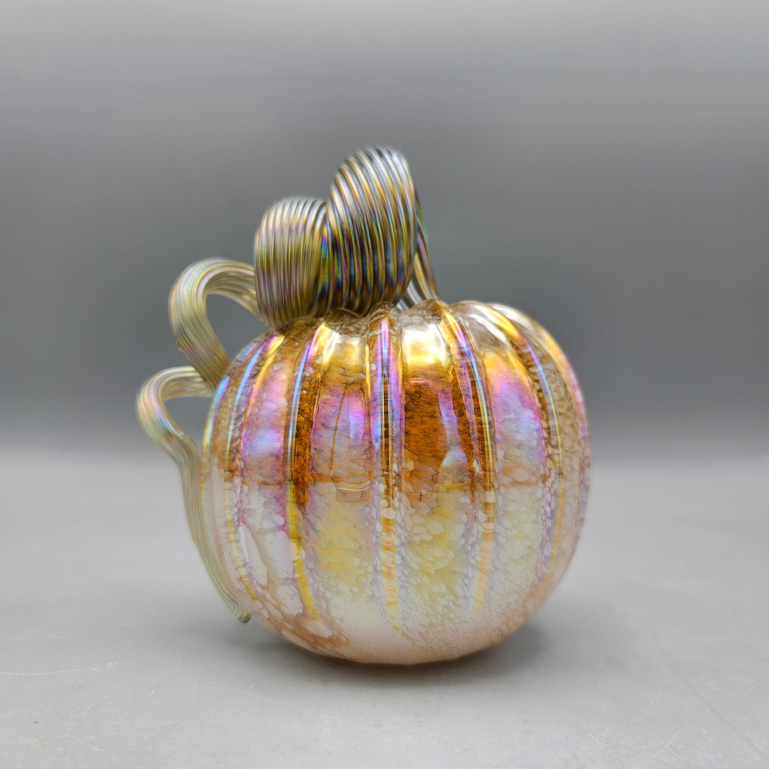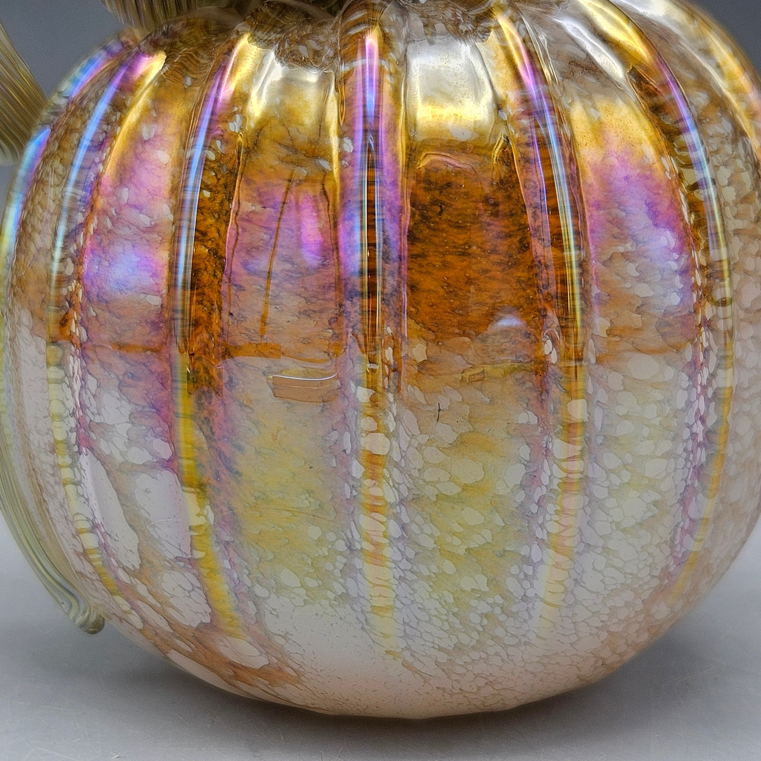 Signed Kevin Fulton Glass Hand Blown Pumpkin - Iridescent
