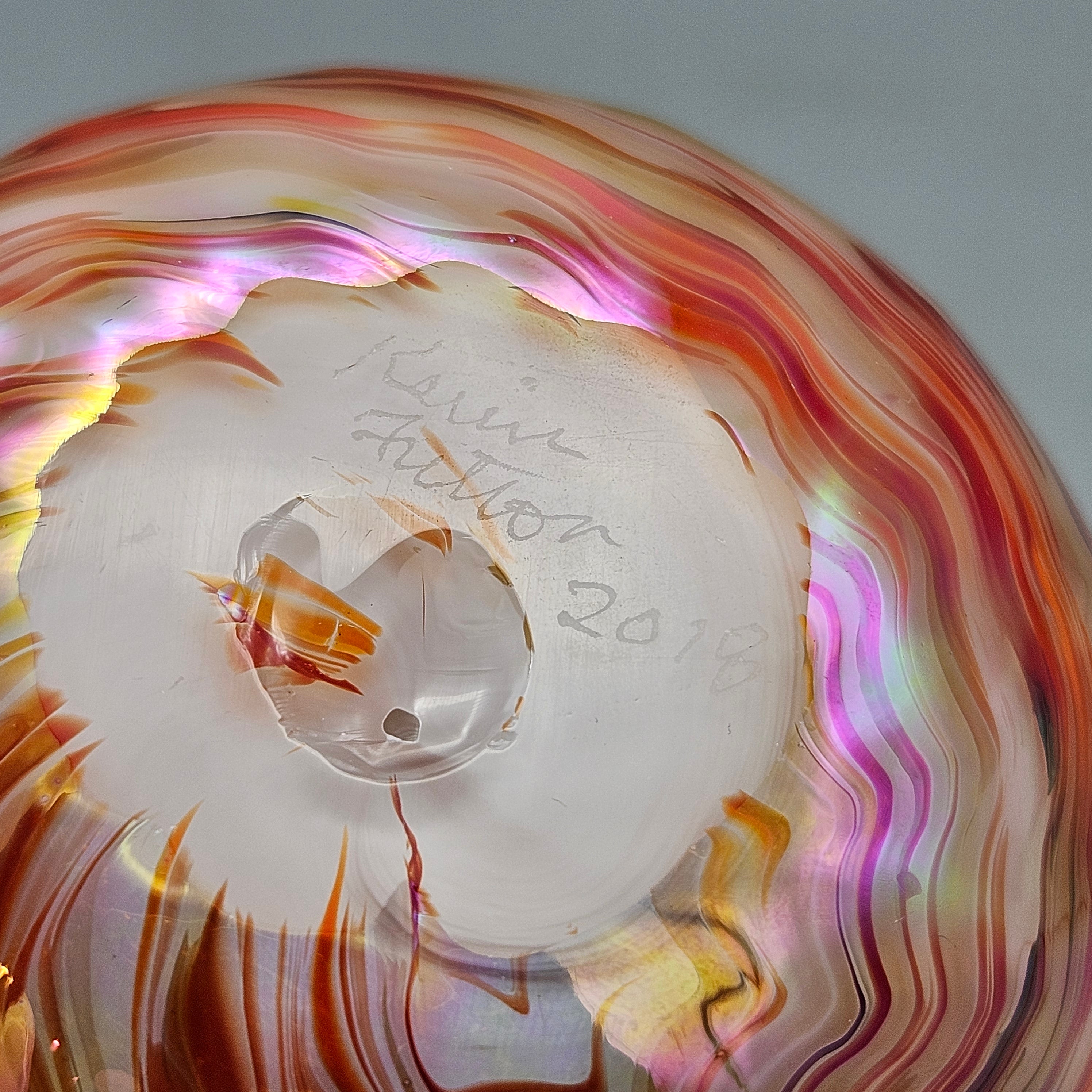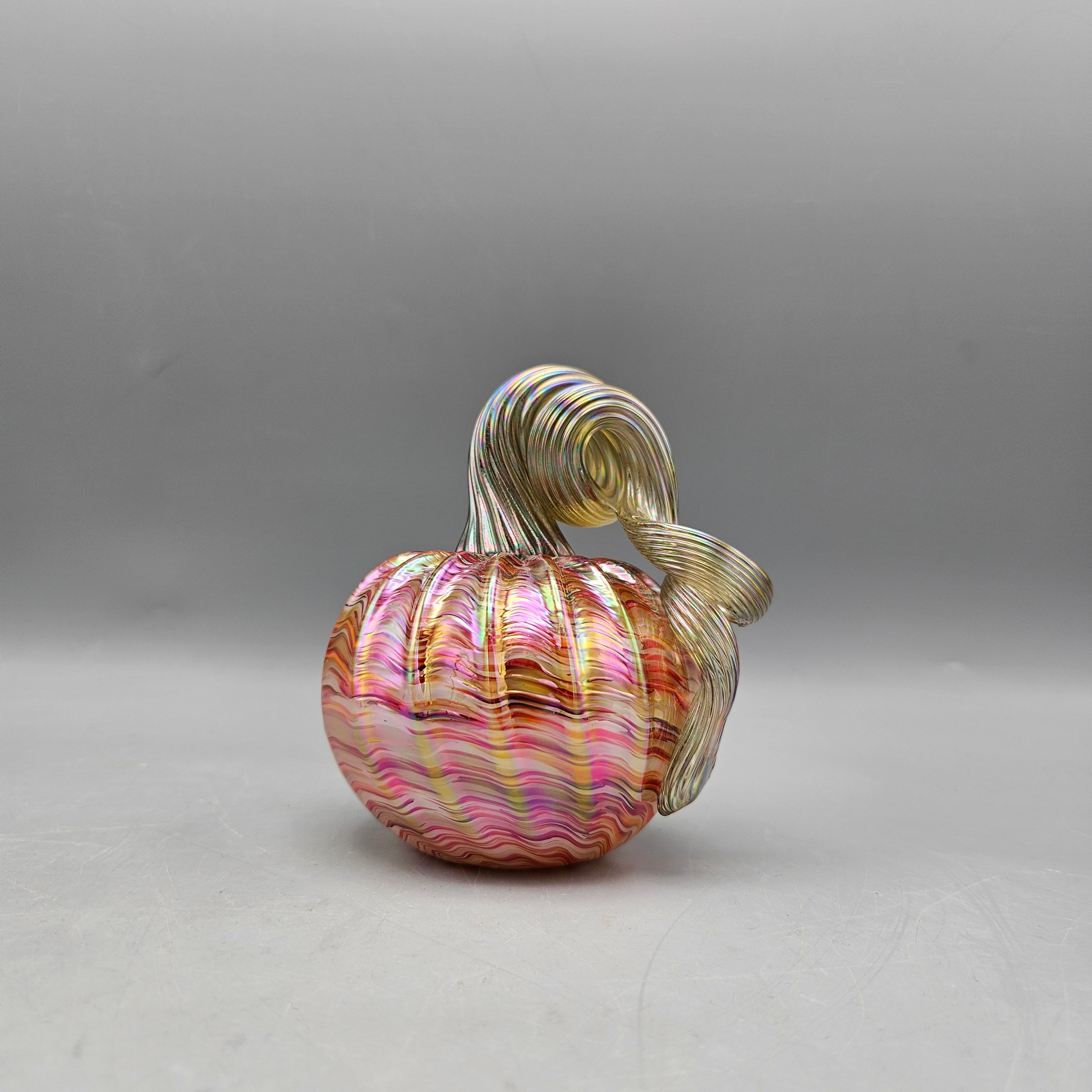 Signed Kevin Fulton Glass Hand Blown Pumpkin - Pink Iridescent