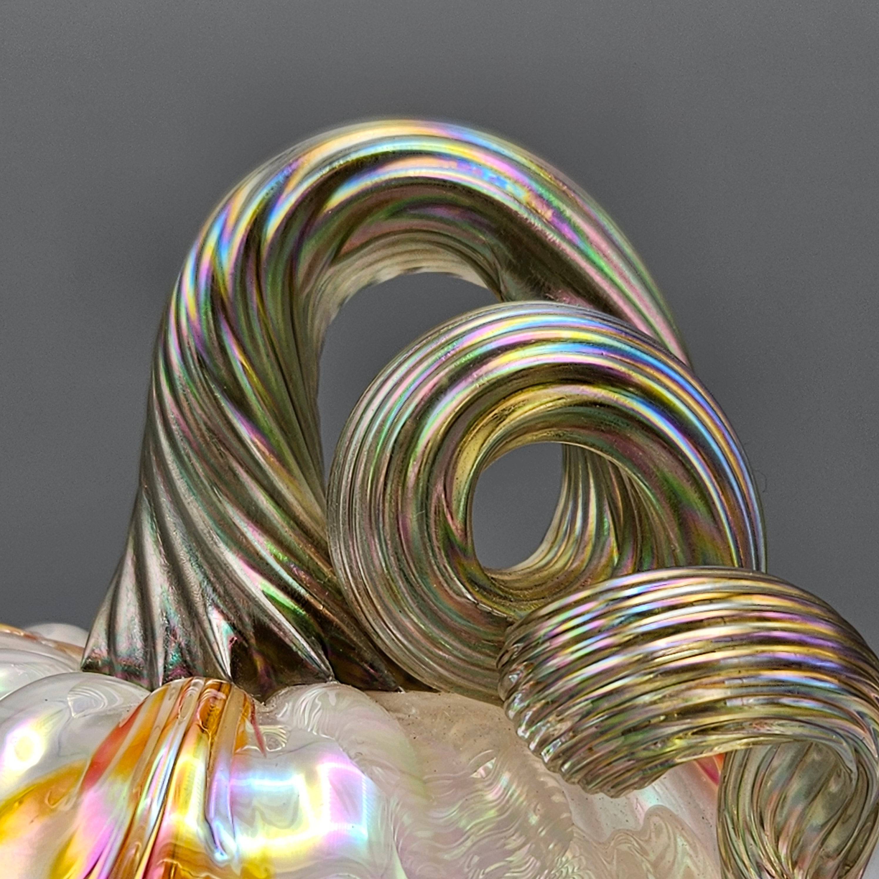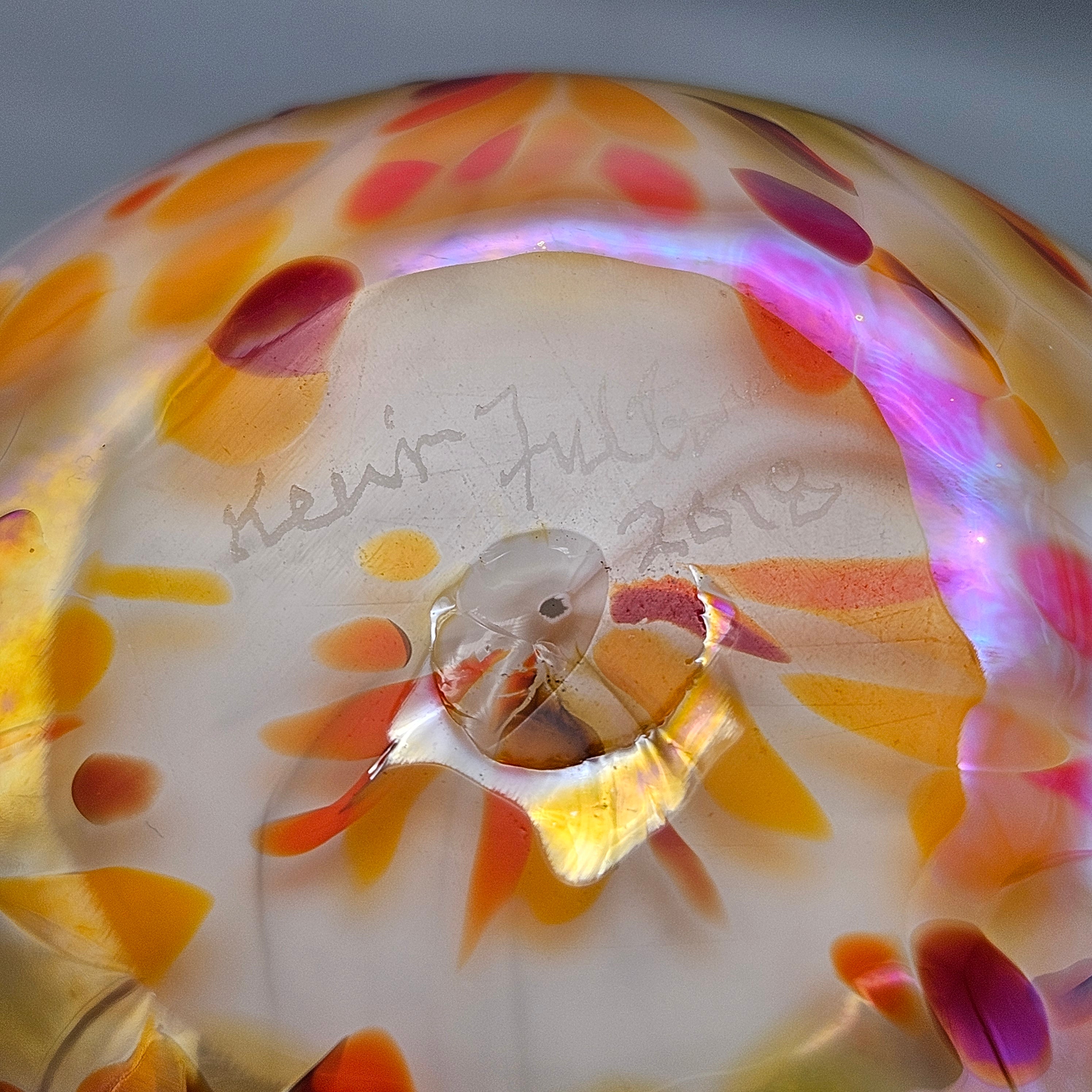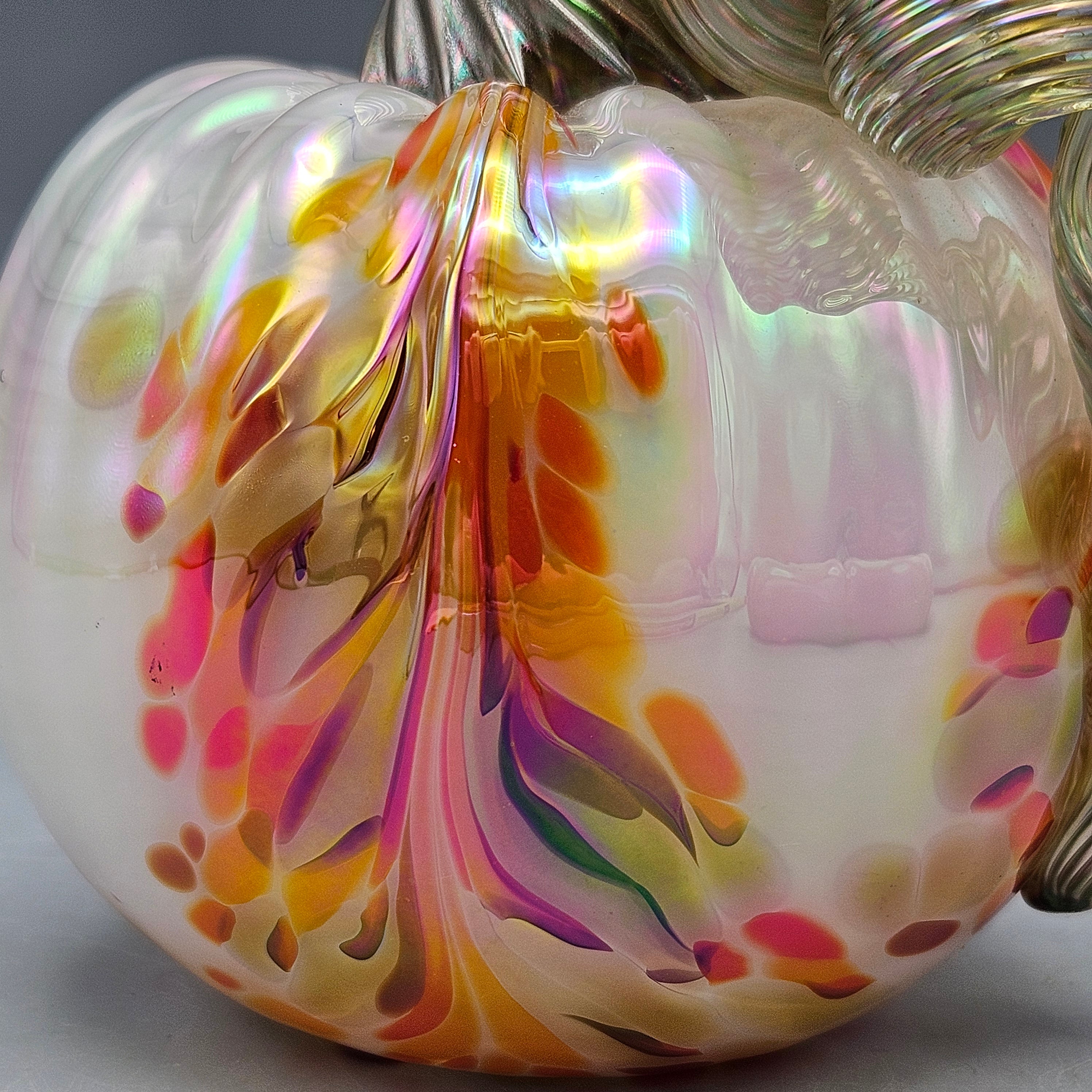 Signed Kevin Fulton Glass Hand Blown Pumpkin - White Iridescent