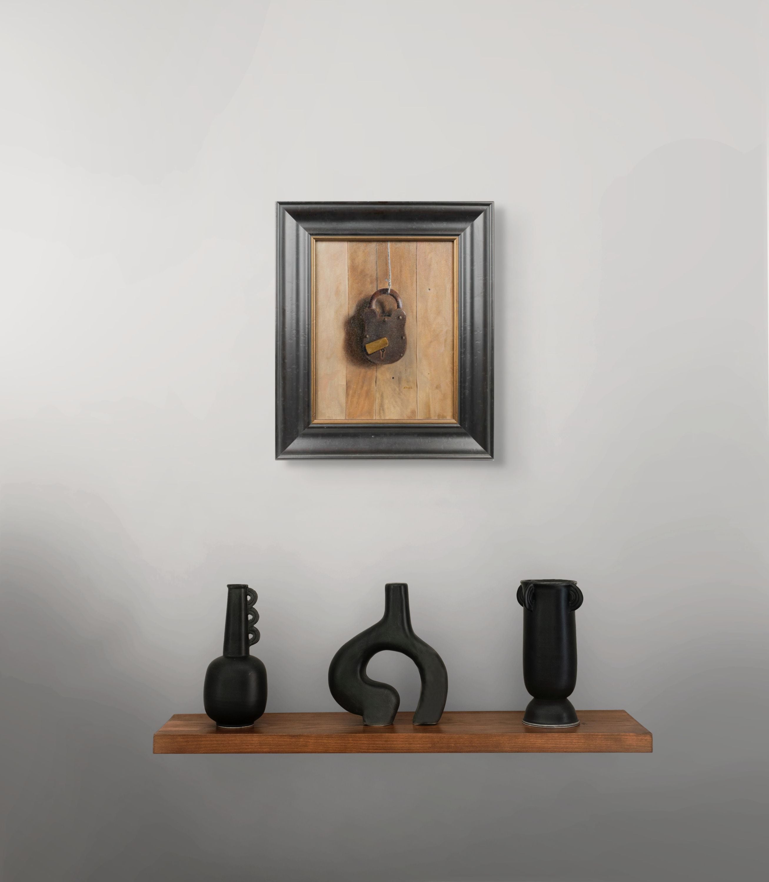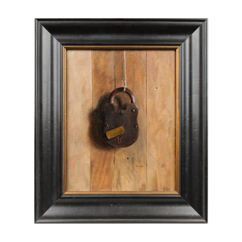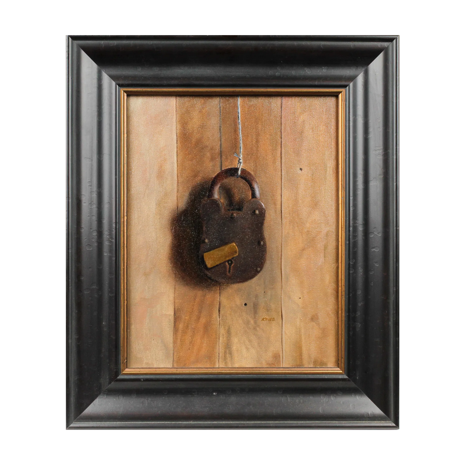 Katharine Krieg (American, B. 1970) The Bronze Lock, Tromp L'oil Oil on Canvas Board Painting