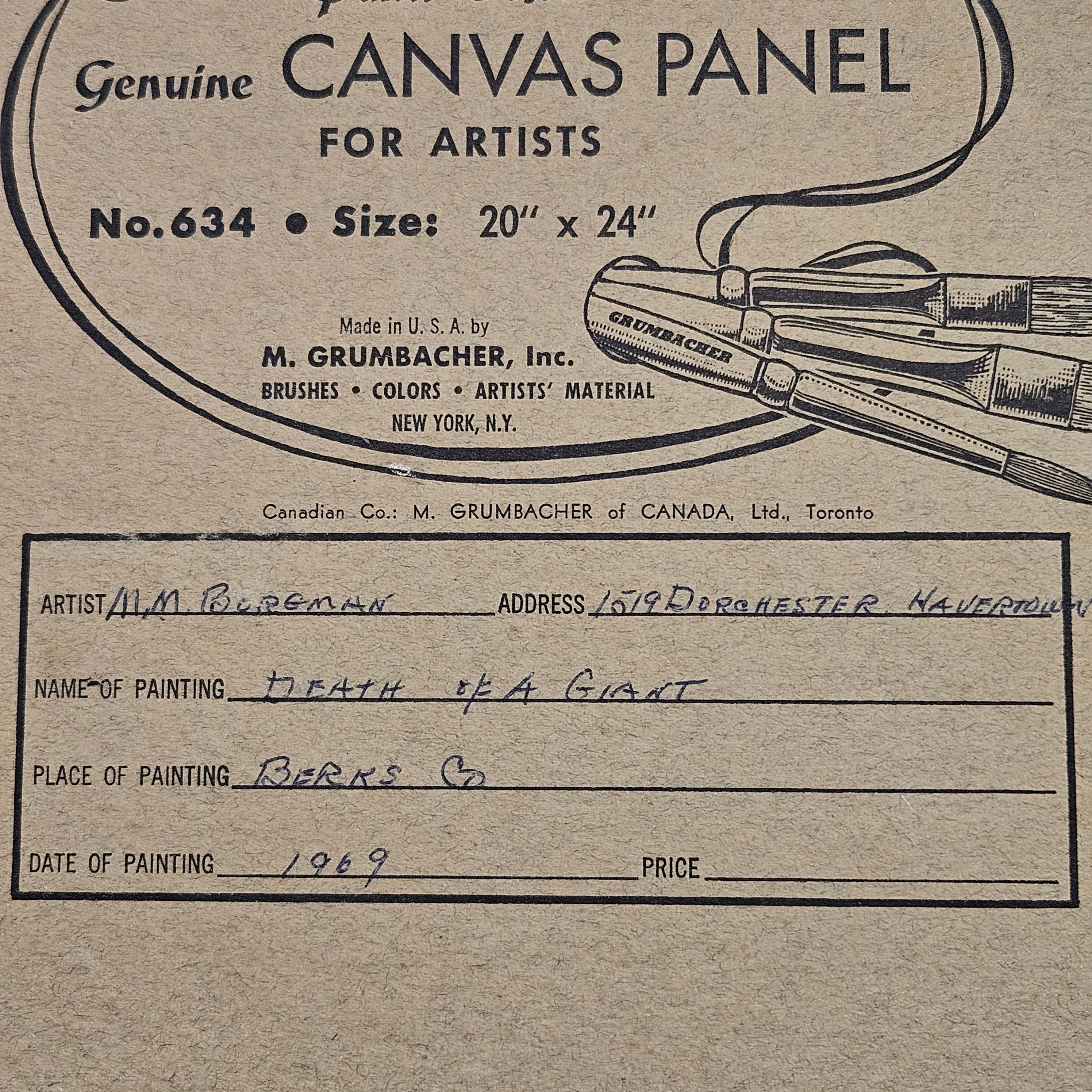 MM Borgman "Death of a Giant" Oil on Board Landscape Painting