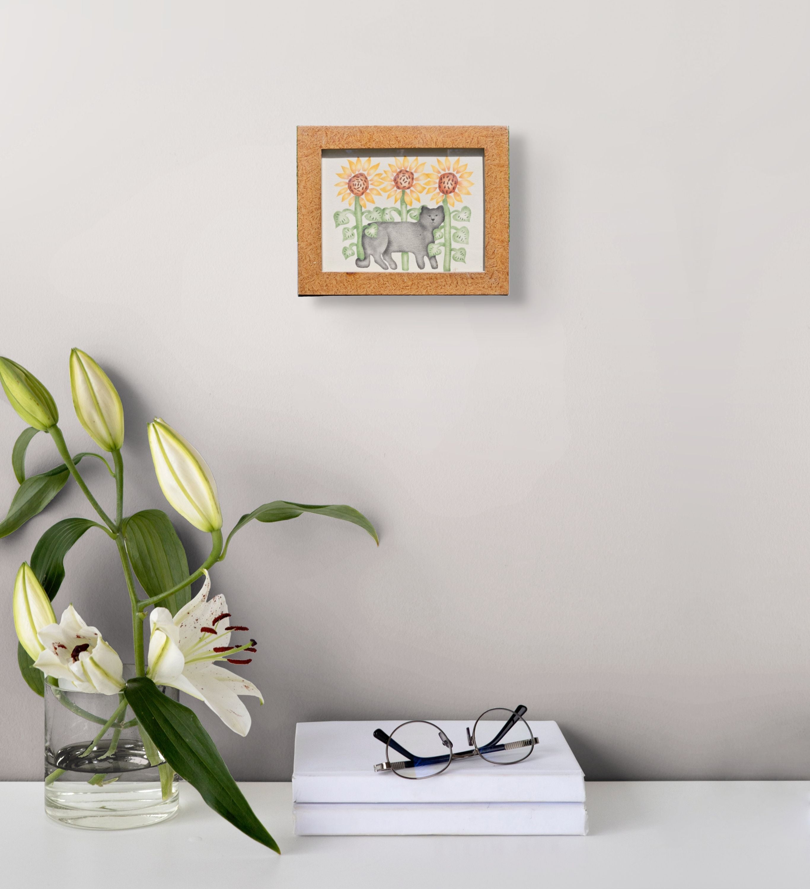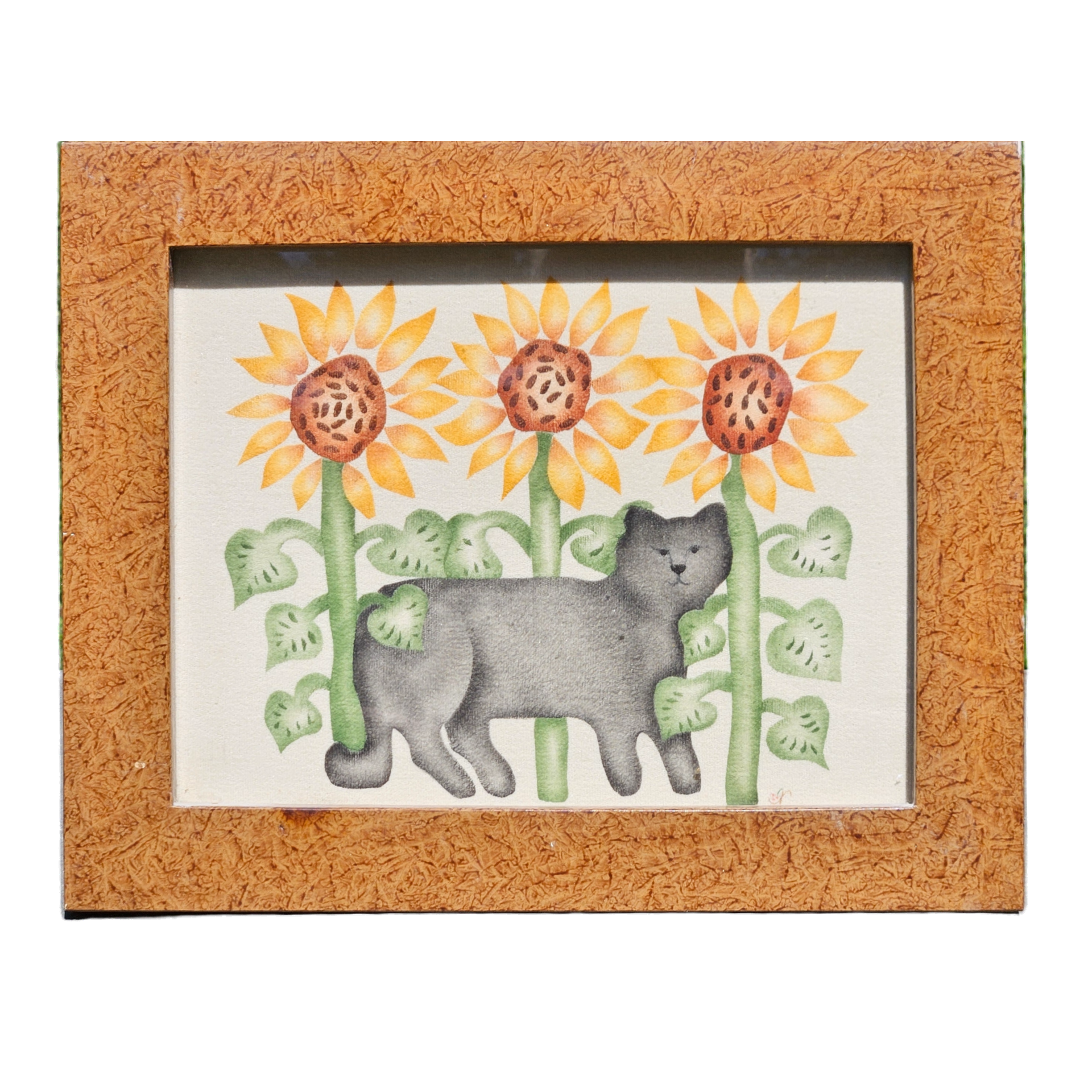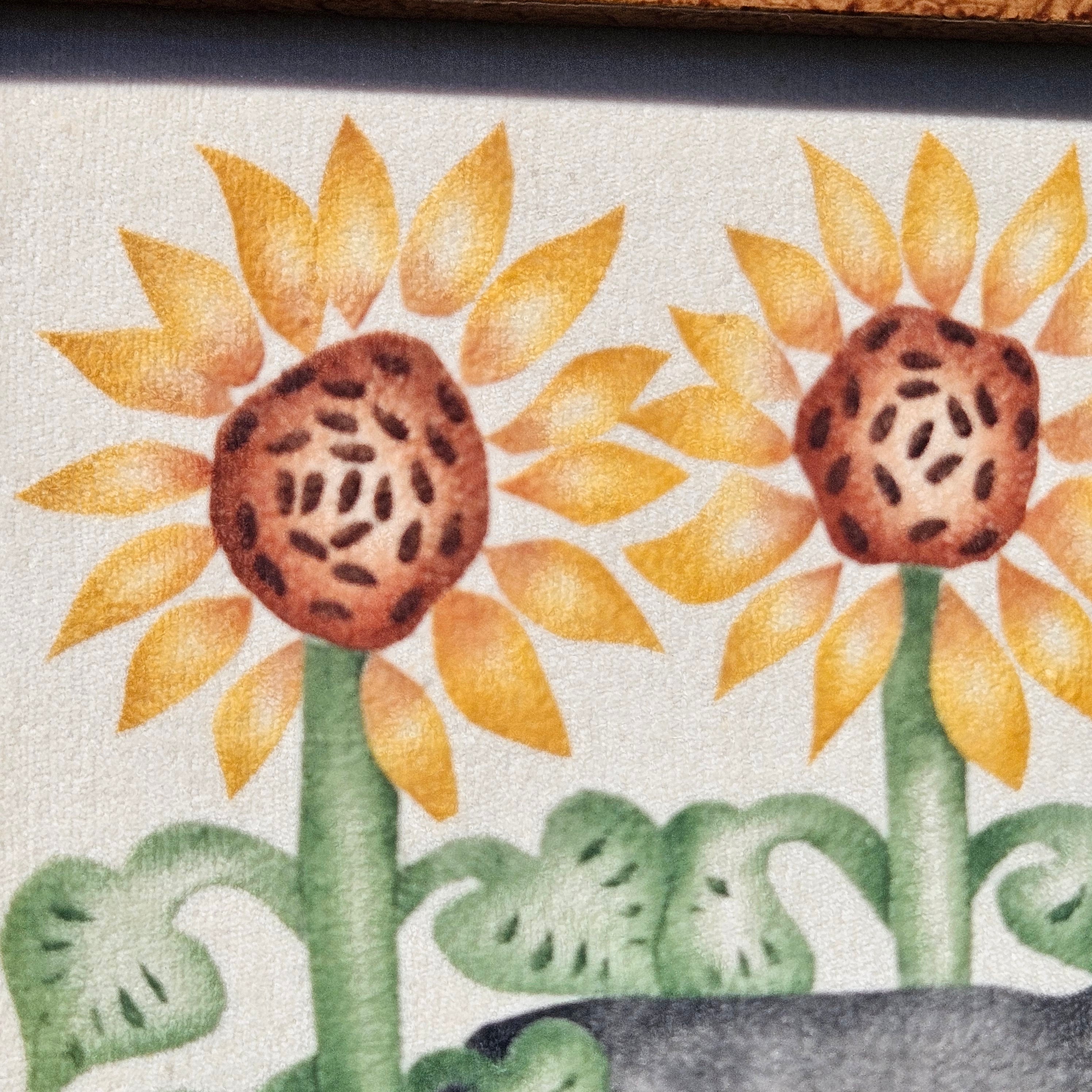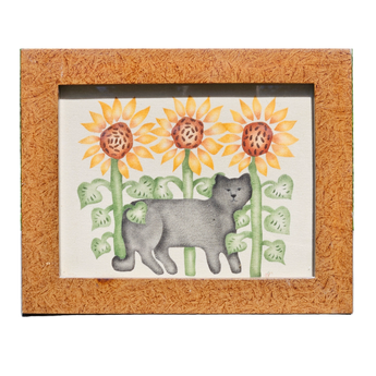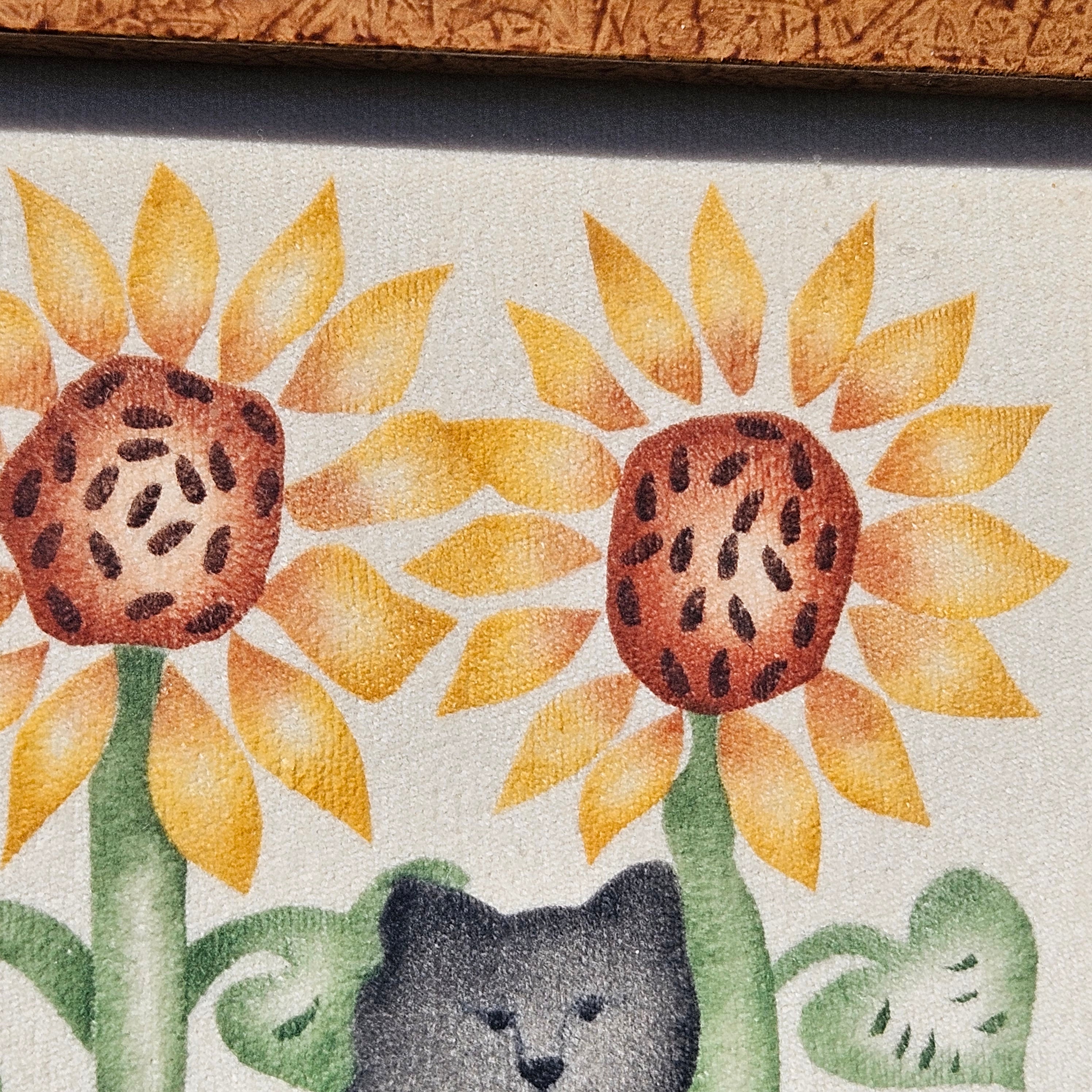 Nan DiMascio Theorem Painting on Velvet - Cat and Sunflowers