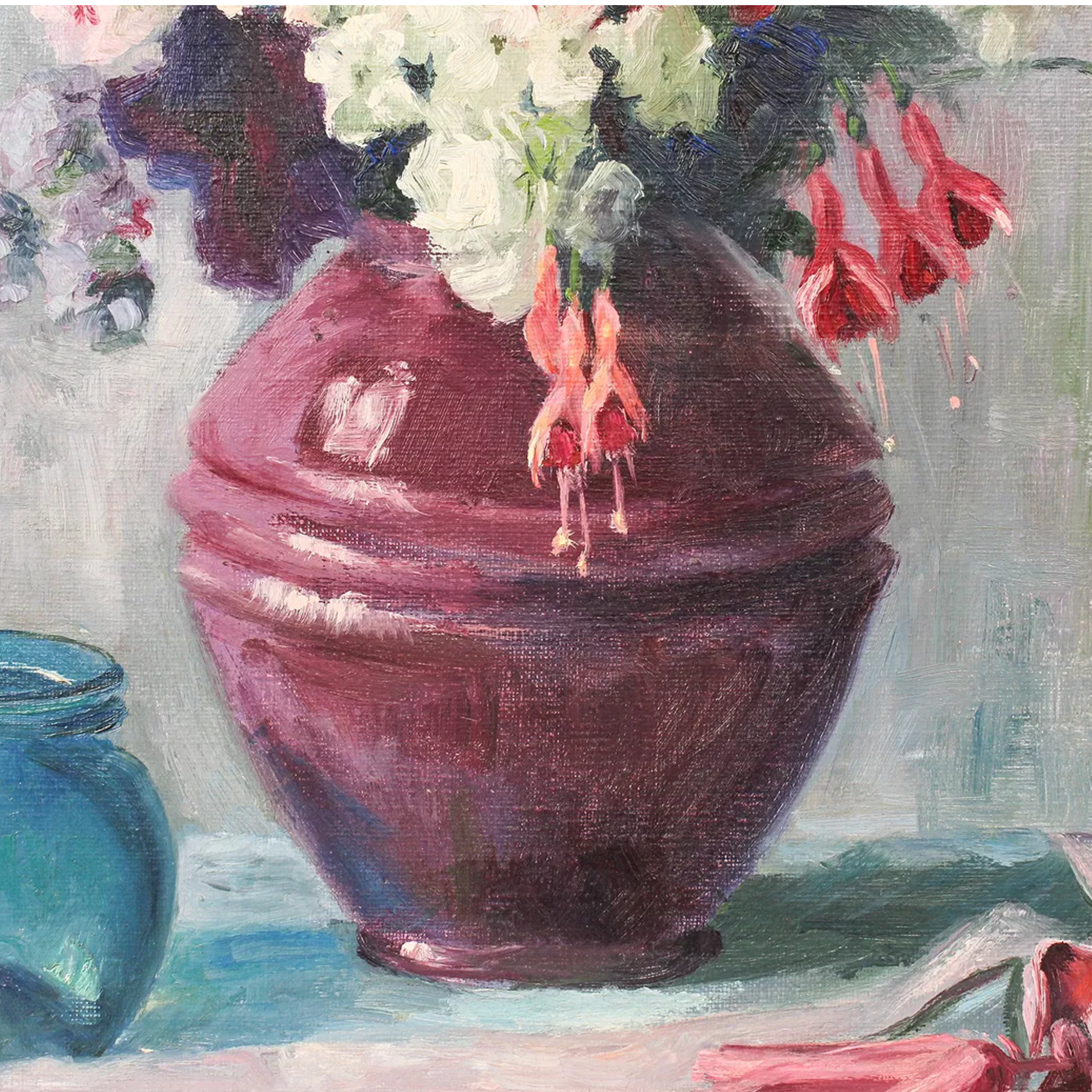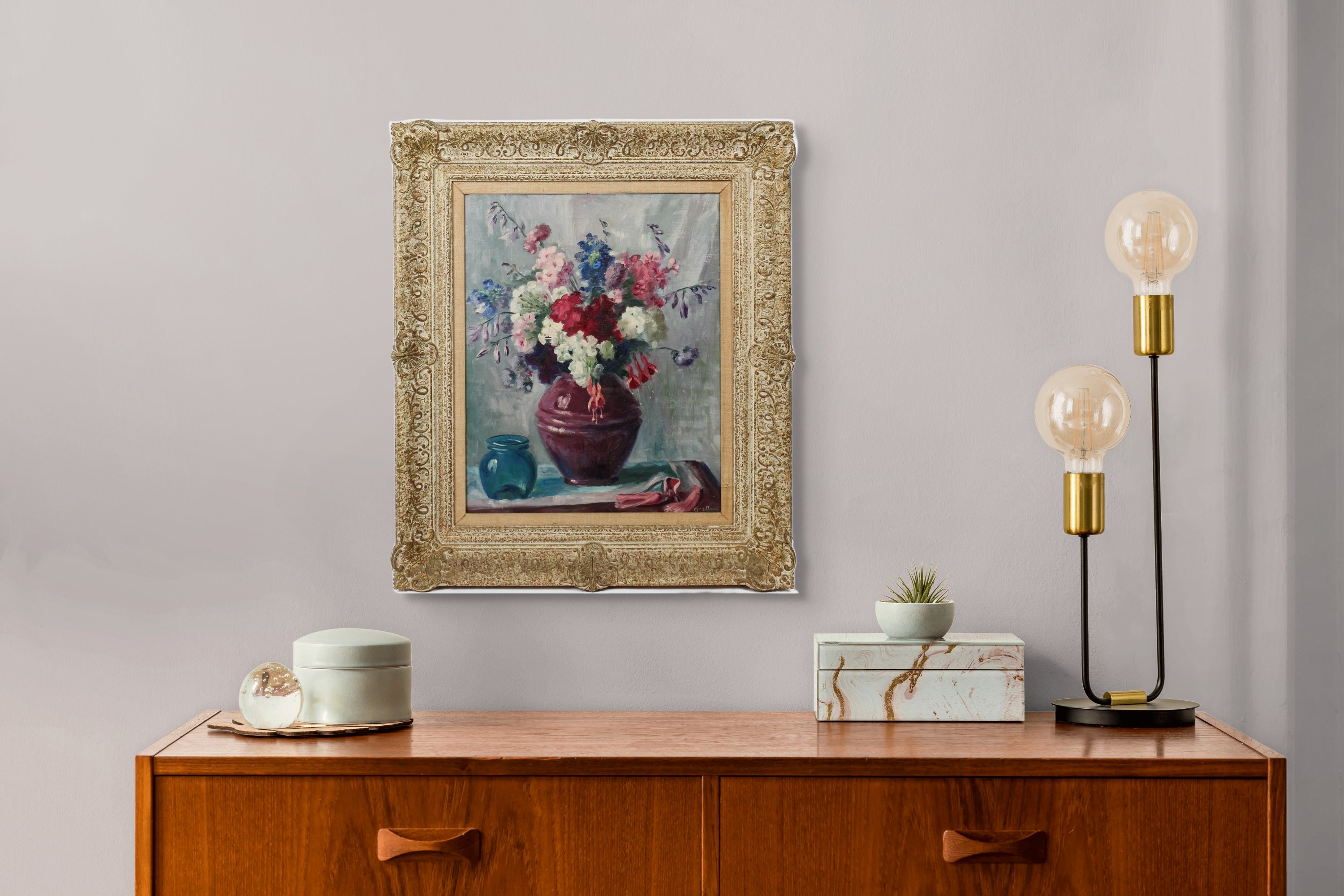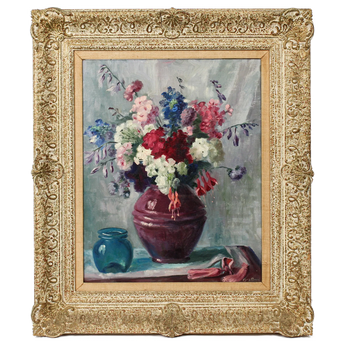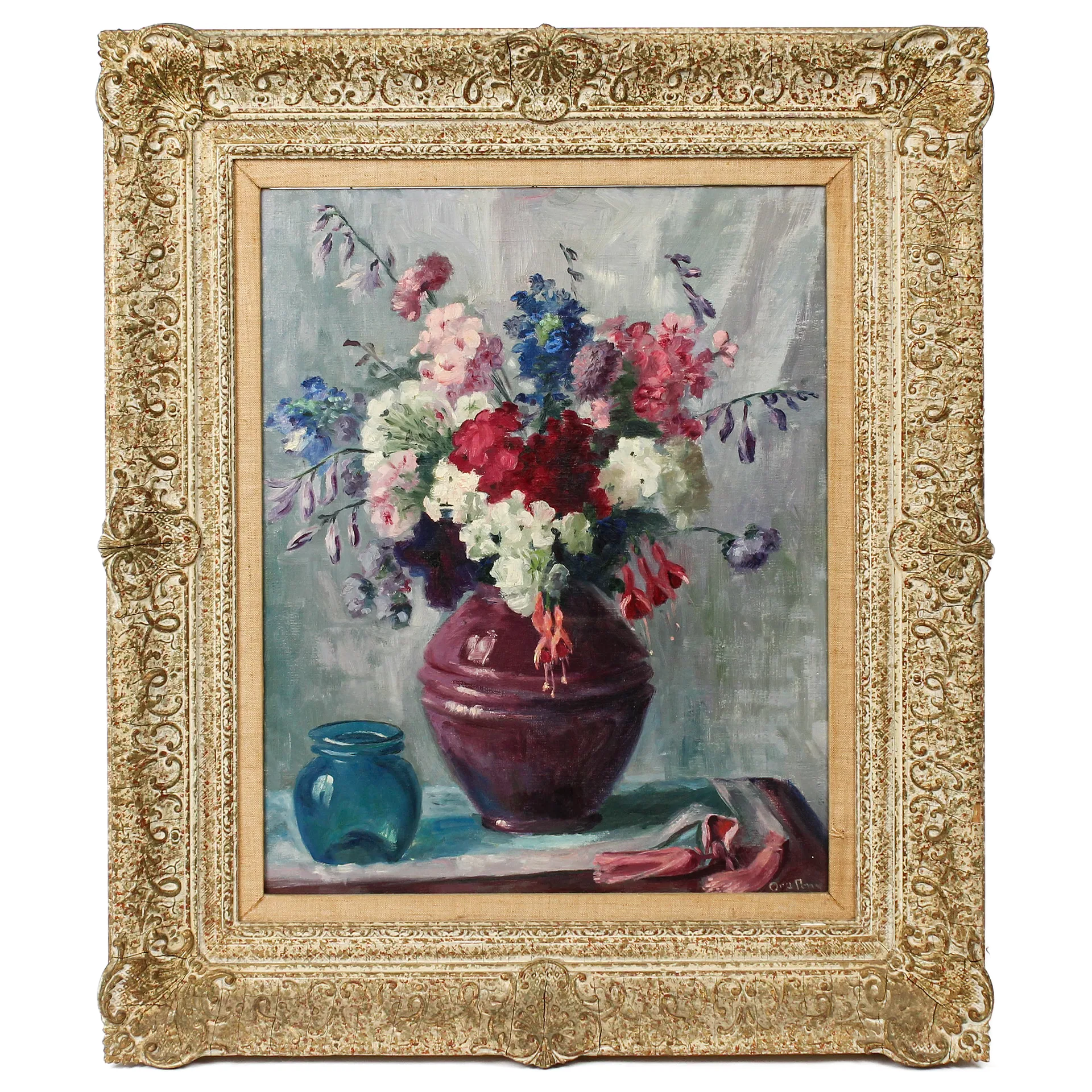 Ora Perry Impressionist Still Life Painting on Canvas in Carved Frame