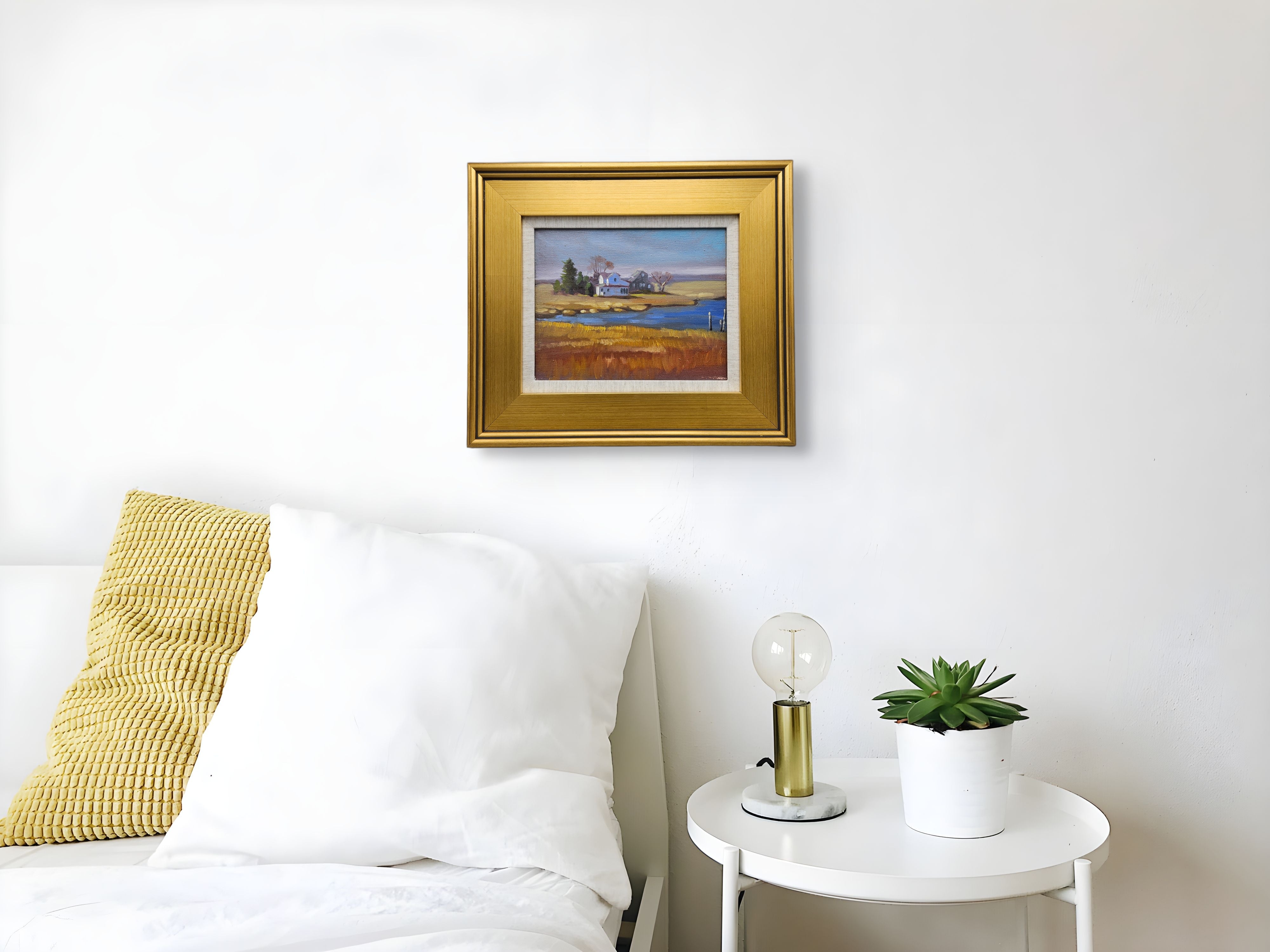 Original Landscape Painting of House on River