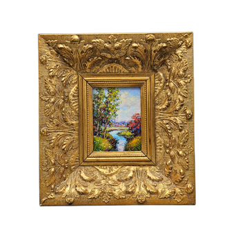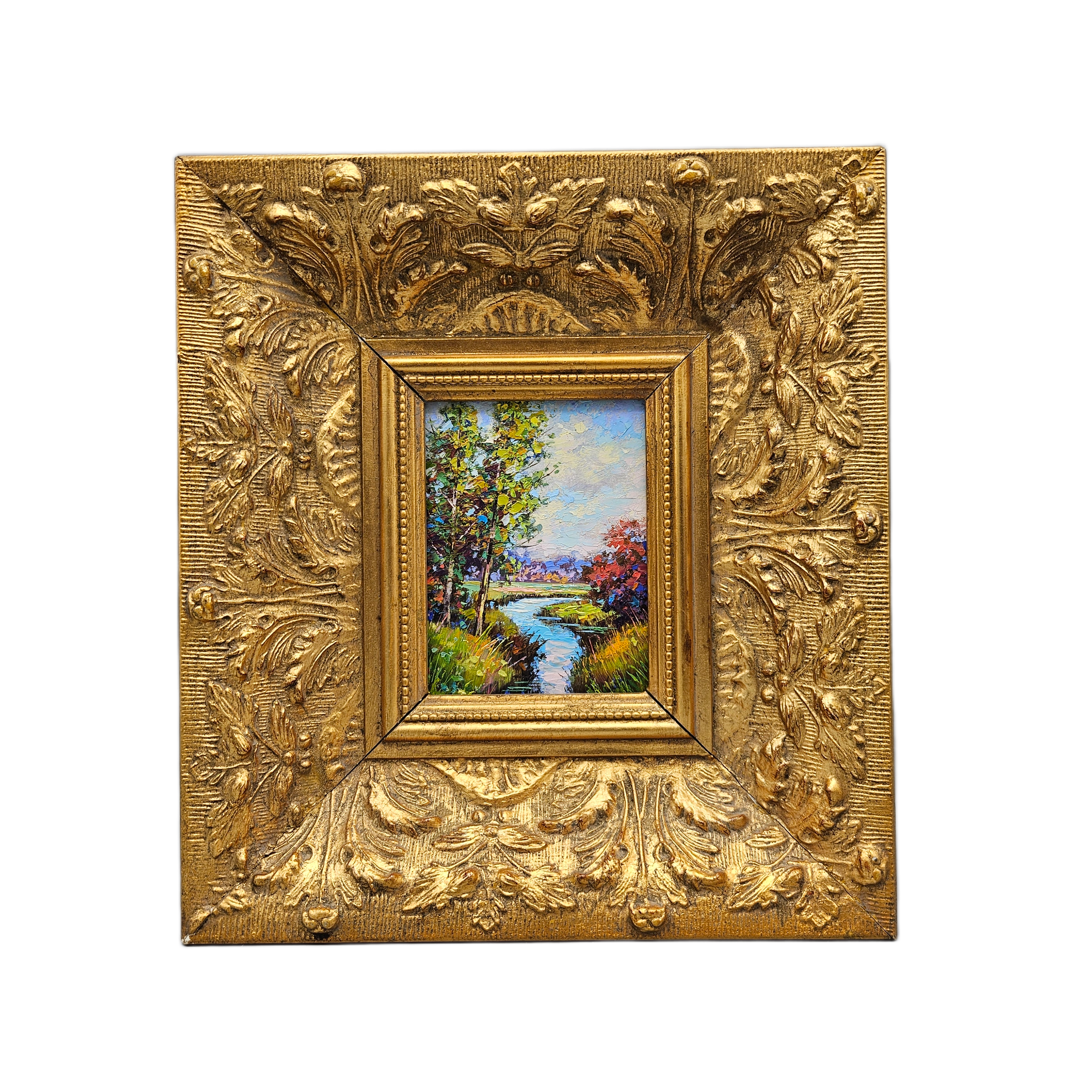 Original Small Painting of River or Stream in Ornate Gold Frame