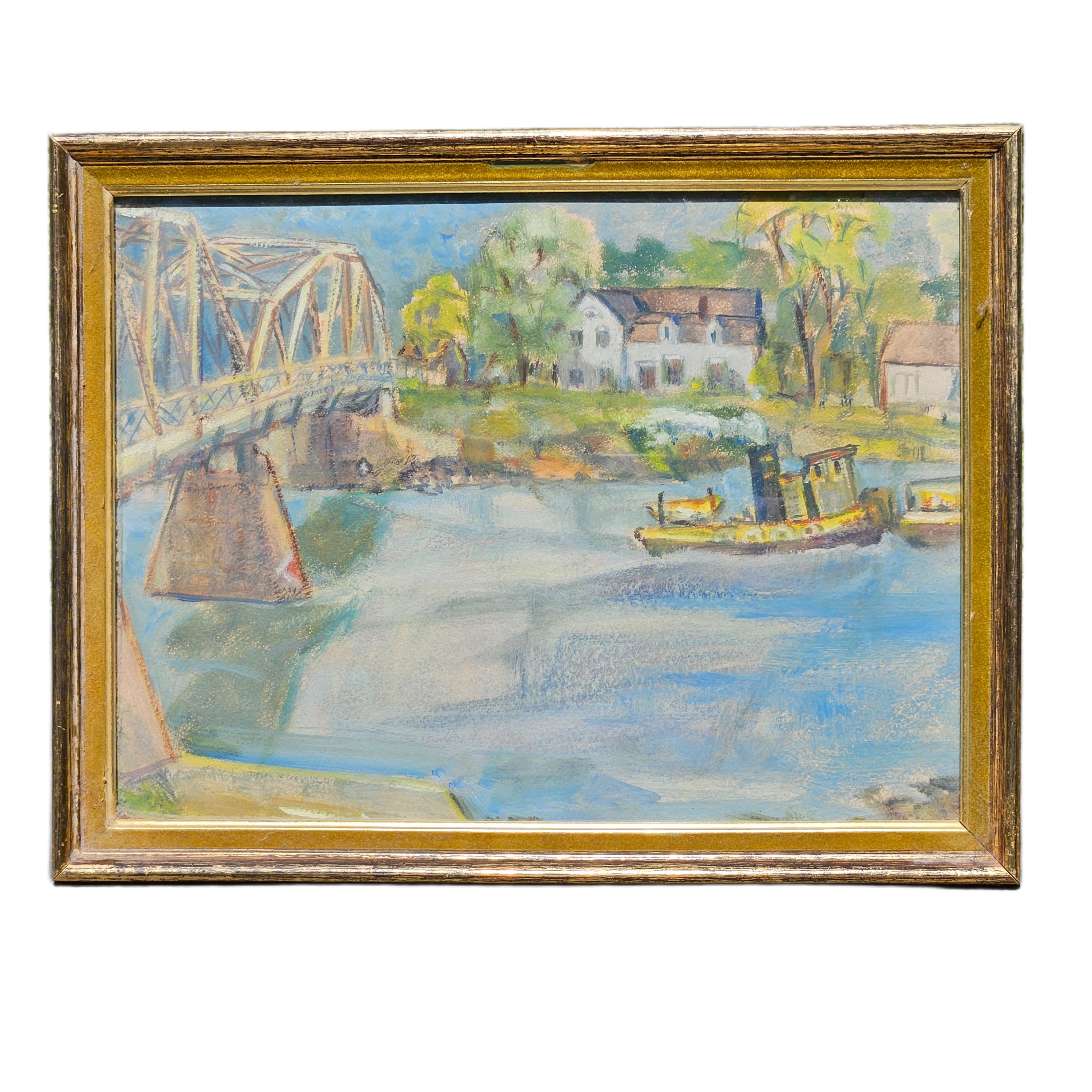Sybil Fonda "Fultonville Bridge" Pastel on Board