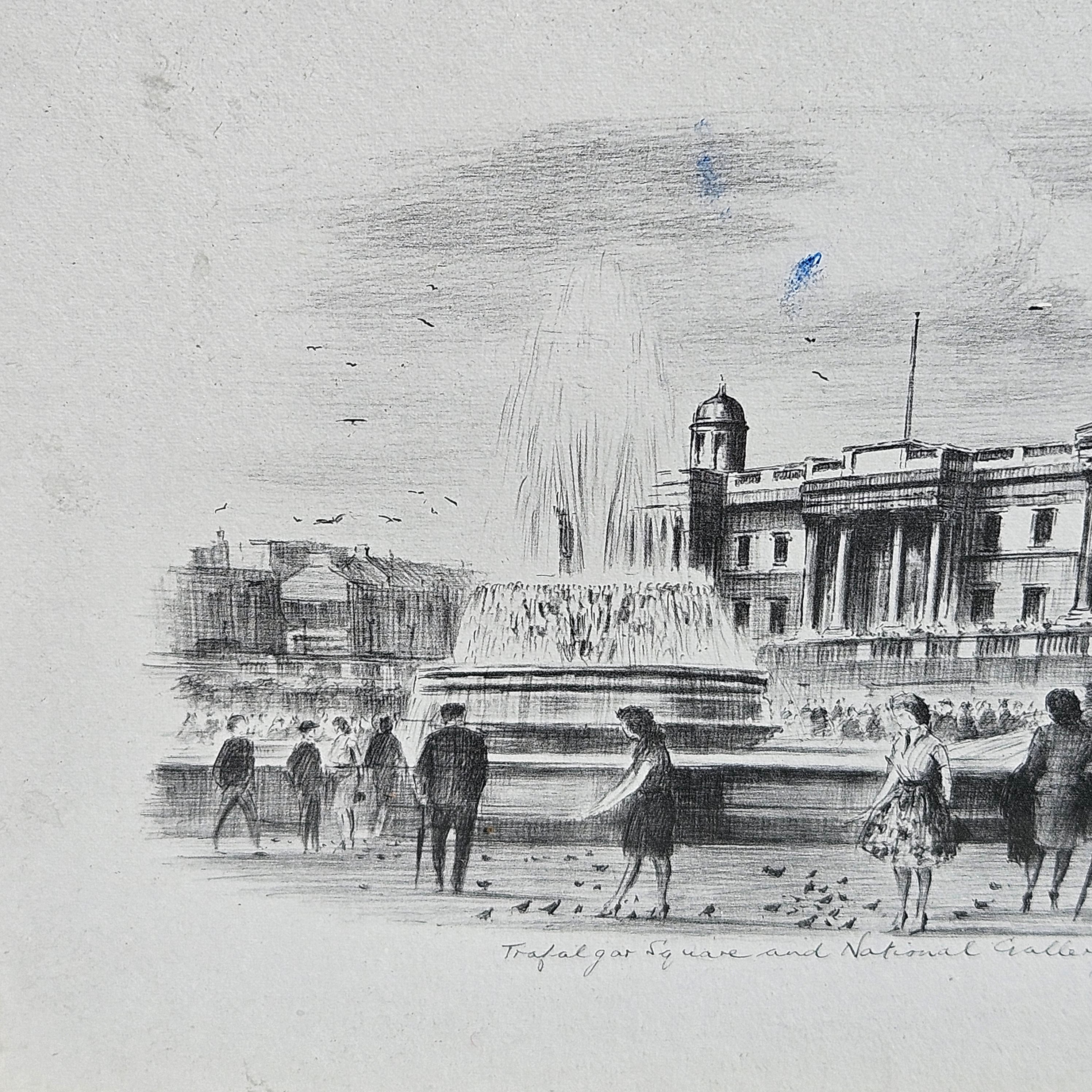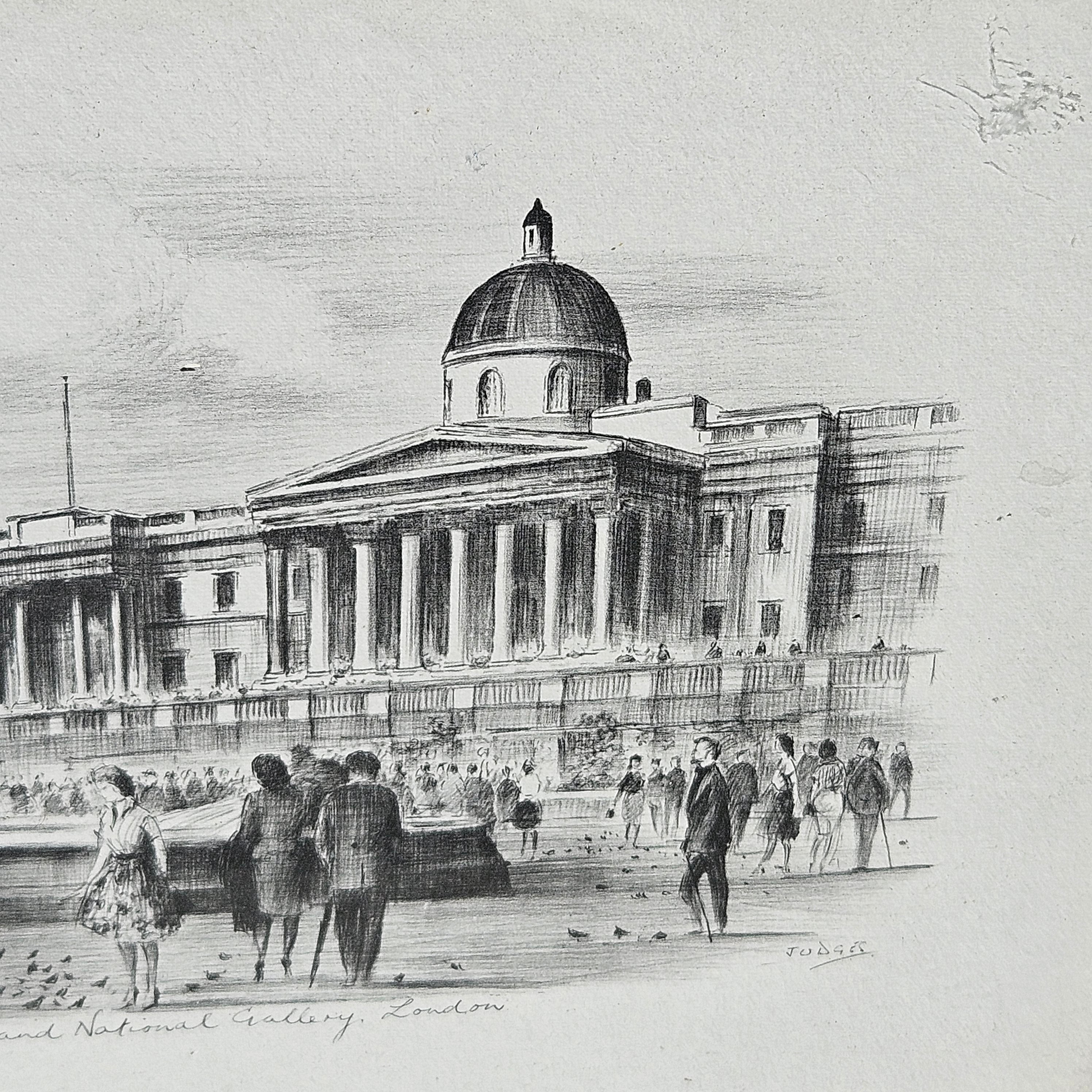 "Trafalgar Square and The National Gallery" Lithograph Signed Judges