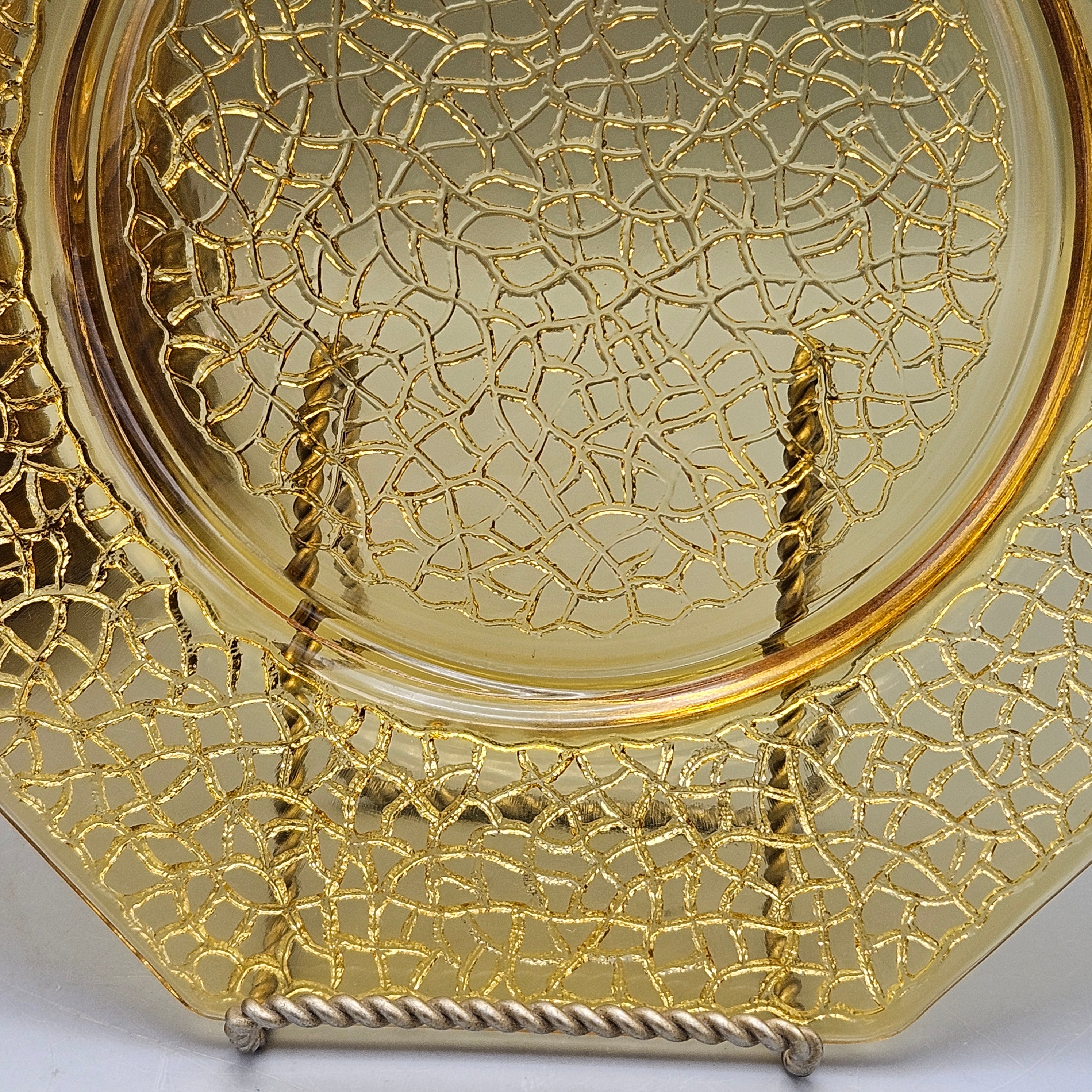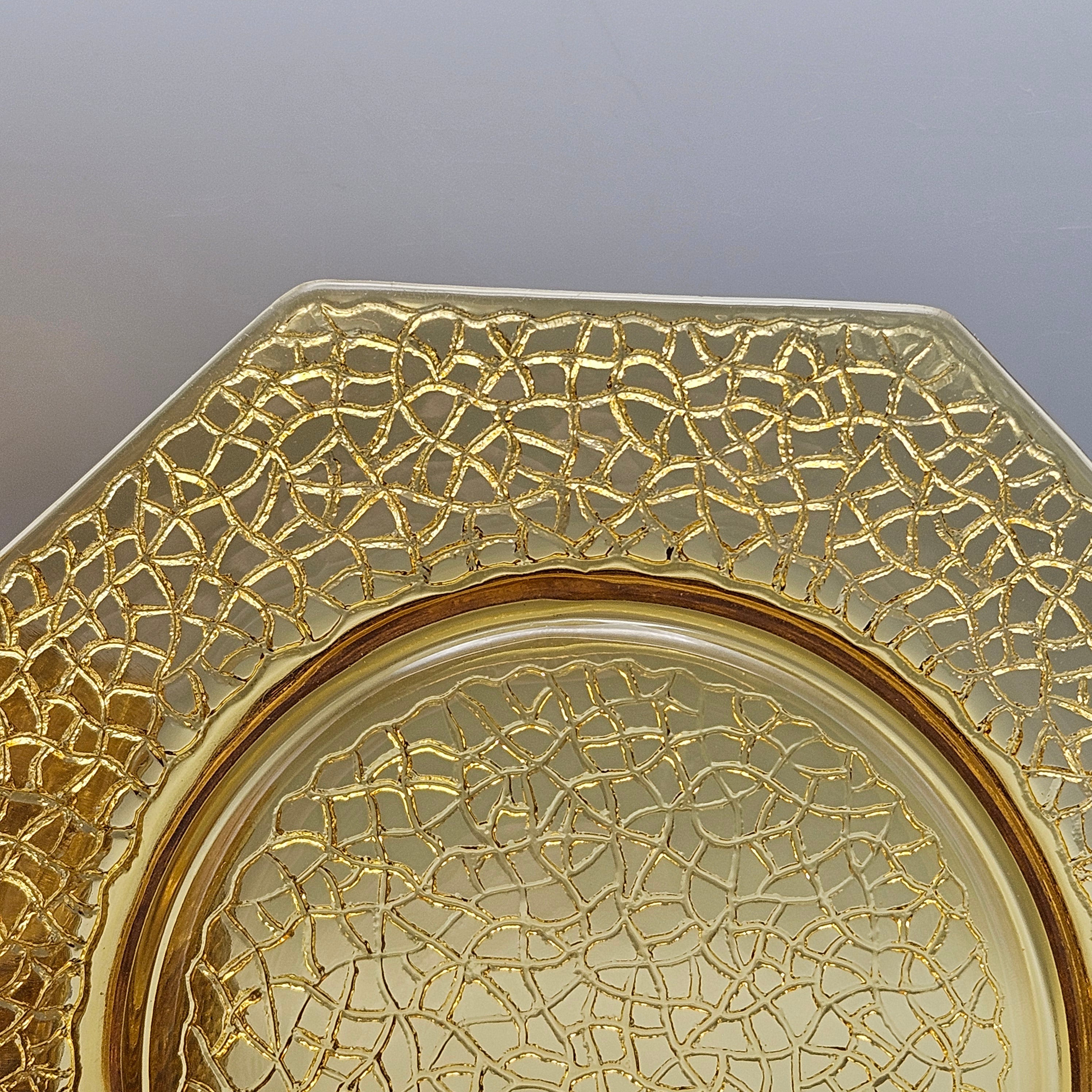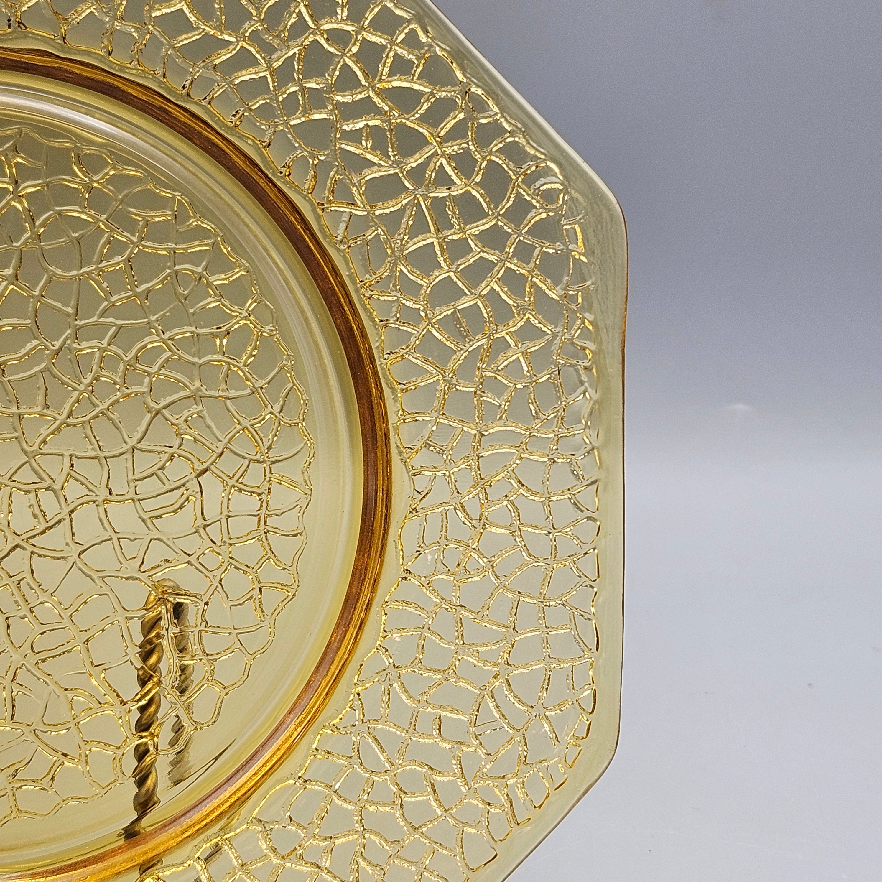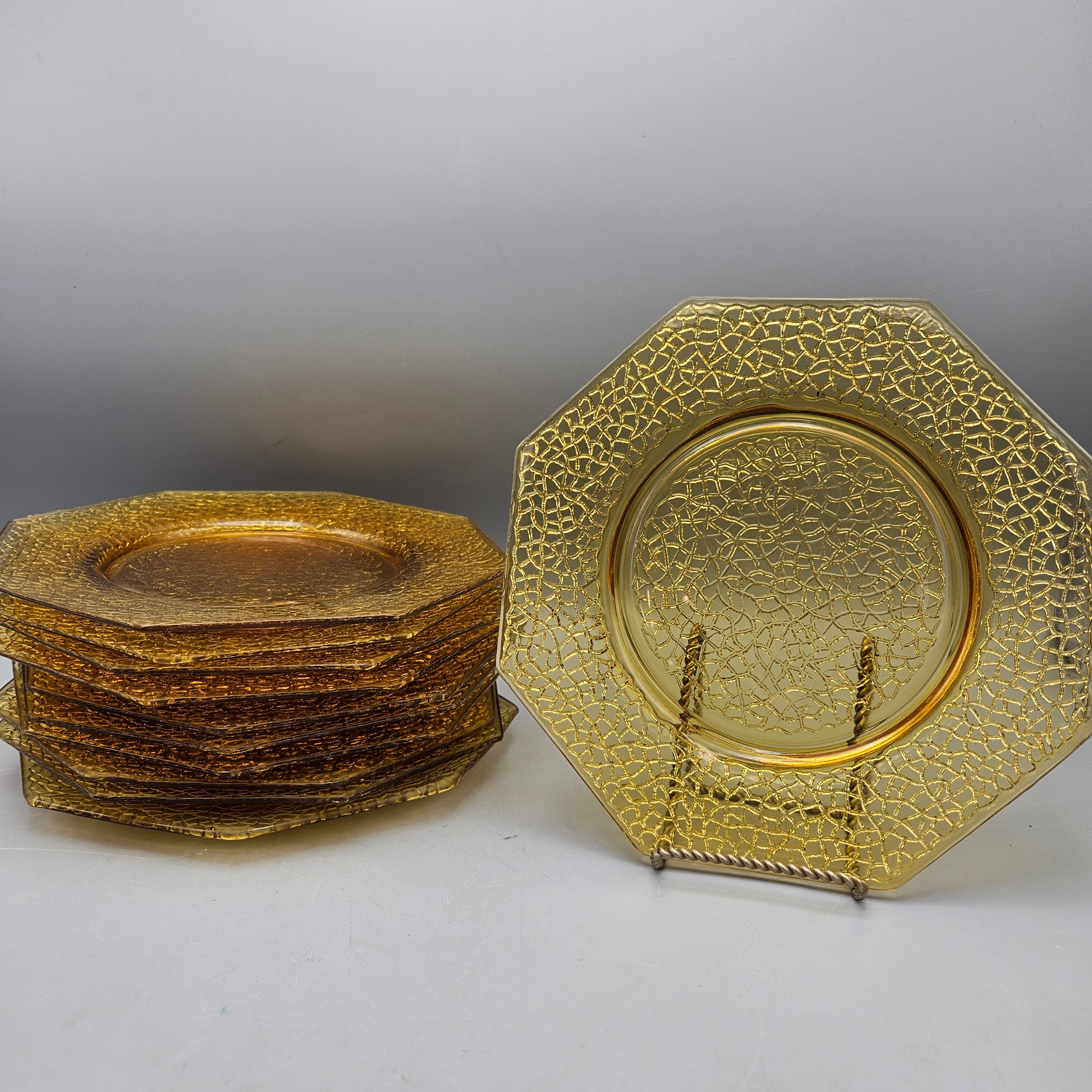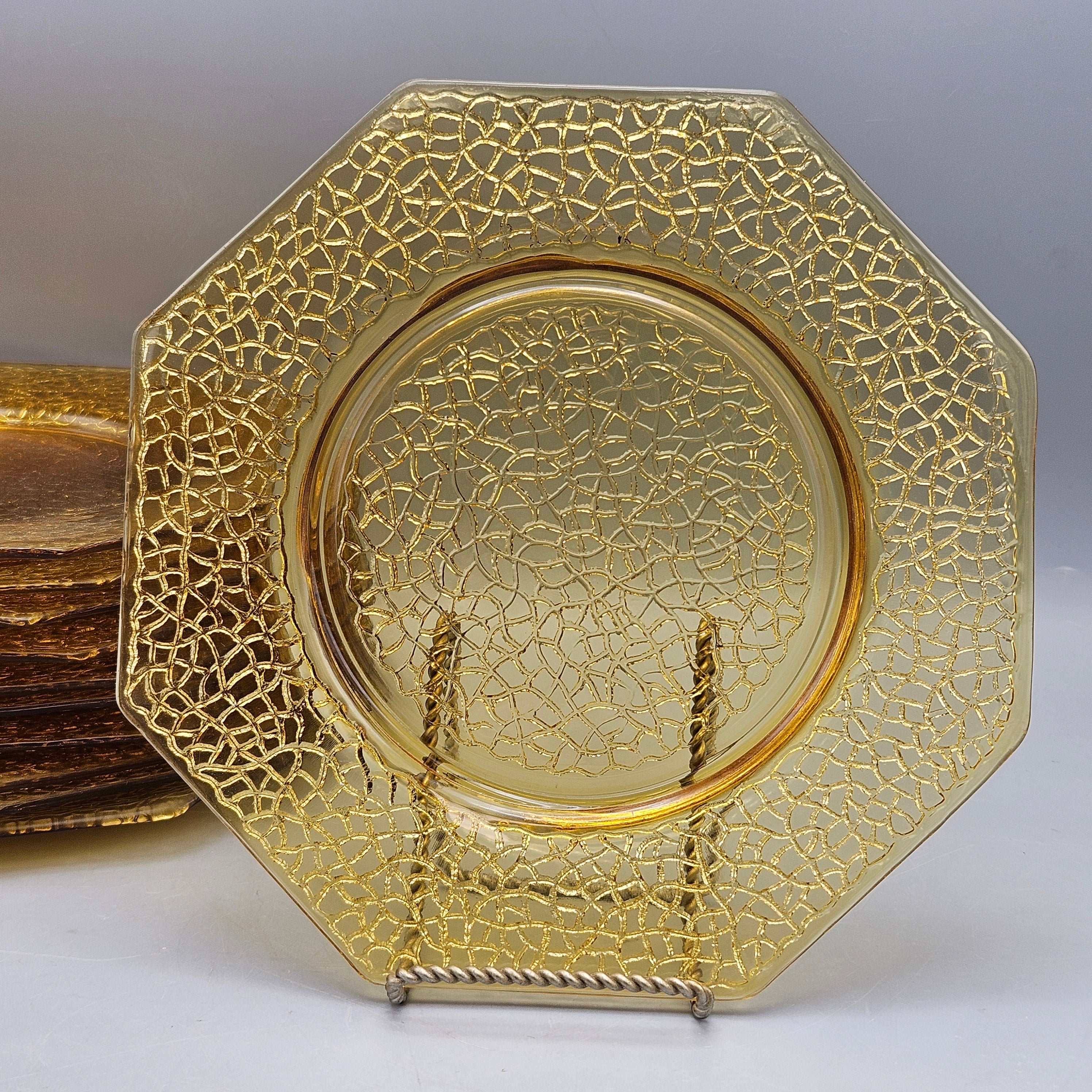 1930s LE Smith By Cracky Amber Glass Octagonal Luncheon Plates - Set of 10