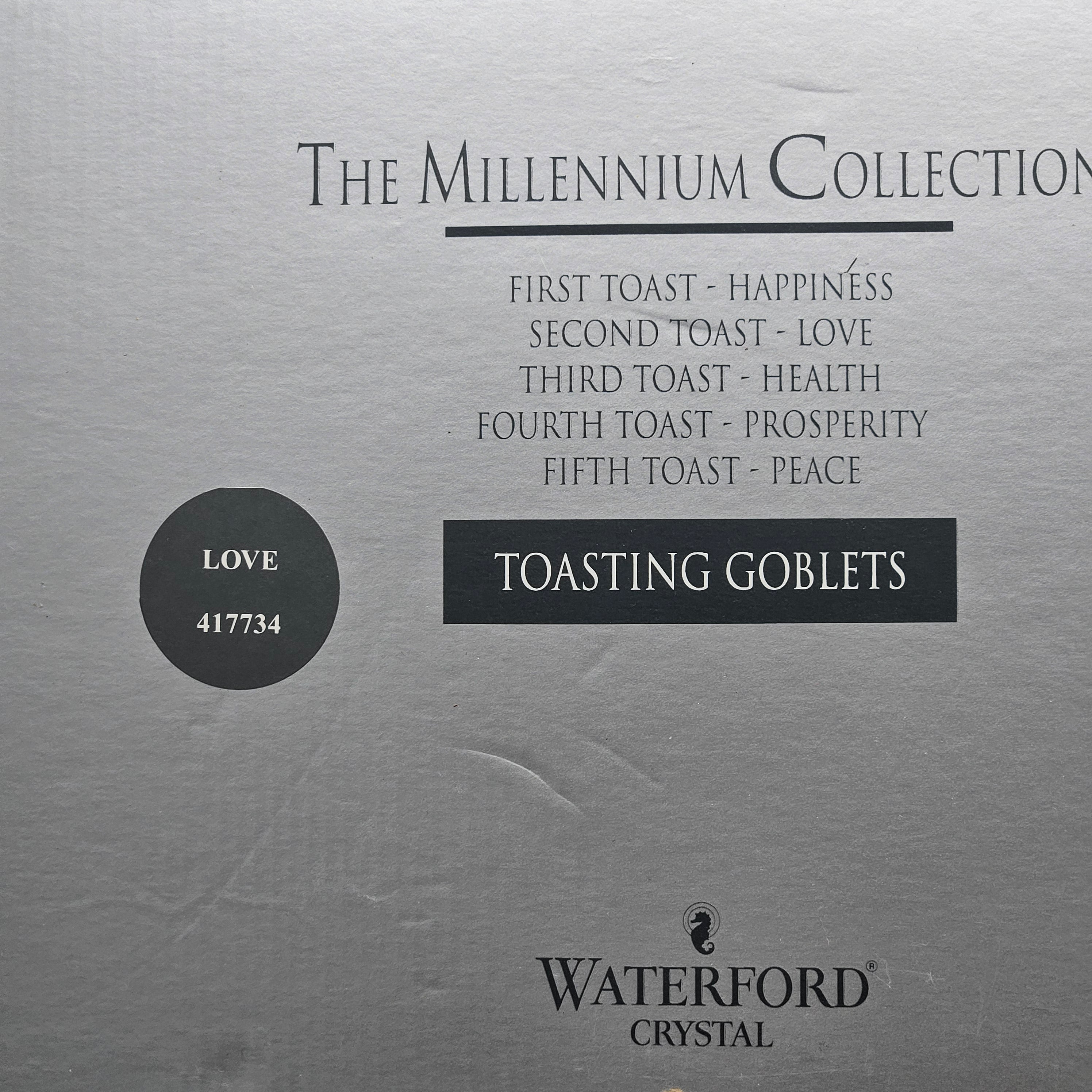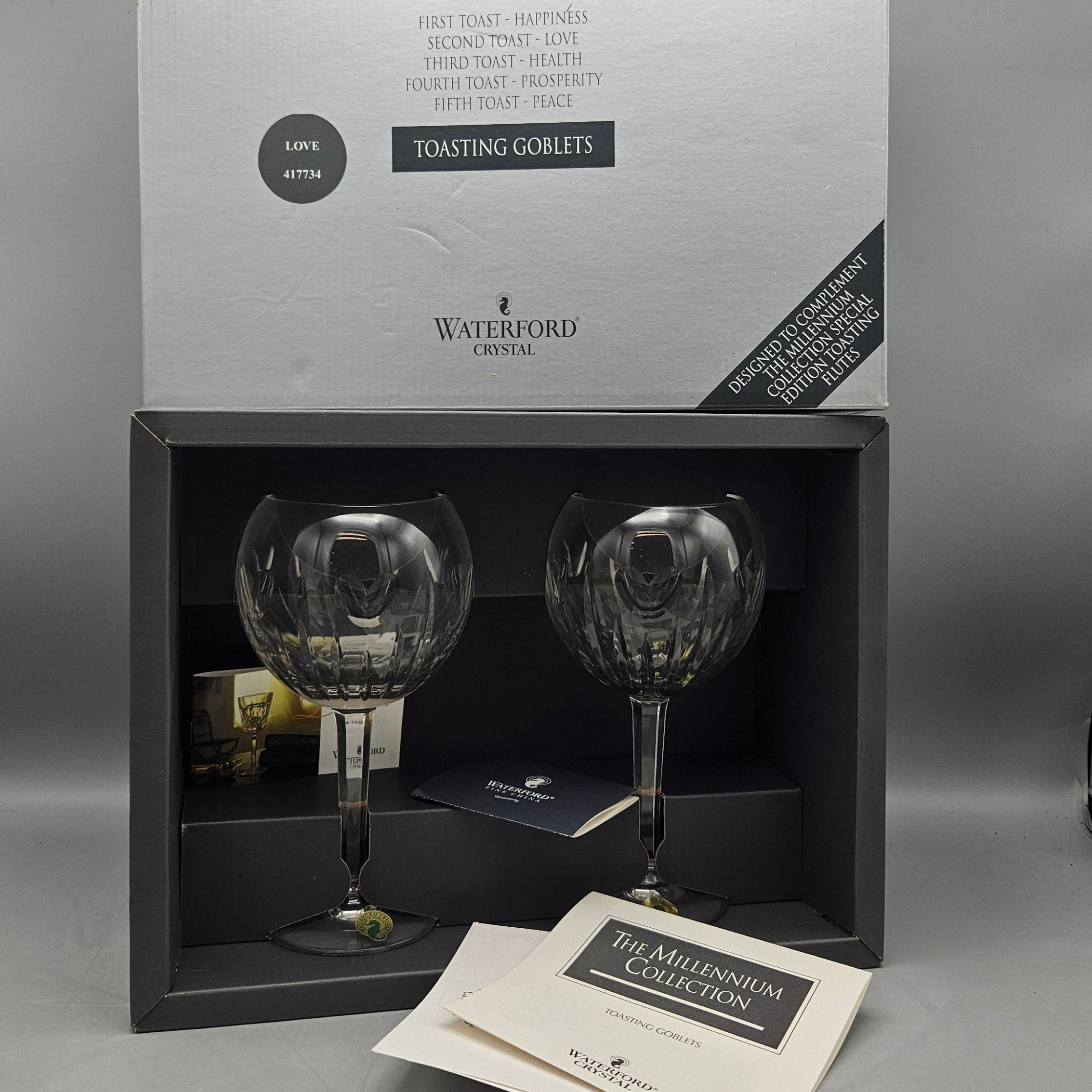 Pair Waterford Cut Crystal Millennium Collection "Love" Balloon Toasting Goblets
