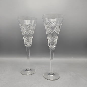 Pair Waterford Cut Crystal Wedding Heirloom Champagne Flutes