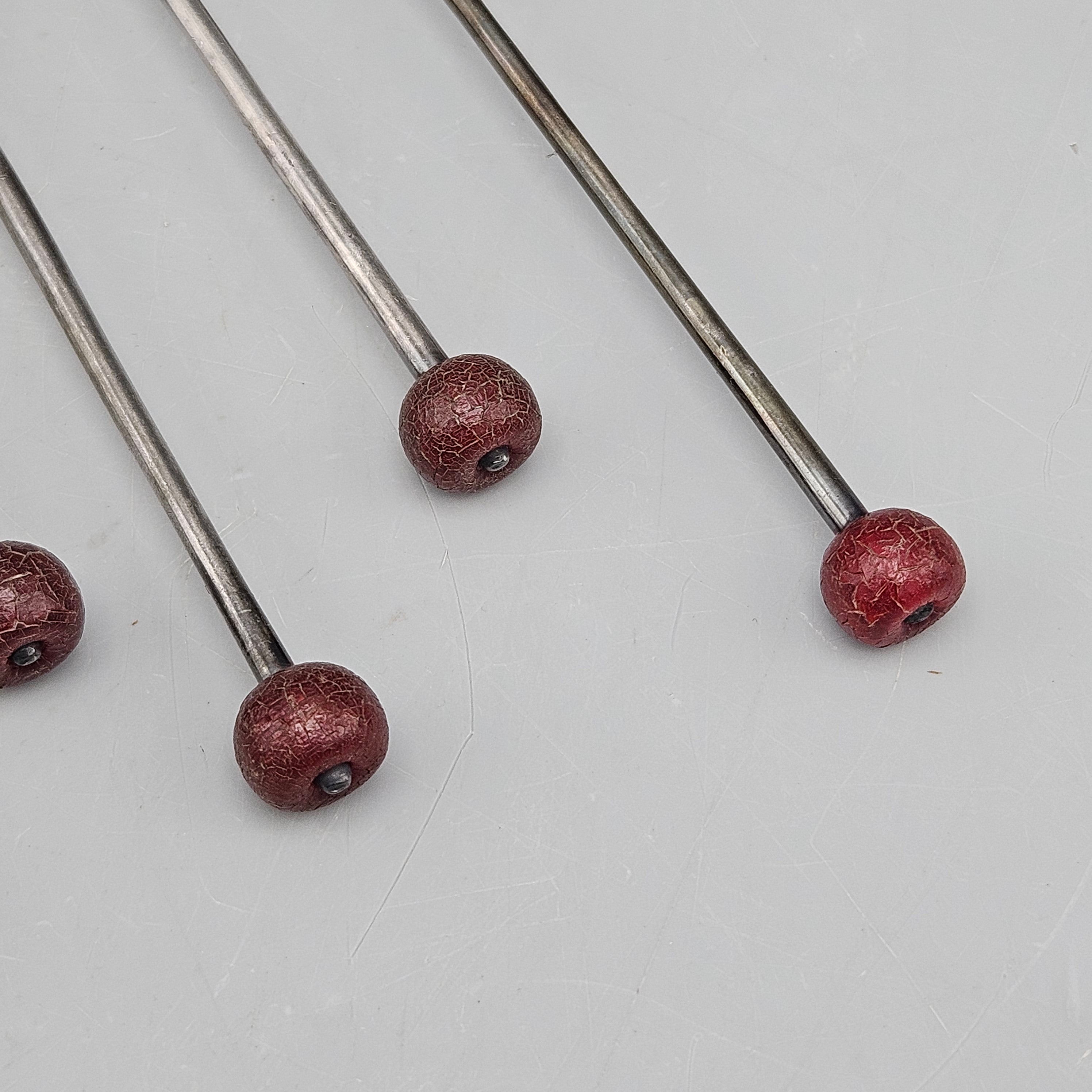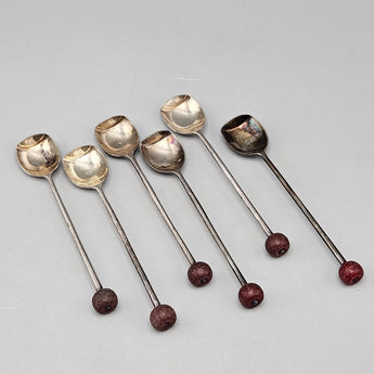 Vintage EPNS Silver Plate Cherry Spoons with Red Wood Finials