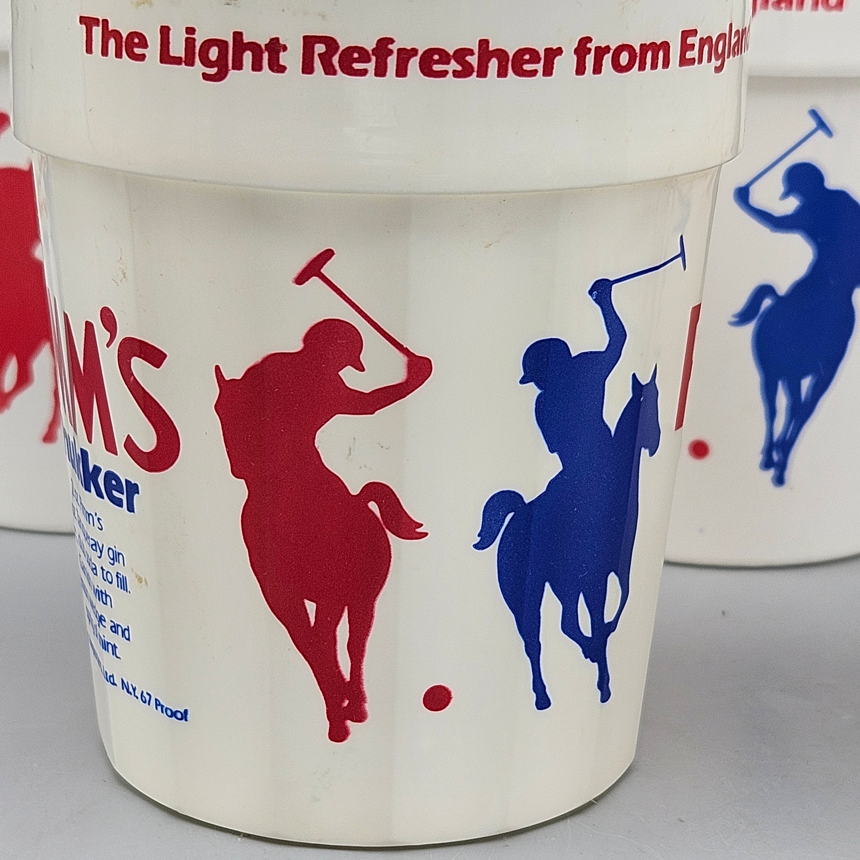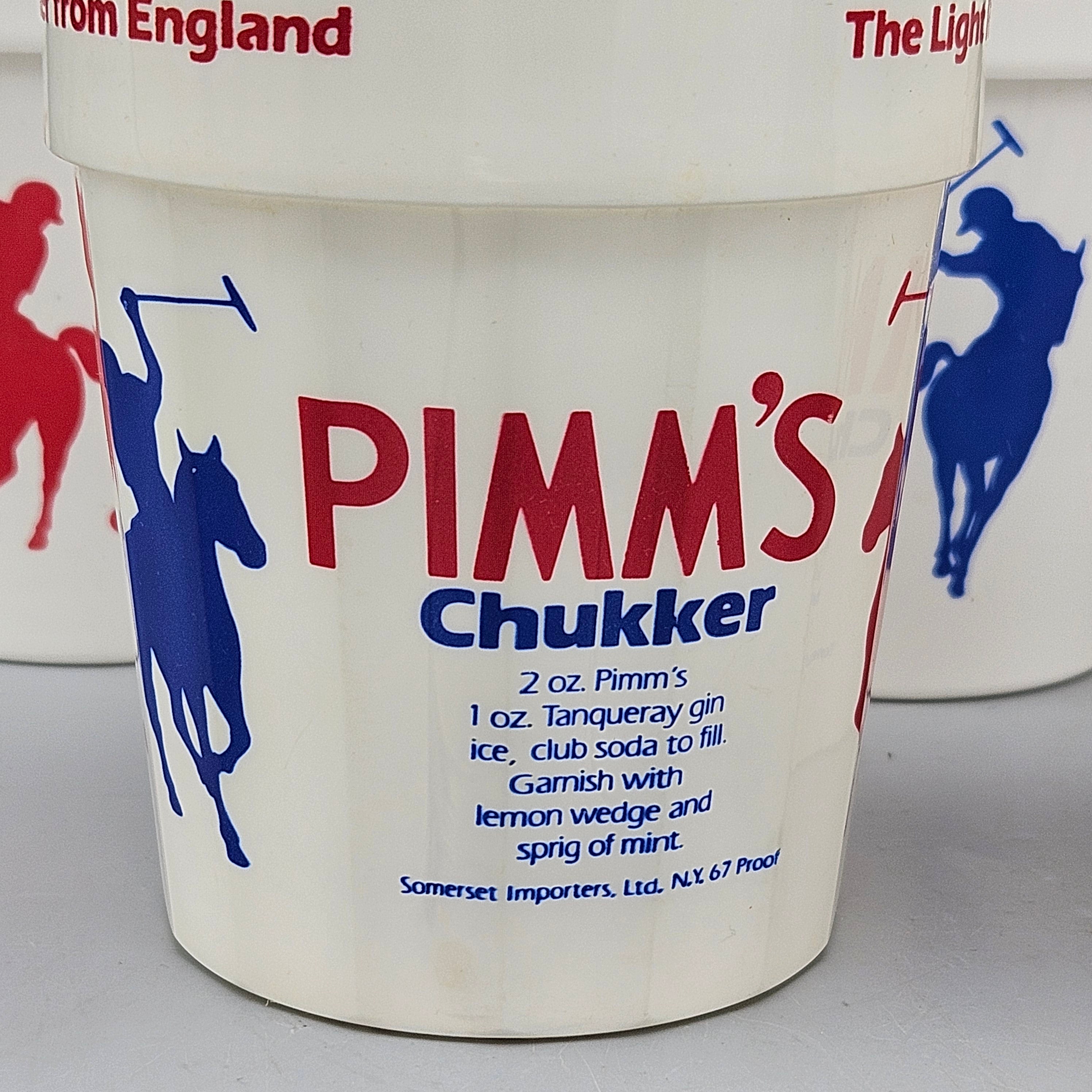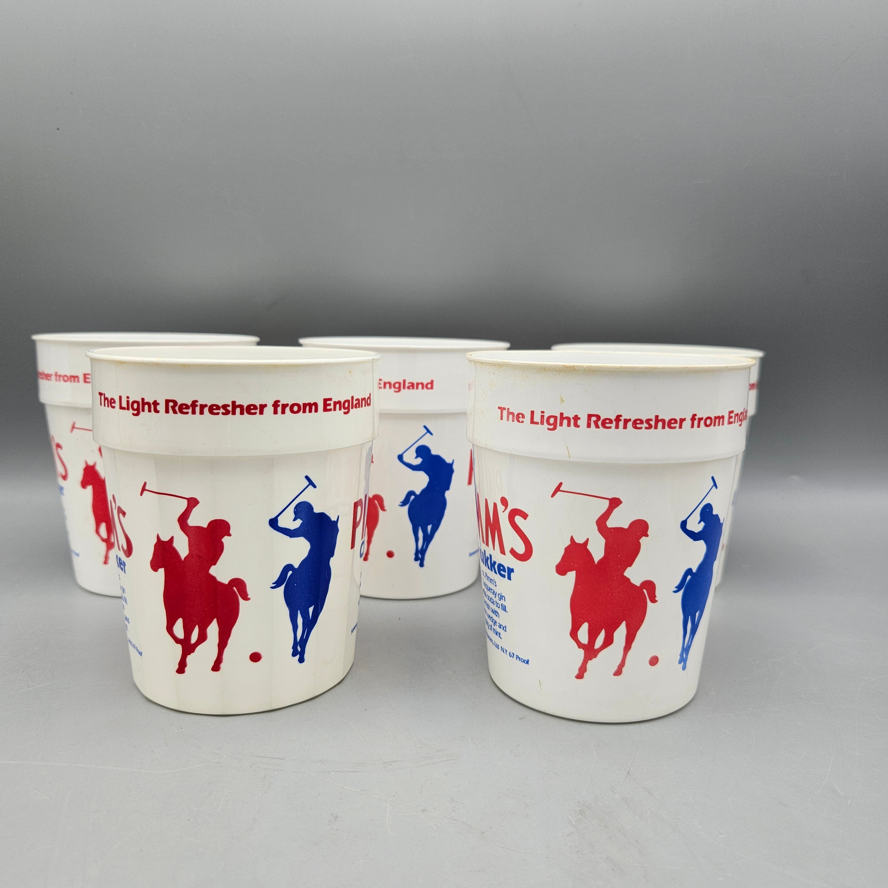 Vintage Pimm's Chukker Plastic Cups with Polo Scene - Set of Five