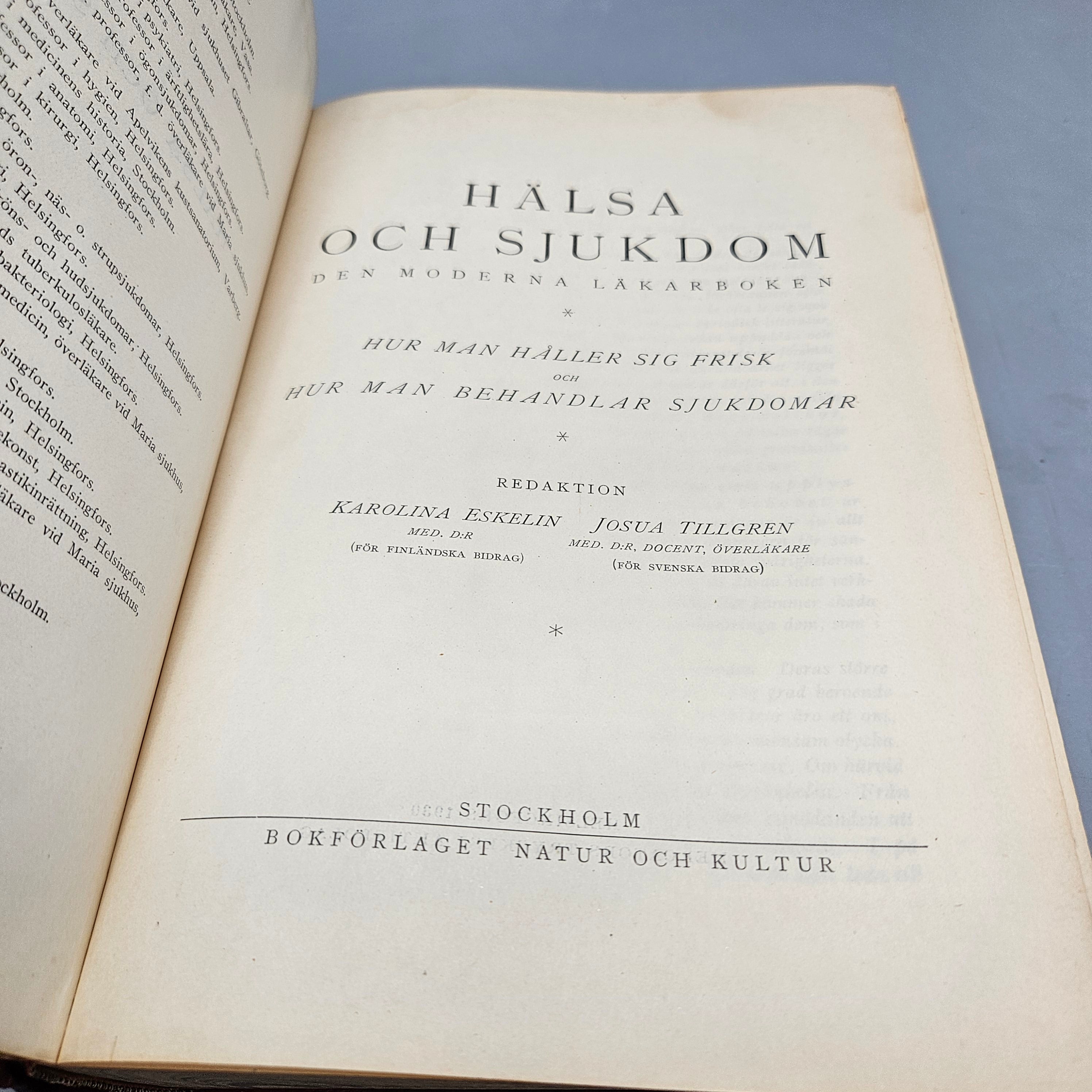 • Text in Swedish, title translates as "Health and Disease, Modern Medicine Book, How to Keep Healthy, How to Treat Disease"