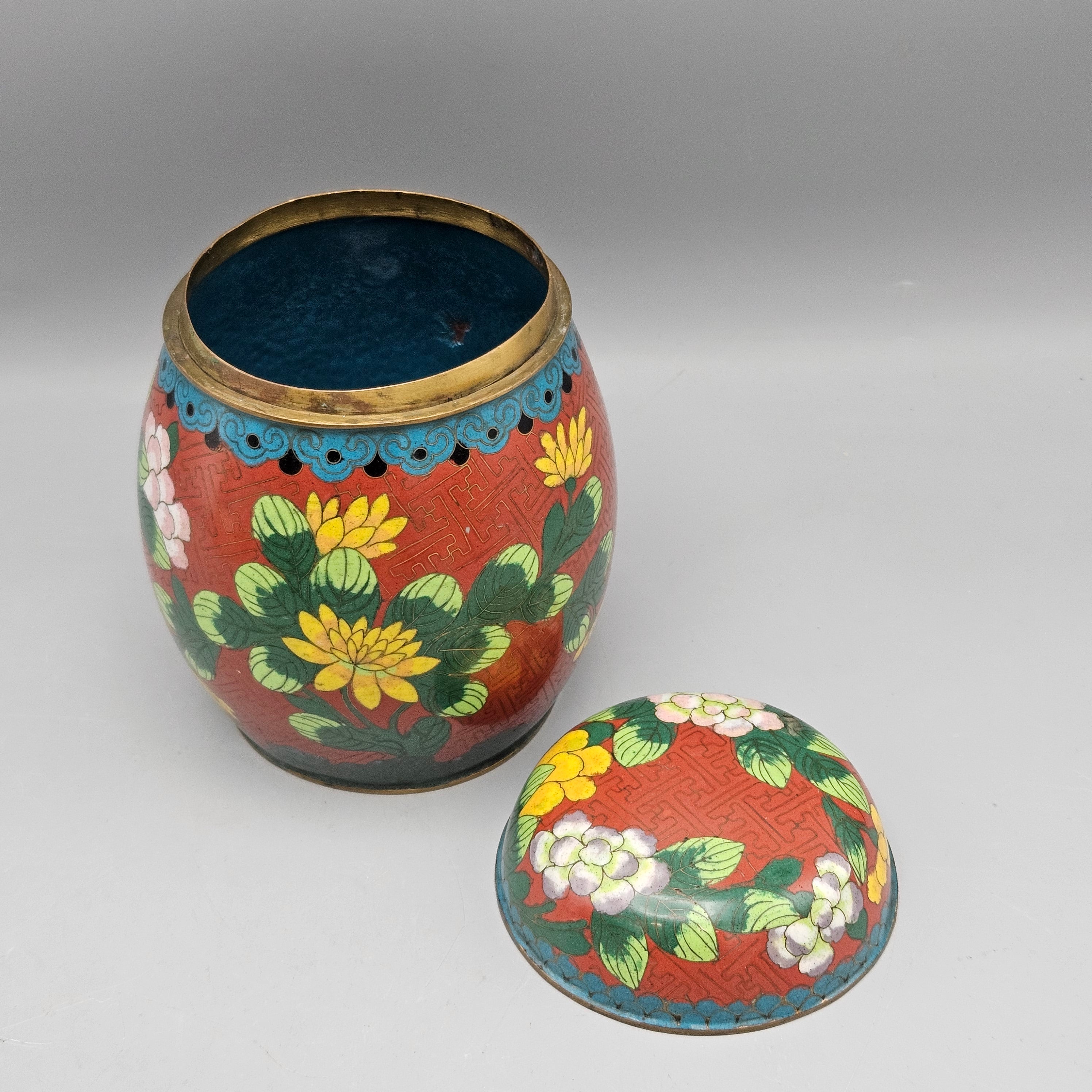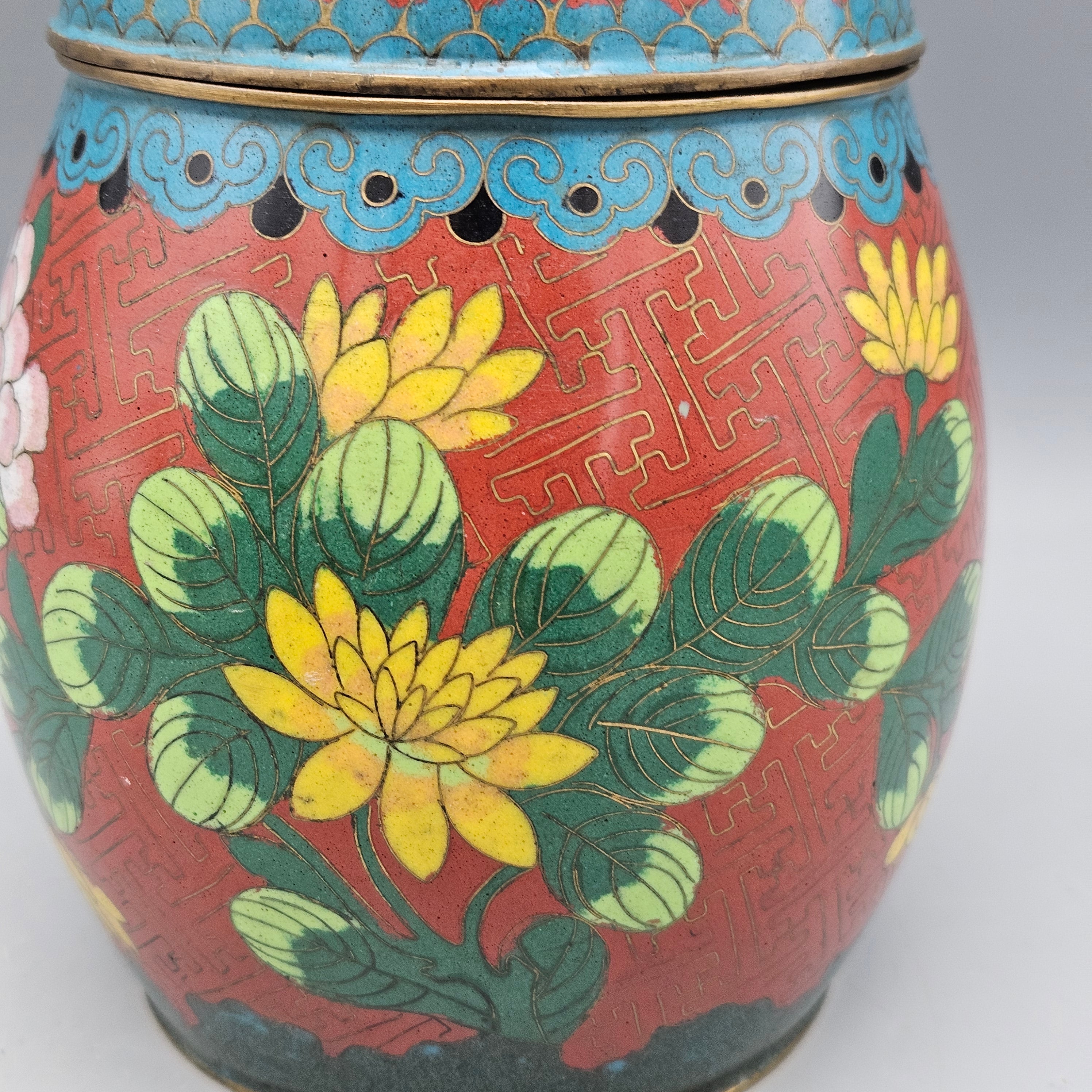 Vintage Chinese Cloisonné Lidded Jar